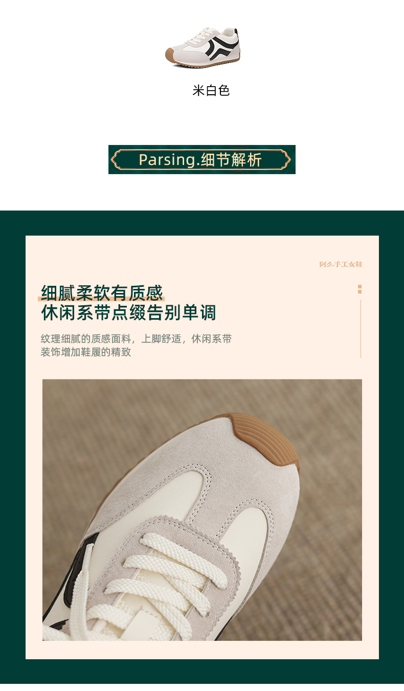 阿么手工女鞋透气百搭软底阿甘鞋2026冬季新款拼接系带休闲鞋3CM 商品图2