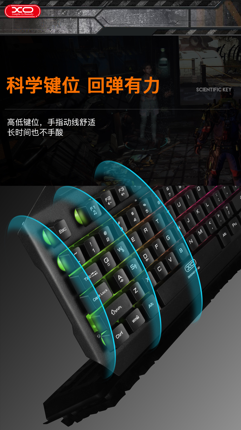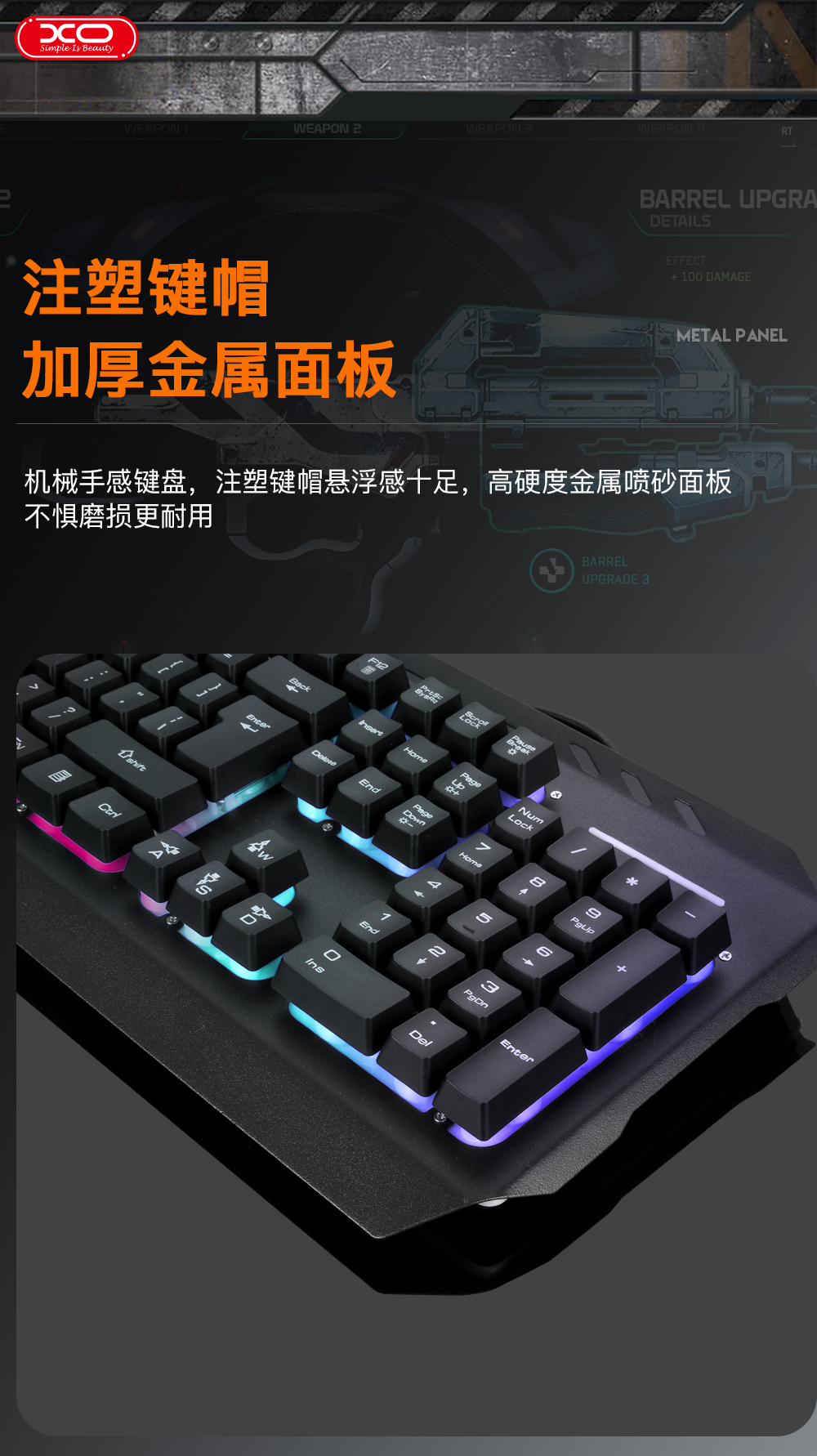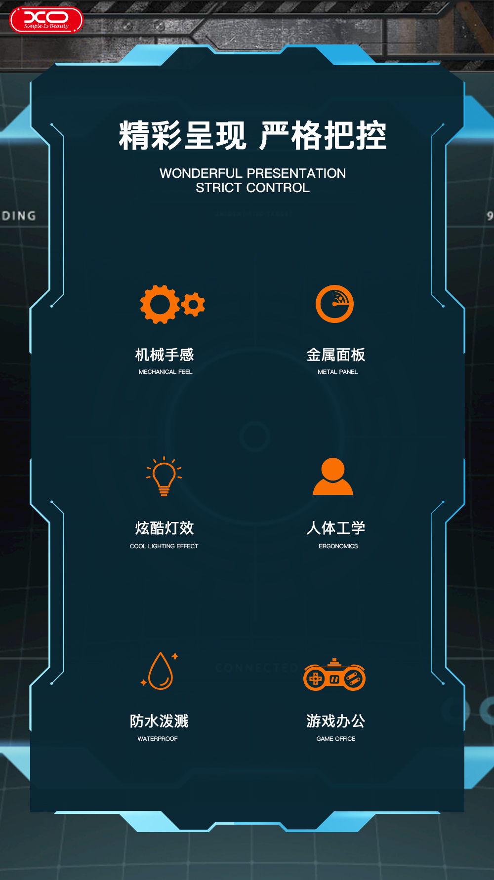 七彩灯光金属面板背光游戏键盘XO-KB-01 灰黑色