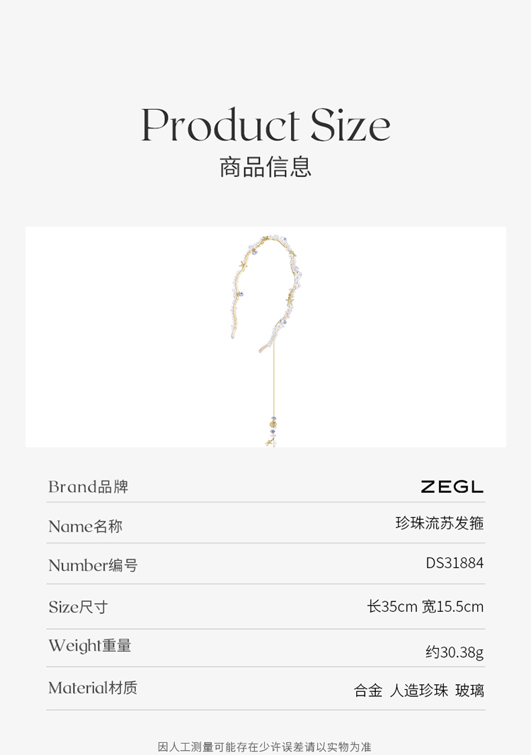 ZEGL人造珍珠流苏发箍女高级感复古法式夏天森系仙美款发饰头饰品
