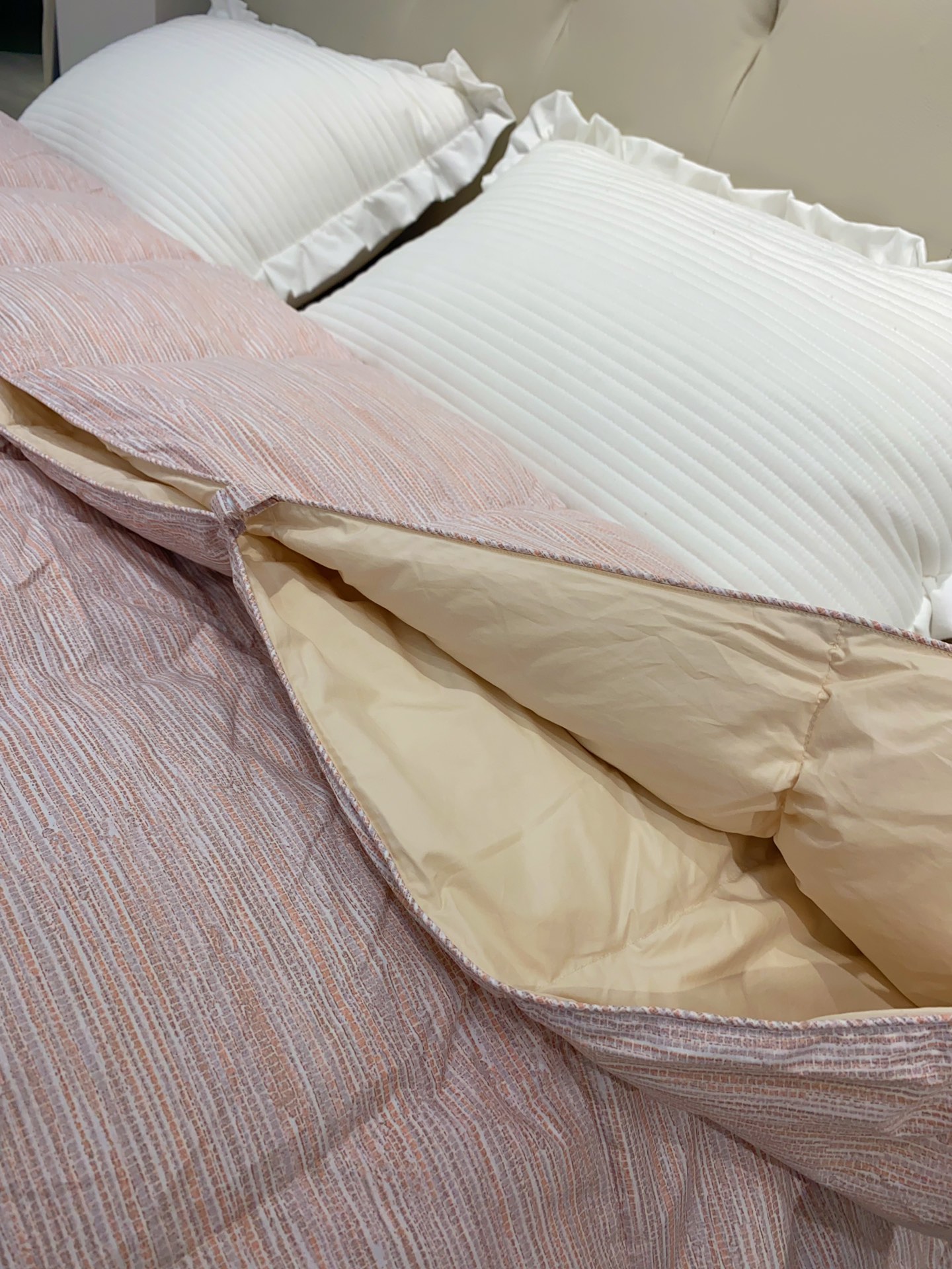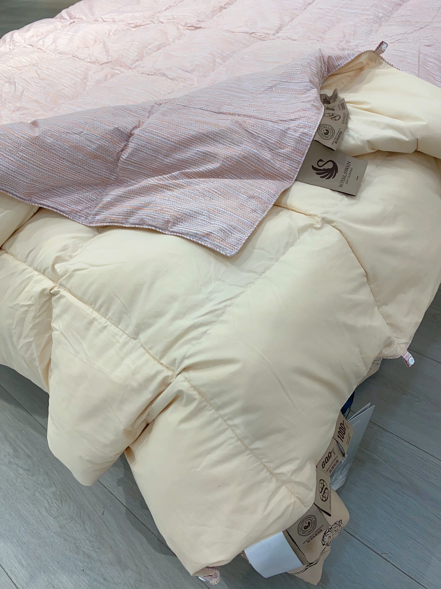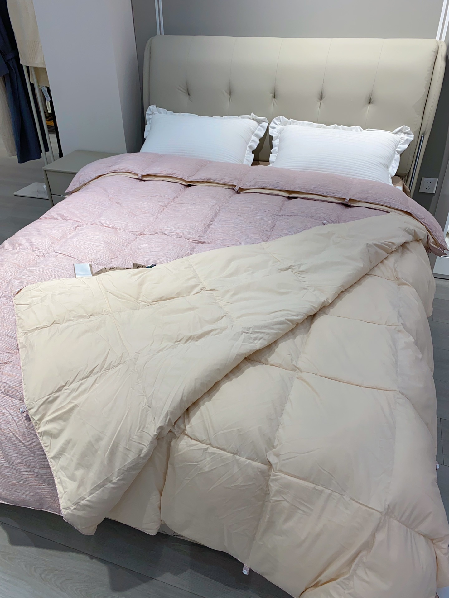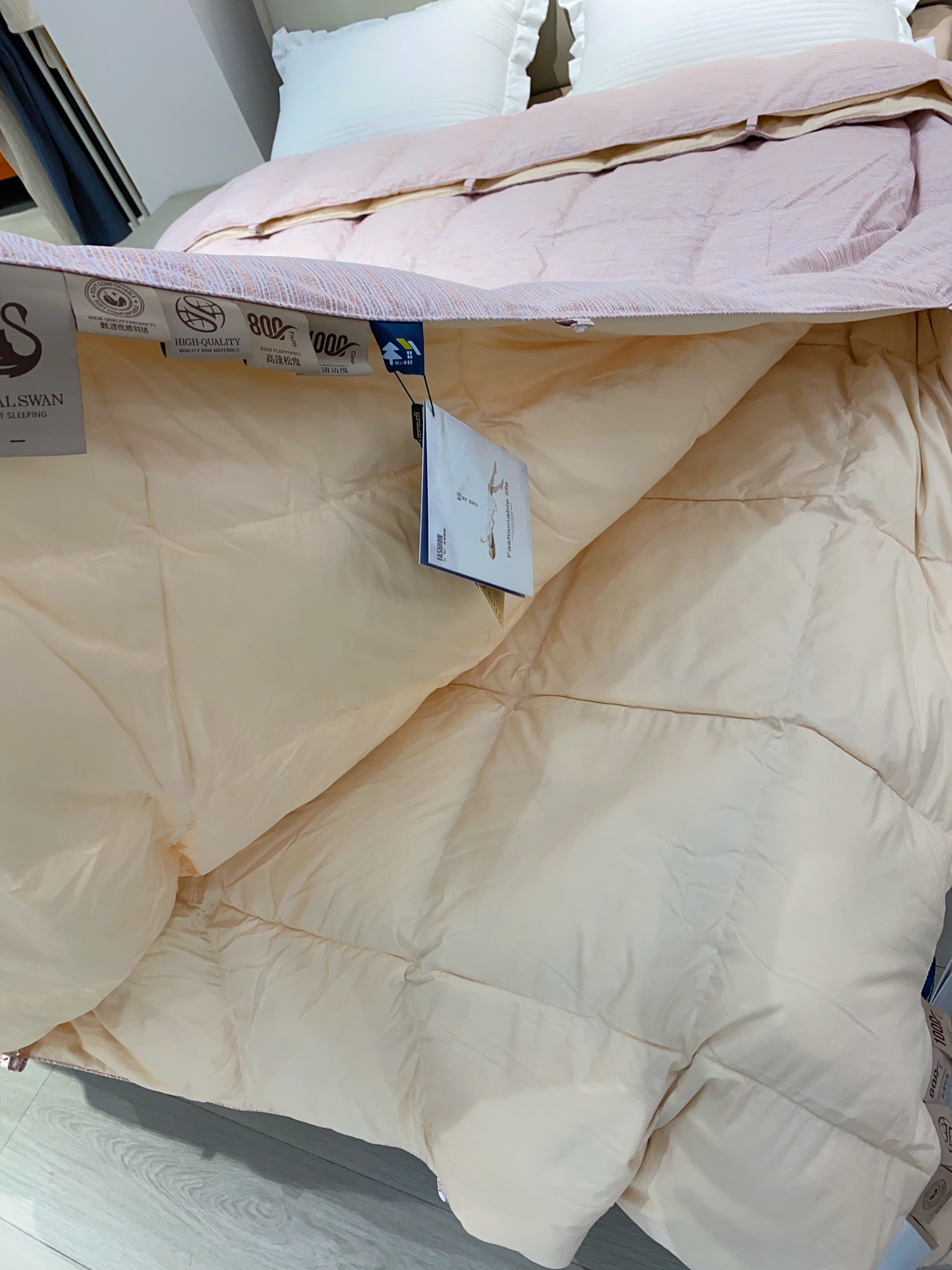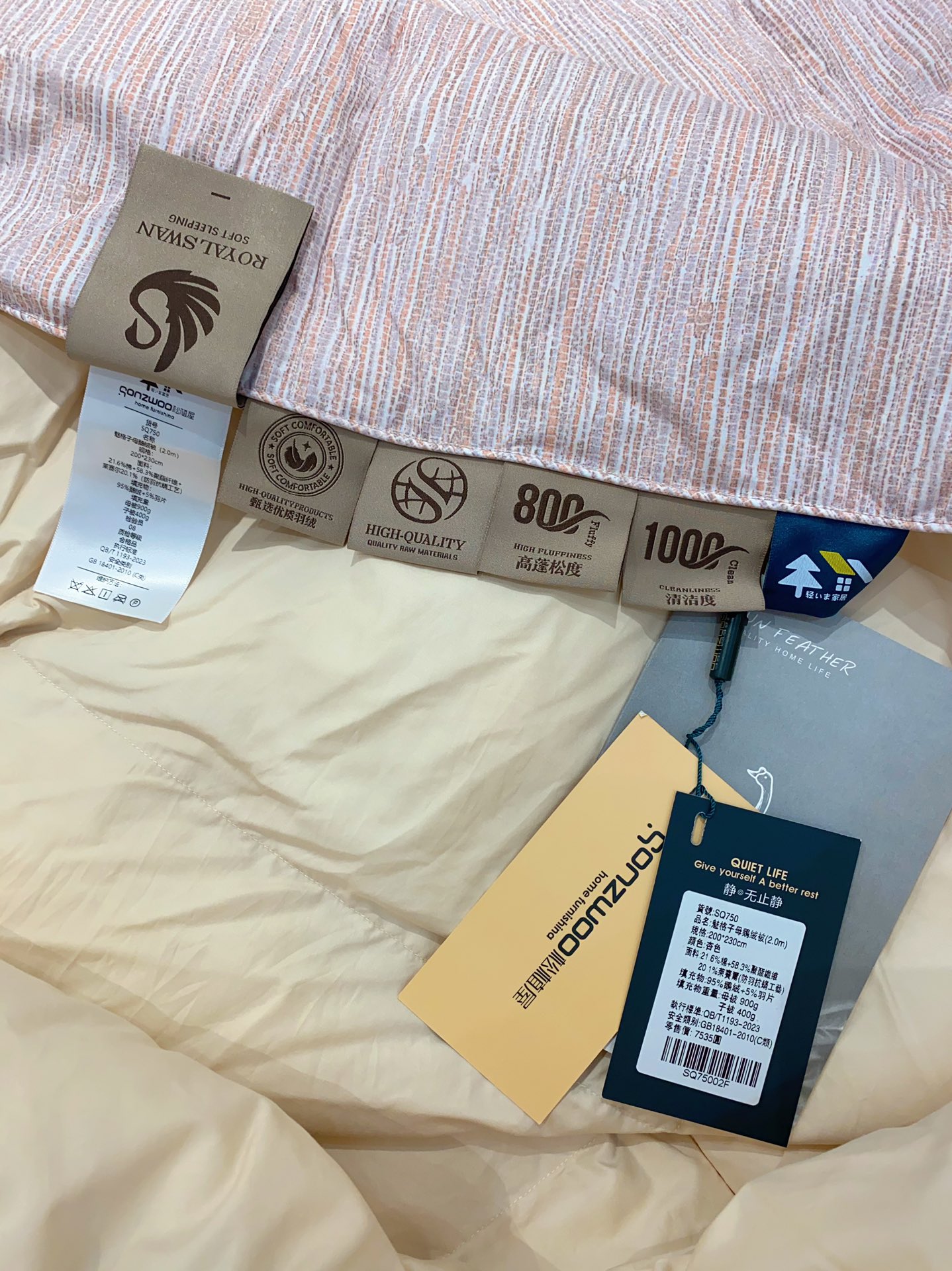 800+蓬松柔软,1000+洁净标准,轻盈无负担,采用棉感混纺面料,结合防羽抗螨科技