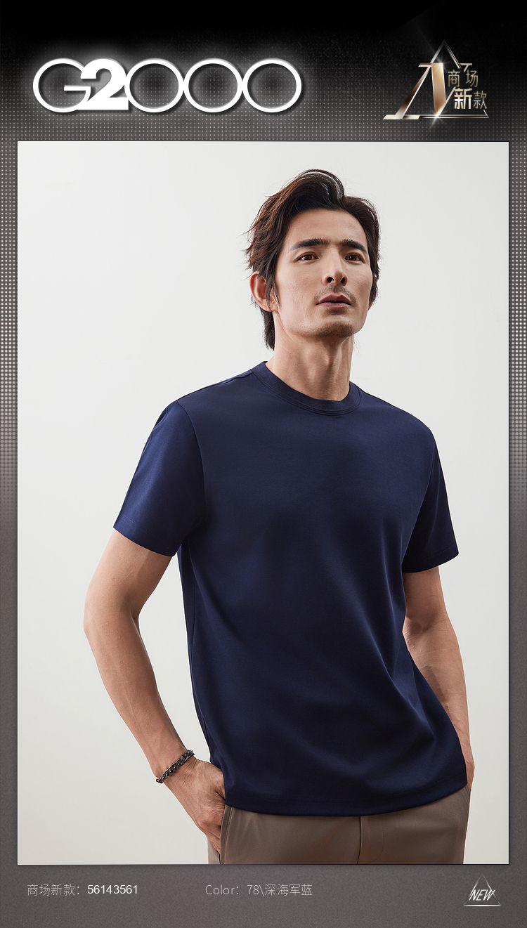 G2000【吸湿/棉质弹/商场新款】男装FW25舒适亲肤百搭针织短袖T恤56143561
