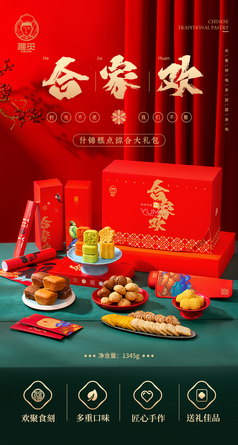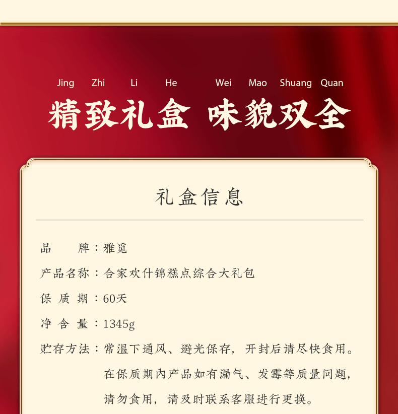 雅觅 合家欢什锦糕点综合大礼包1345g【产地直发】