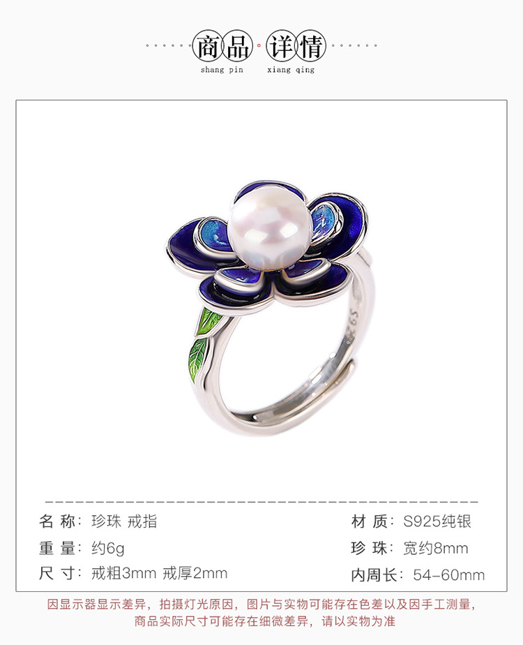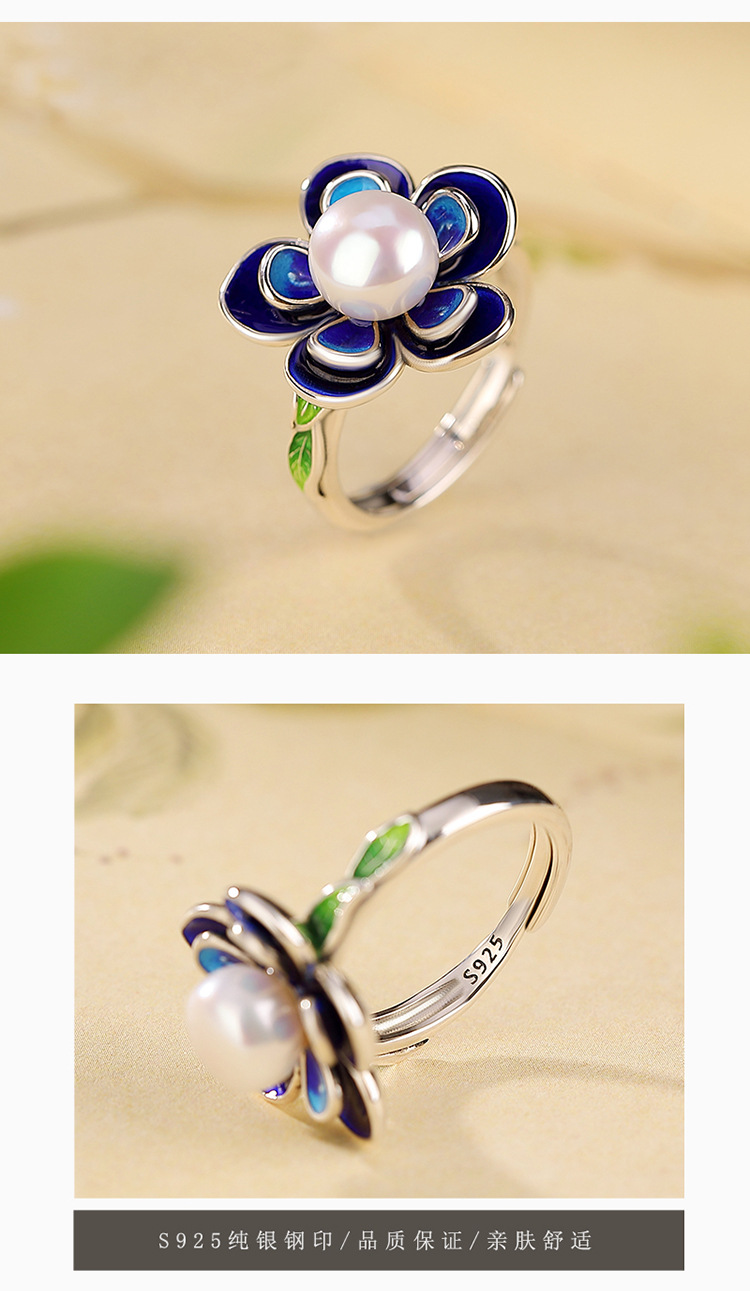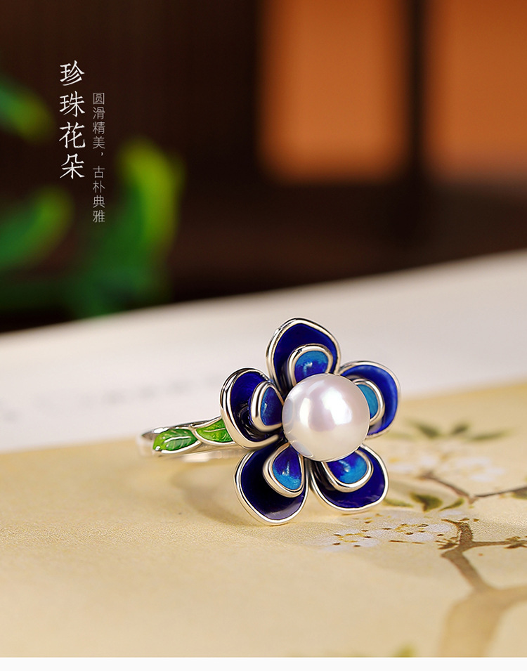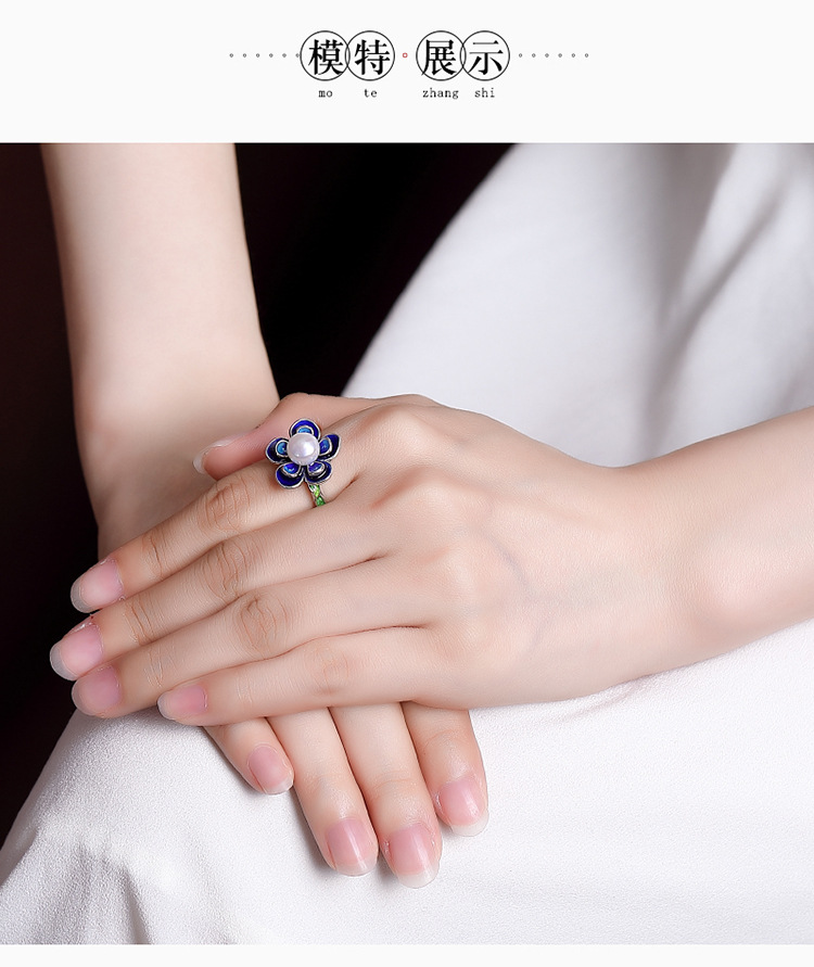【花含媚影】S925银景泰蓝珍珠花朵戒指【CW-239104】