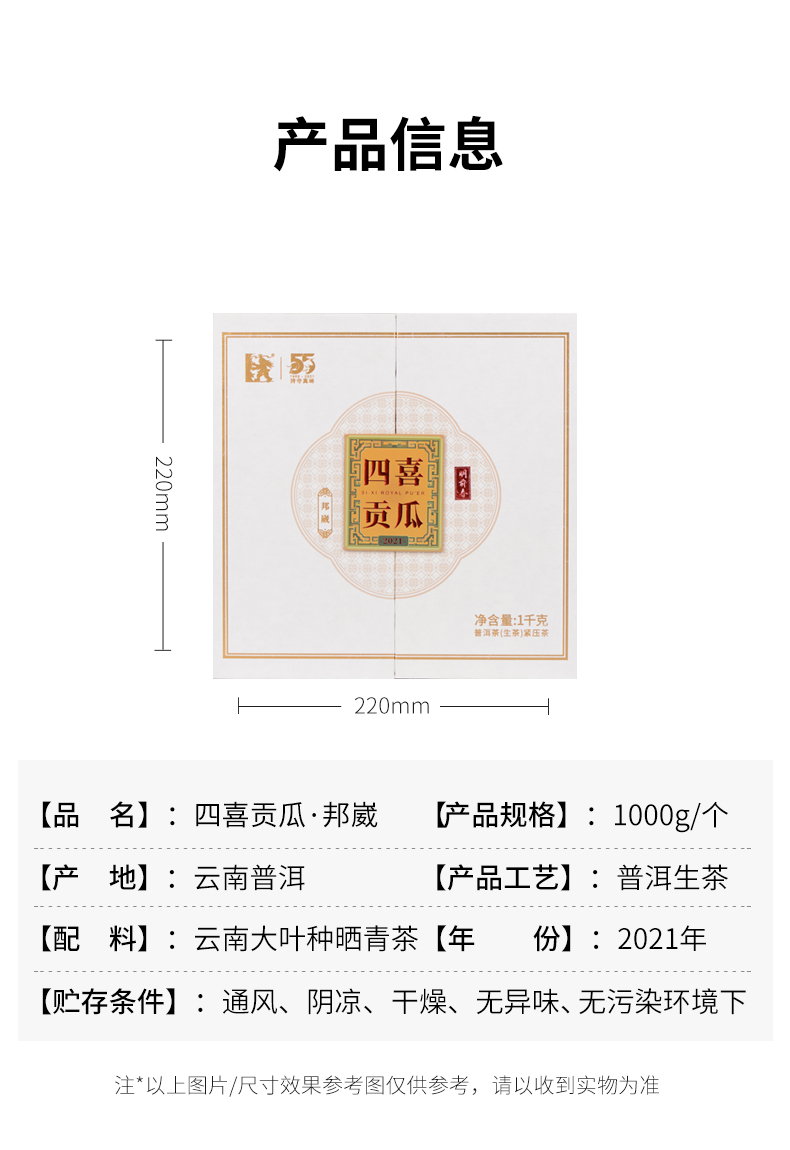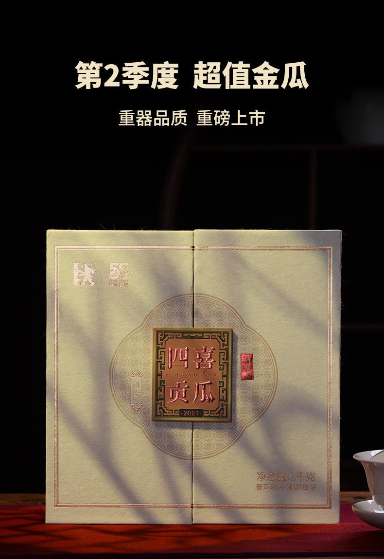澜沧古茶2021年55周年四喜贡瓜(二季)邦崴金瓜普洱茶生茶金瓜1000g