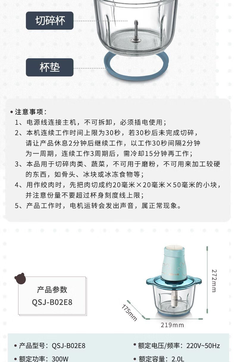 【分仓直发包邮】小熊(Bear)切碎机 QSJ-B02E8