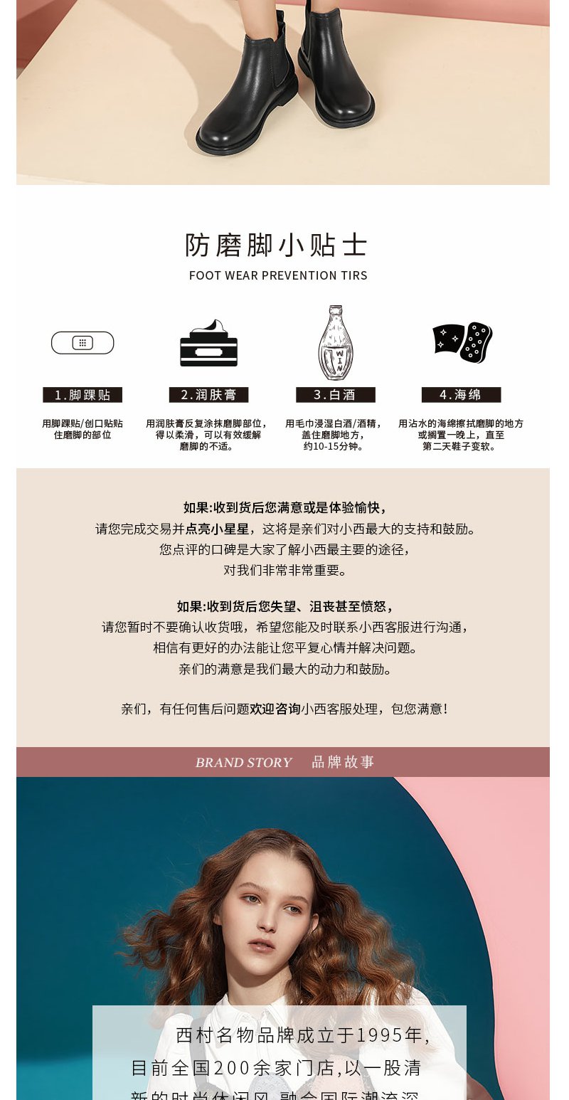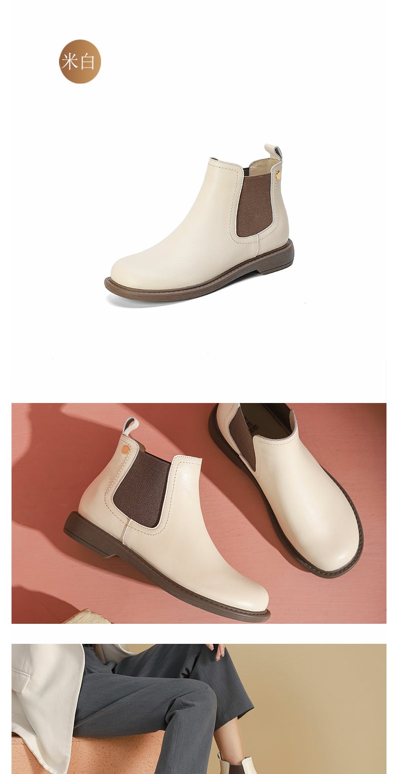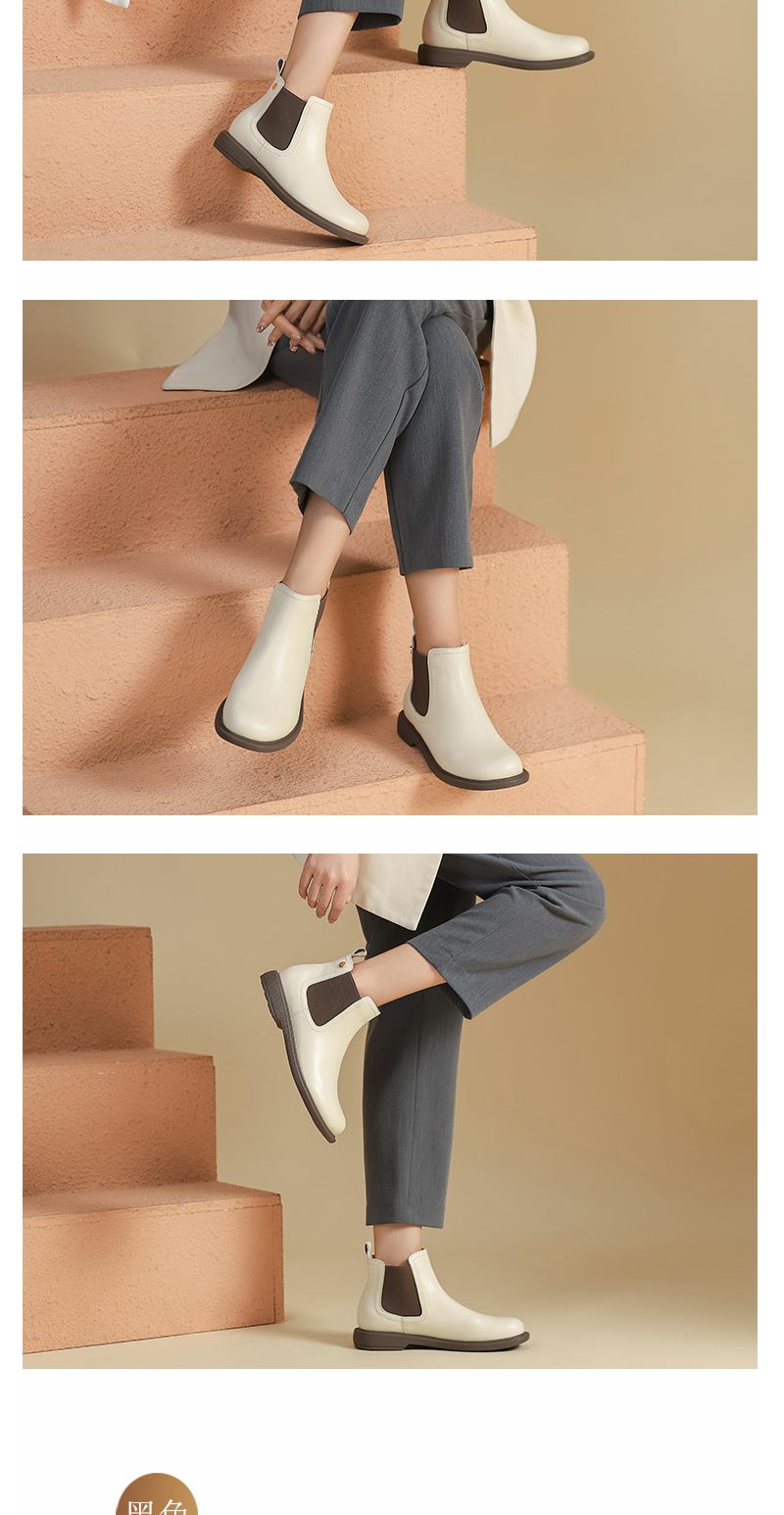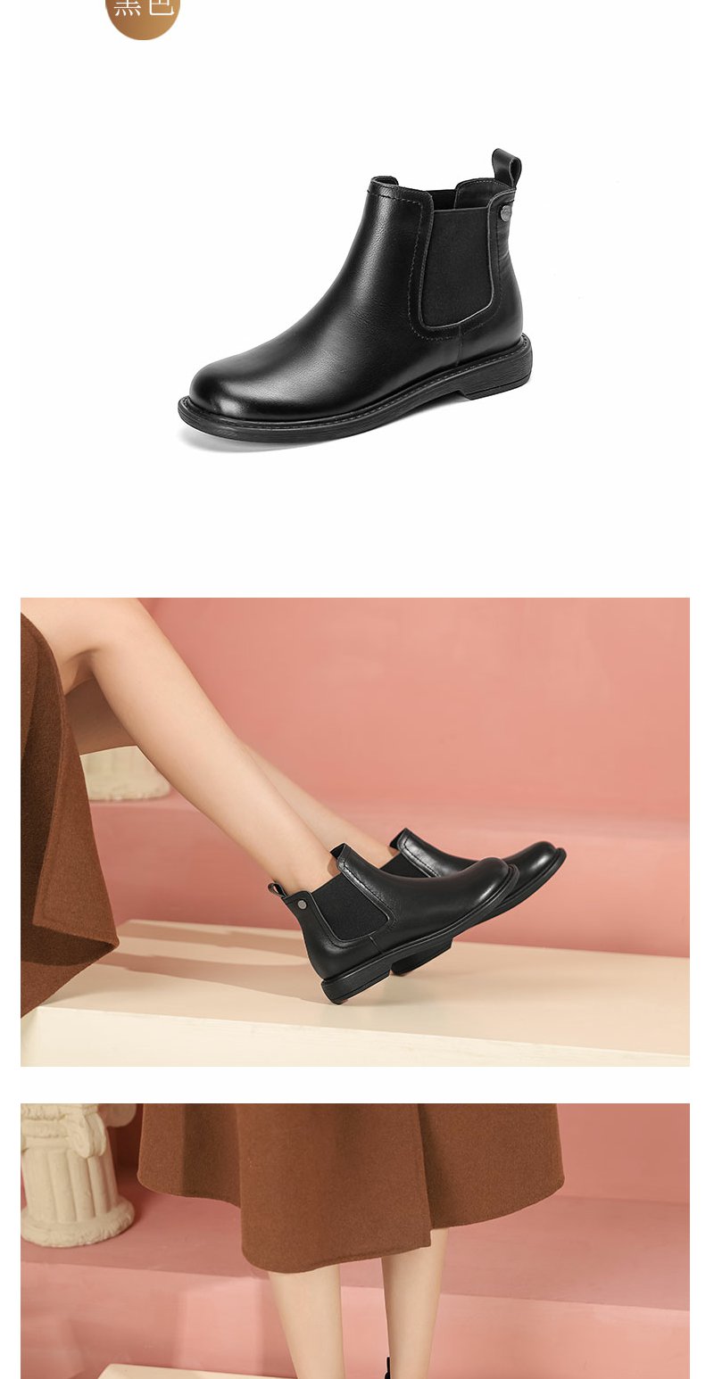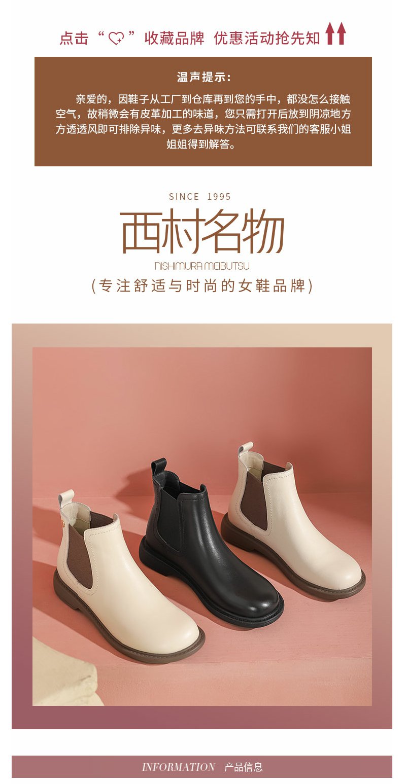 西村名物22年秋冬新款简约风切尔西靴一脚蹬粗跟百搭真皮短靴女43801