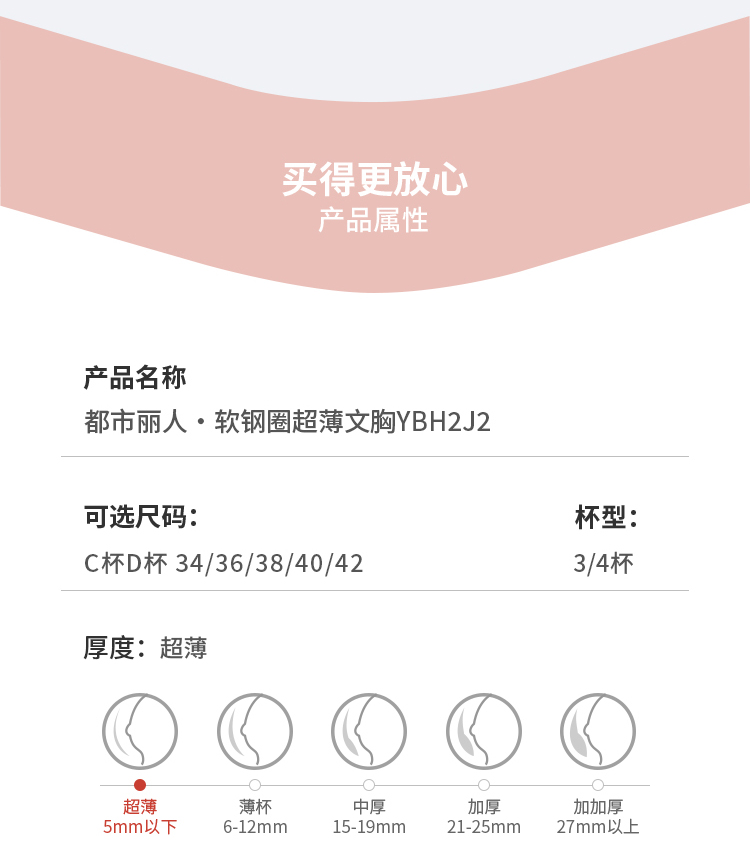 都市丽人完美包容内衣CD:超薄蕾丝软钢圈常规文胸YBH2J2