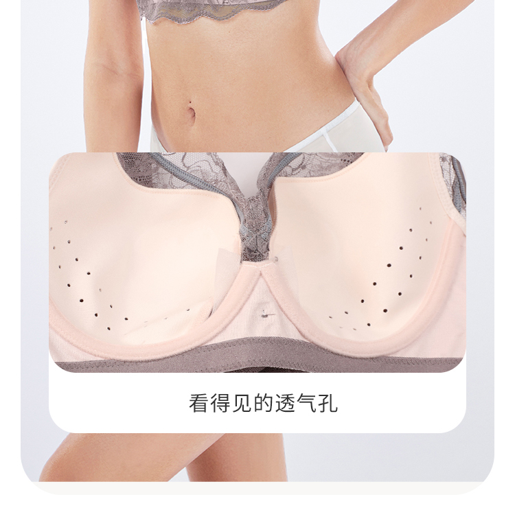 都市丽人WISECOOL常规内衣B杯超薄三角杯蕾丝文胸三排无钢圈LB32D5