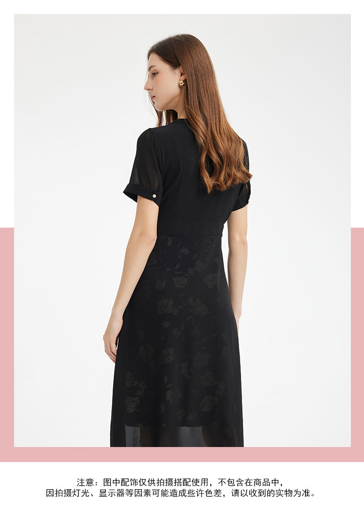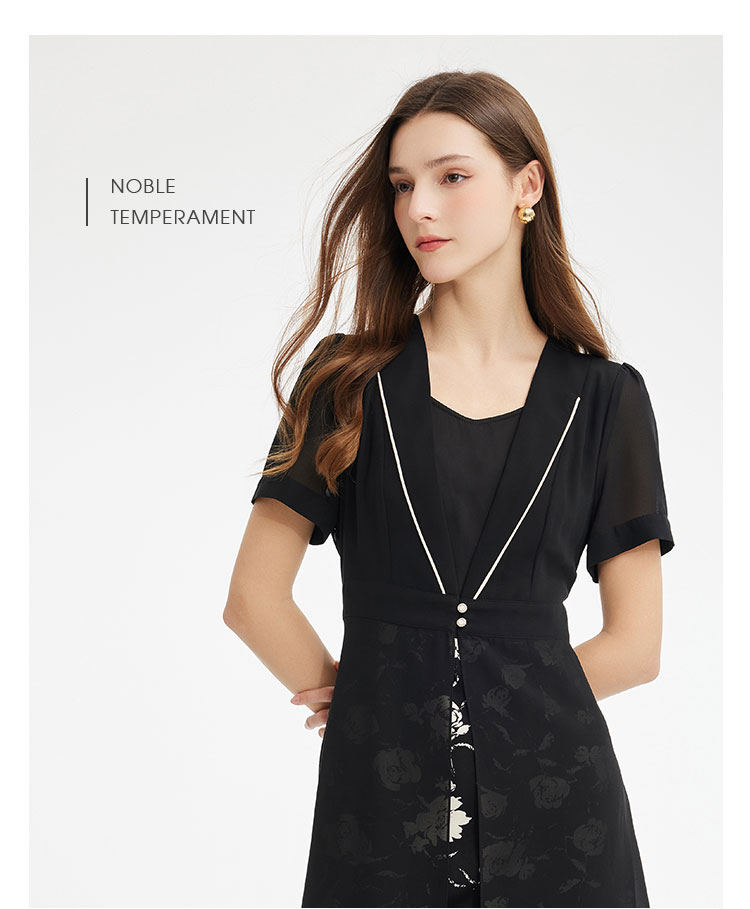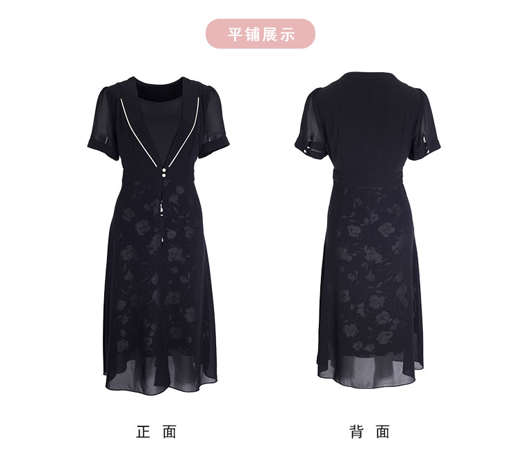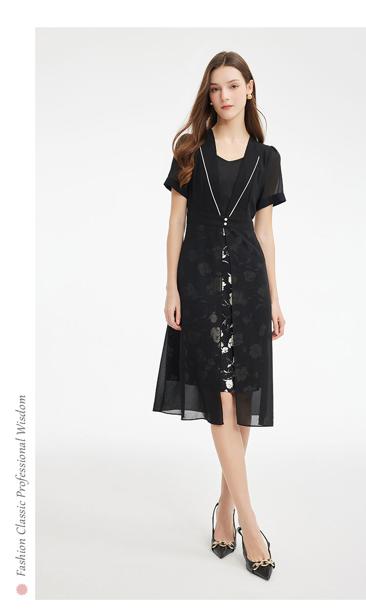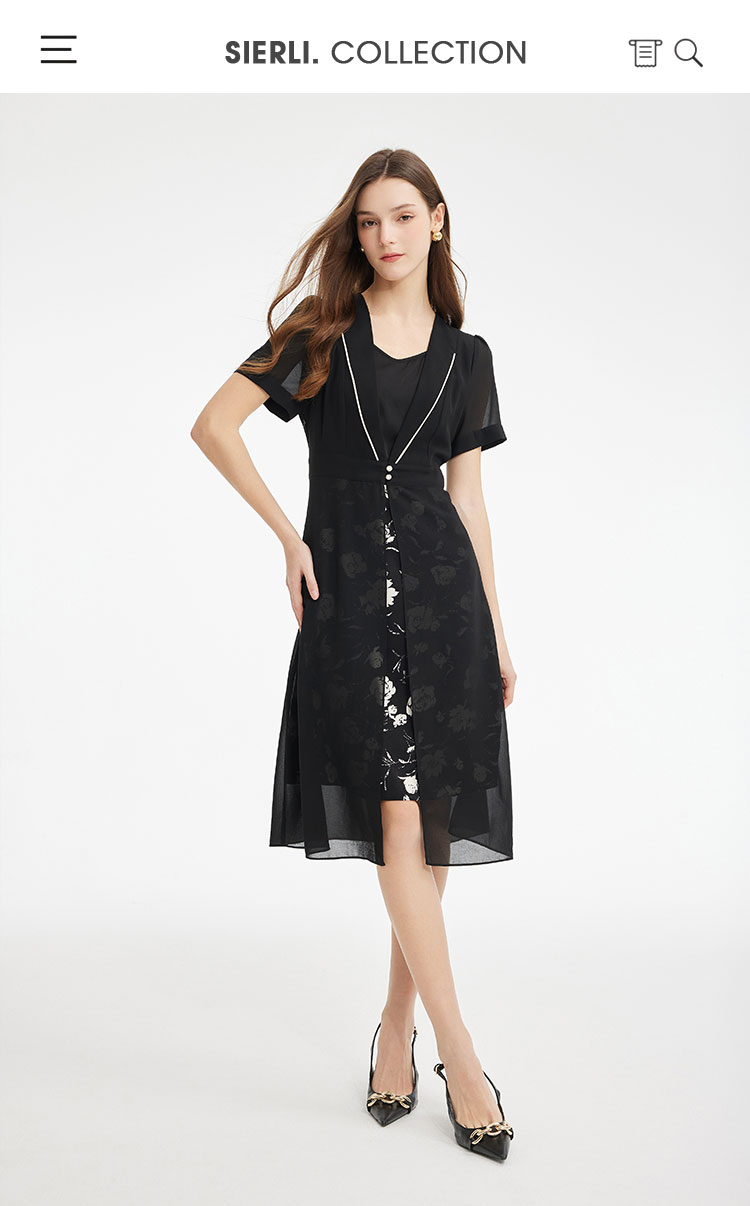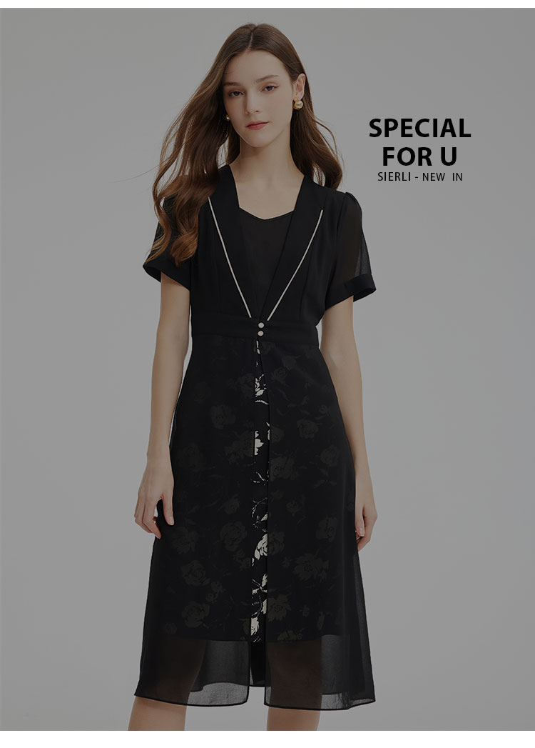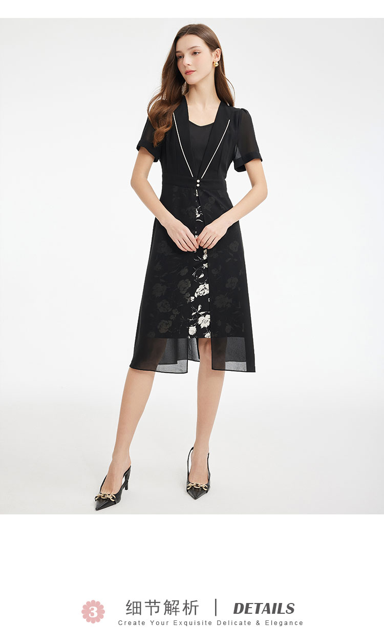 PF867斯尔丽2024新款假两件式V型出芽拼接印花显瘦显高时尚减龄连衣裙