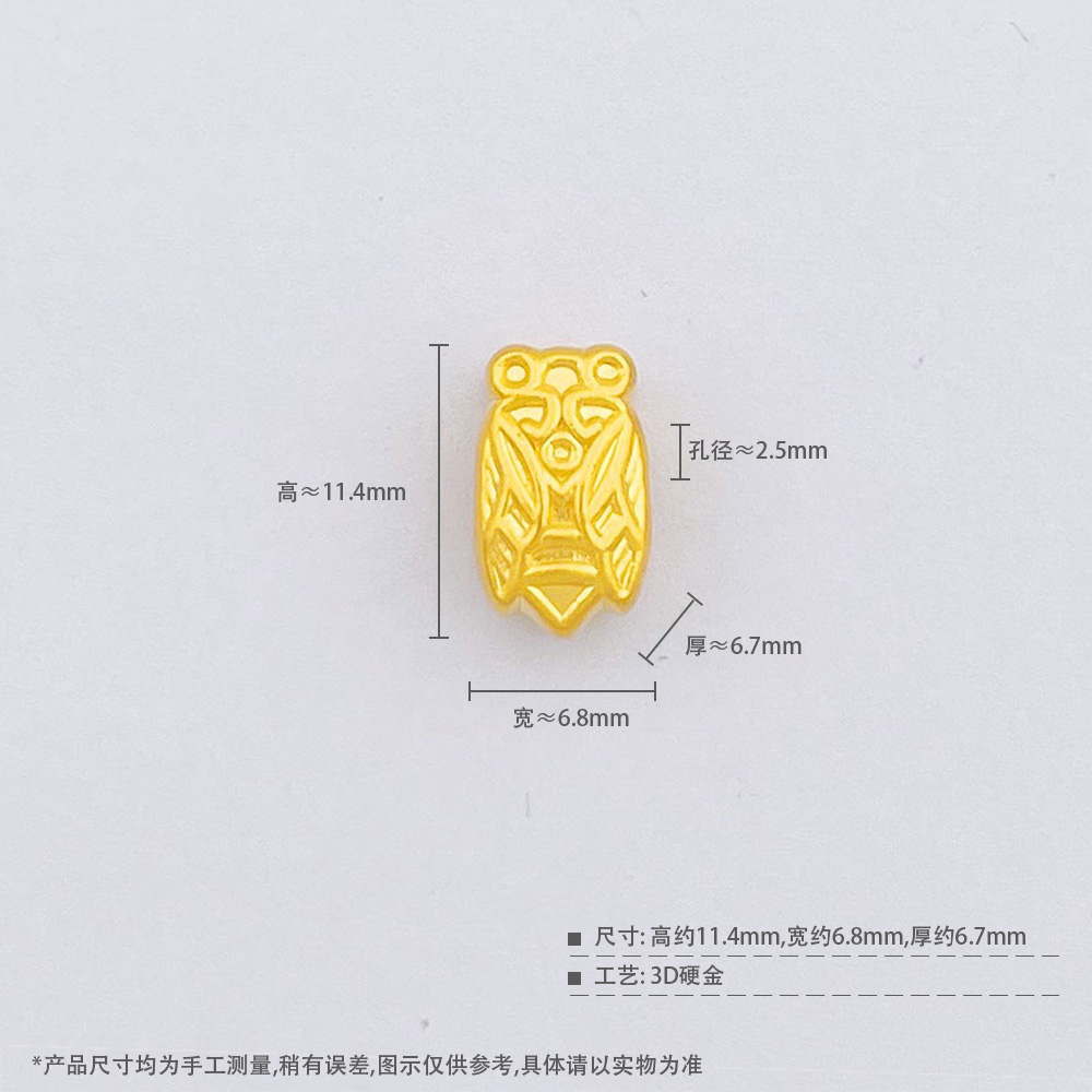 【限时7.5折】【定价黄金】足金 【精品】3D硬金空心仿古法手串配件一鸣惊人知了金蝉转运珠Diy手串配件(AU3DSC00012)(预售产品下单后不退款不退货不换货不补差价)