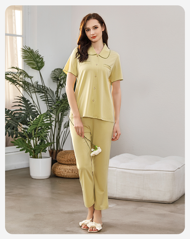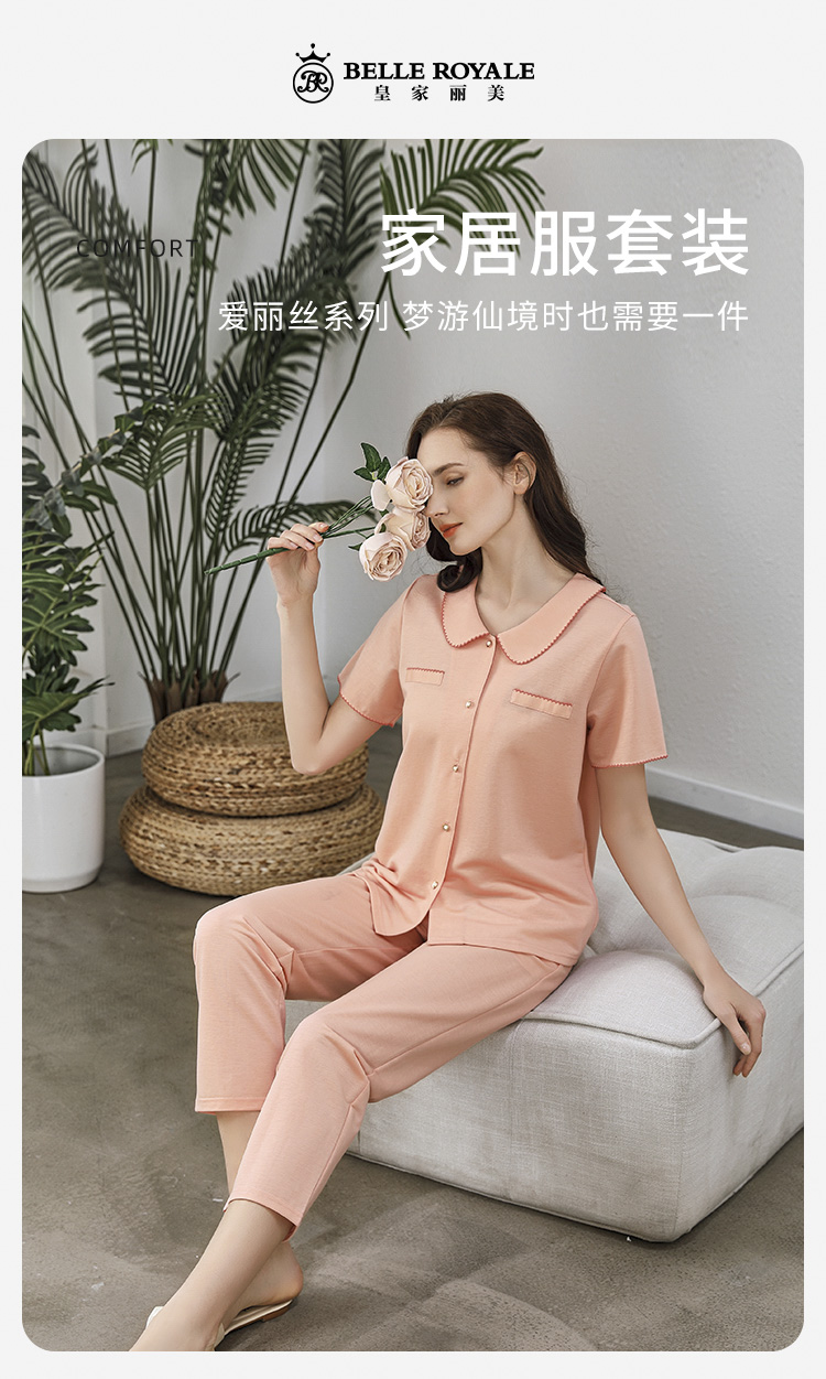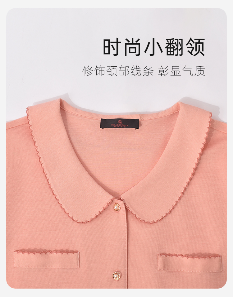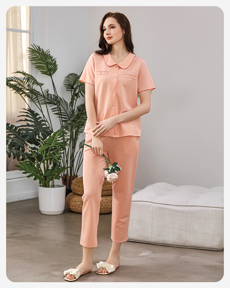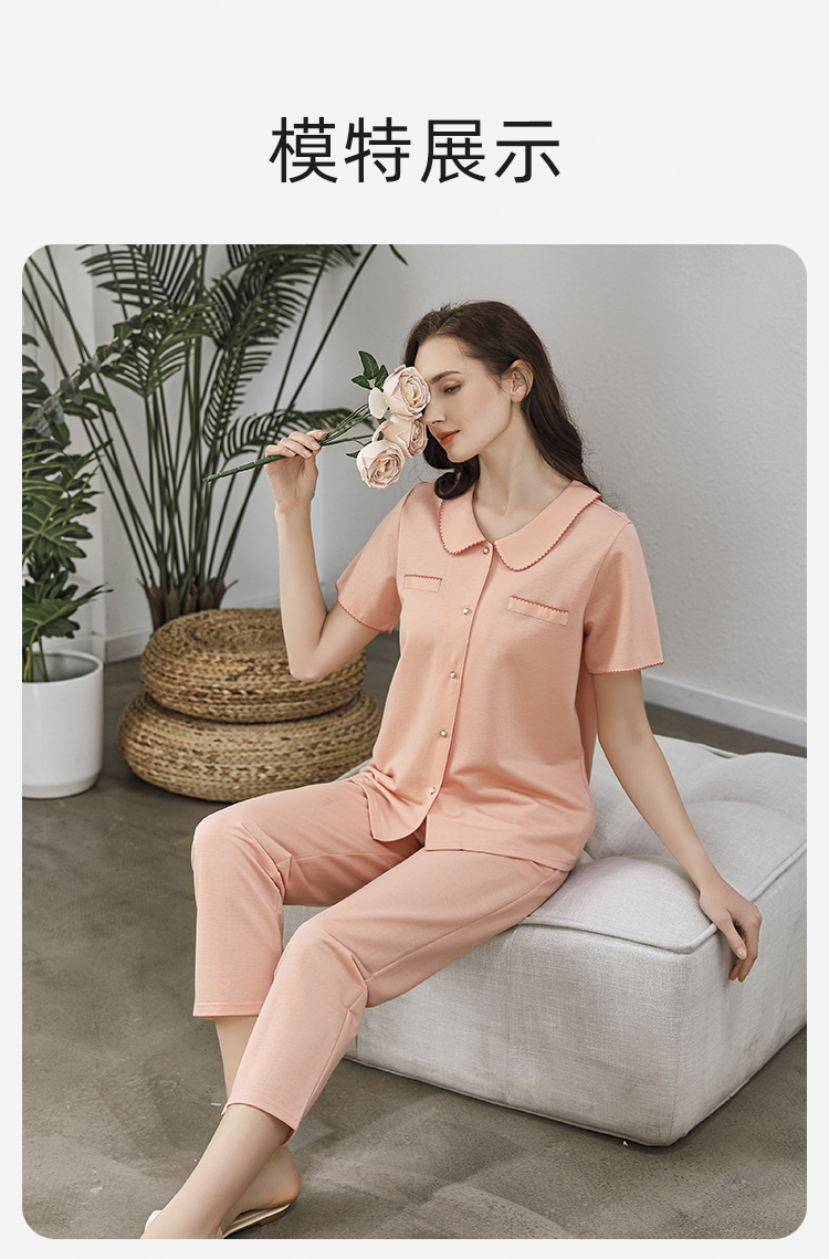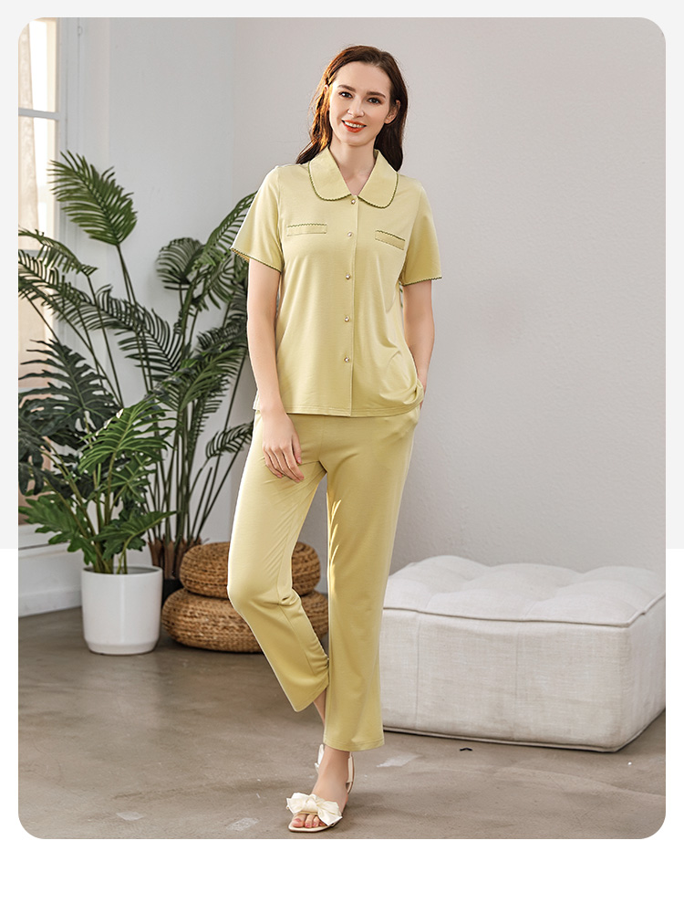 新款睡衣女优质面料小翻领短袖长裤夏季家居服套装JJT9917