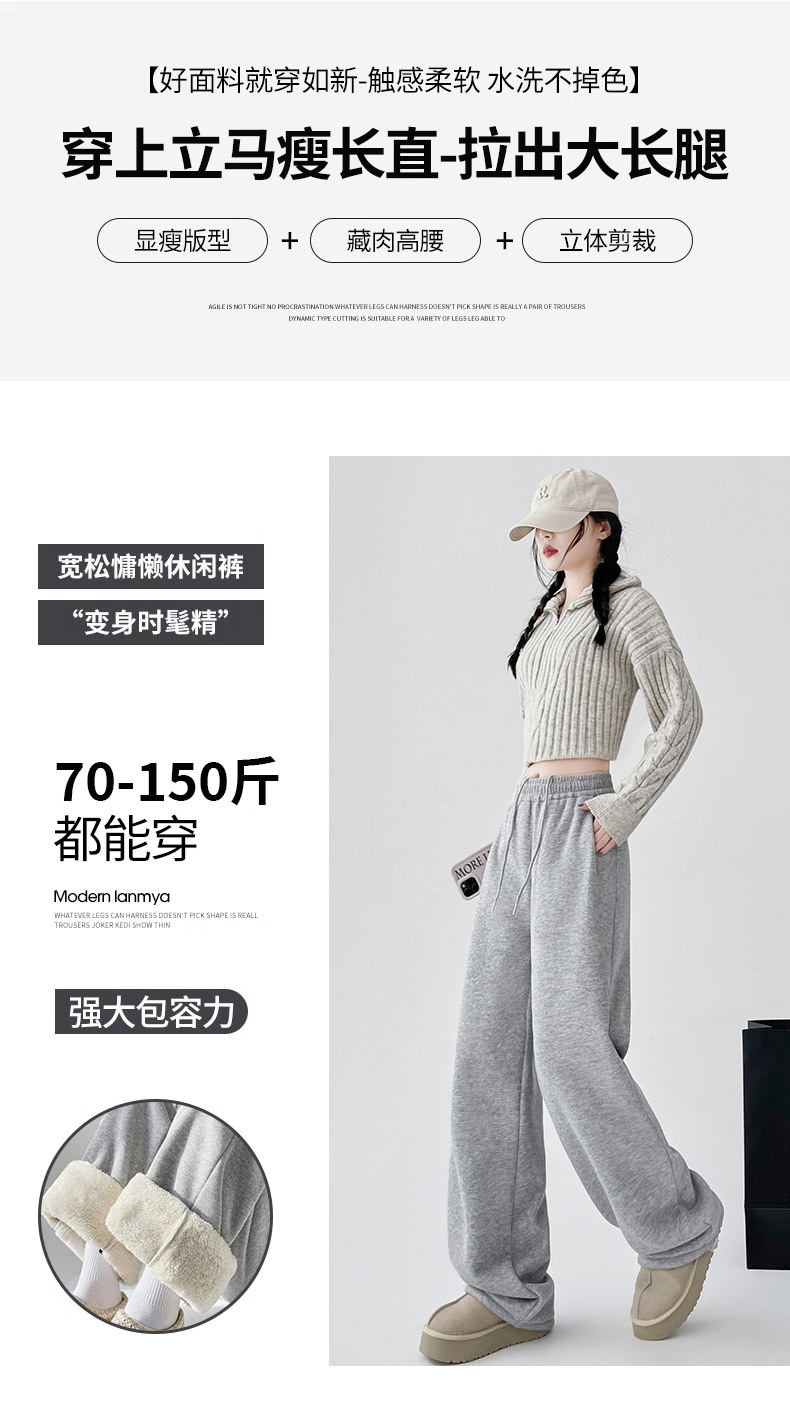 人手一条!巨巨巨保暖!软软包裹感!【梦惠妮 700g羊羔绒美式两穿卫裤】遮腿型 束脚/阔腿自由调节 暖烘烘加绒加厚卫裤 高腰直筒版型 藏肉显瘦显高 #M663
