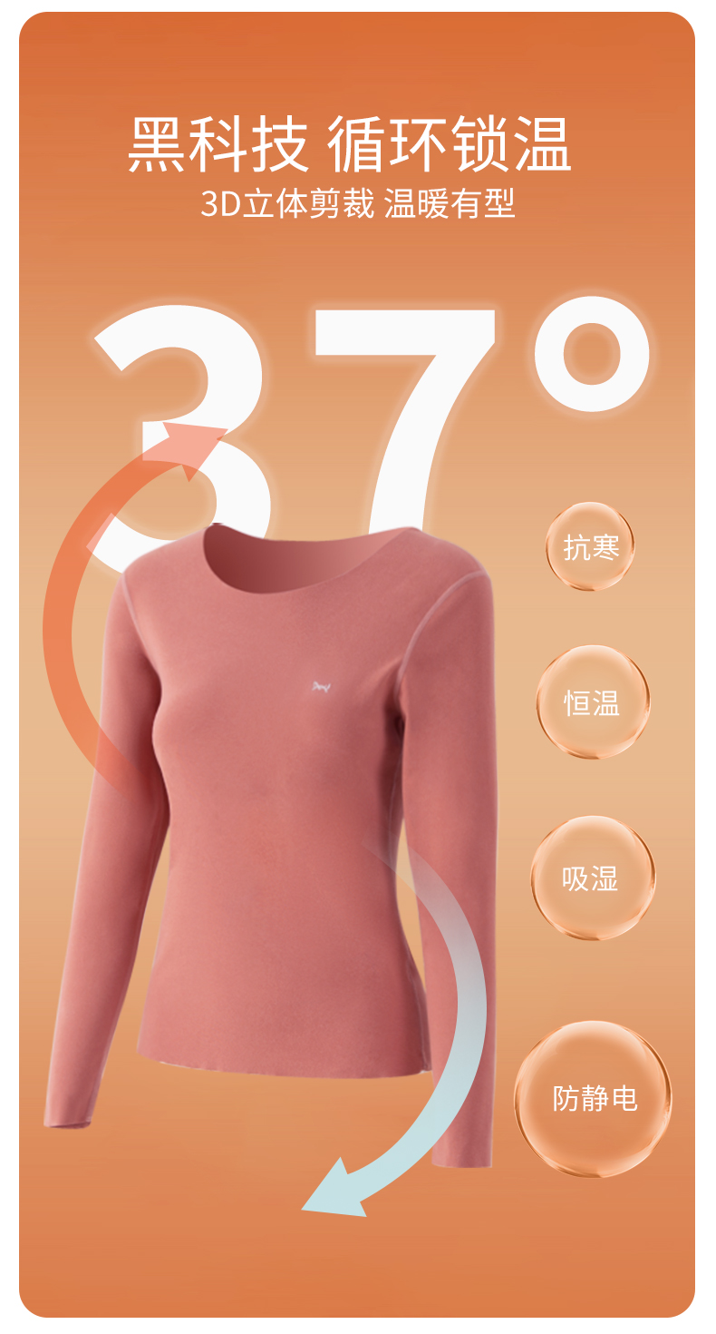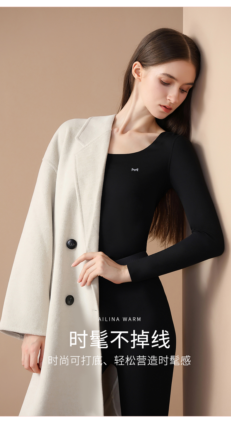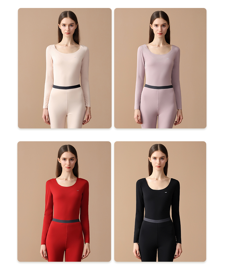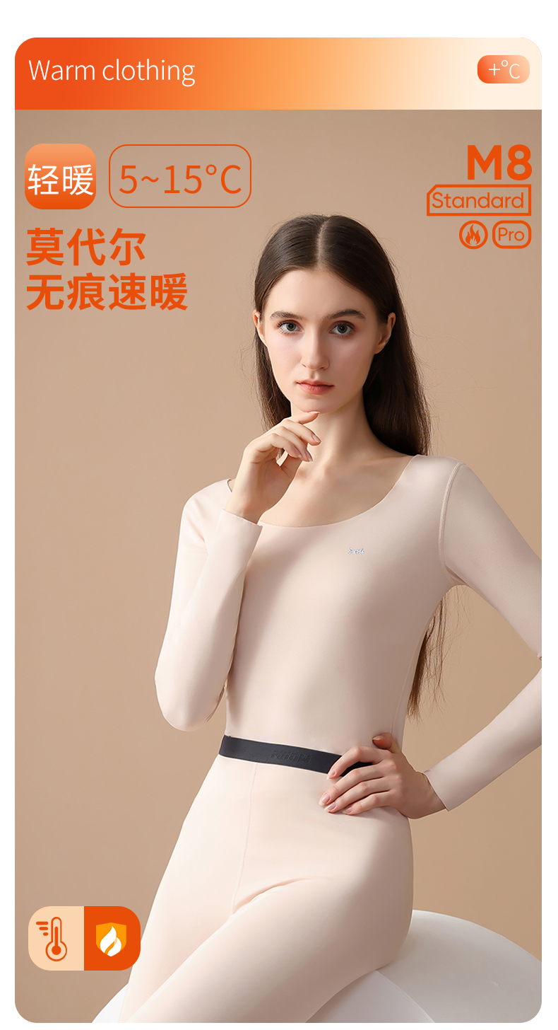 【莫代尔无痕速暖】【猫人】【M-2XL】女士超薄软糯打底保暖内衣套装