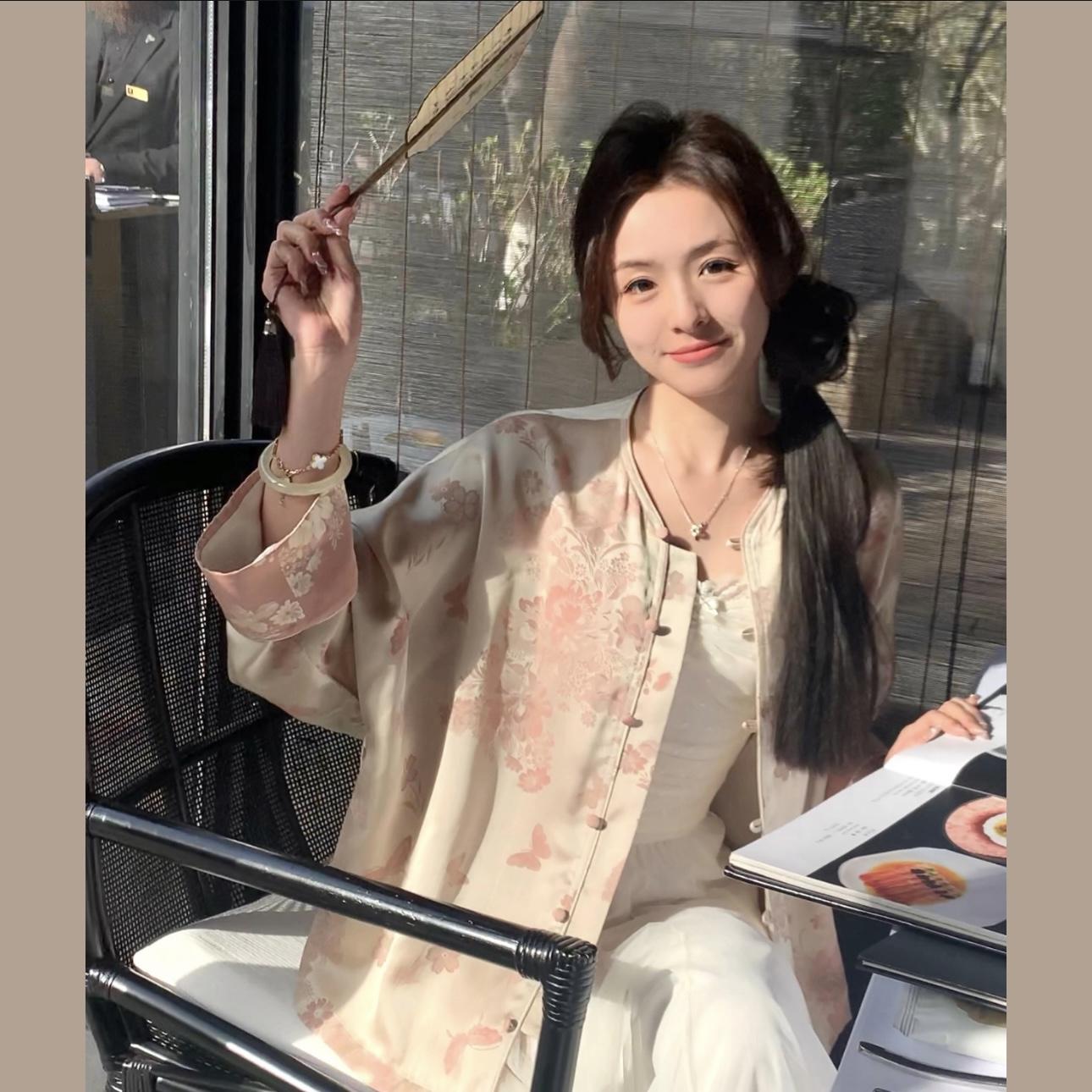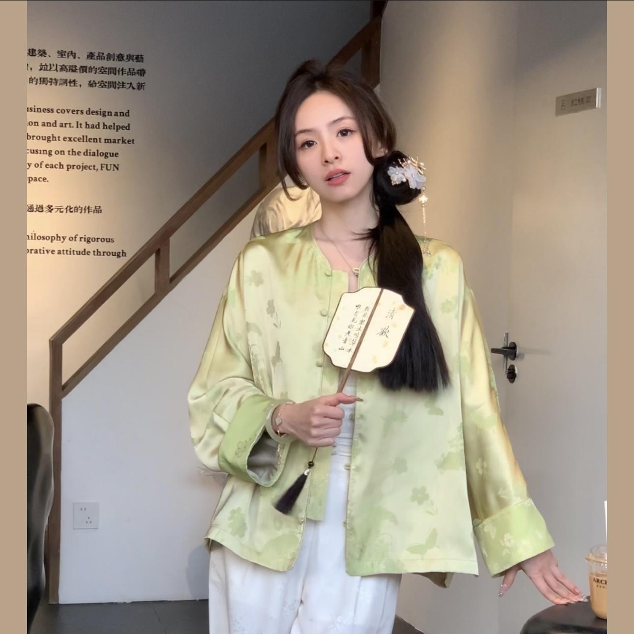 金蘑菇菇 青山入我怀/新中式 缎面提花暗纹小褂国风外套