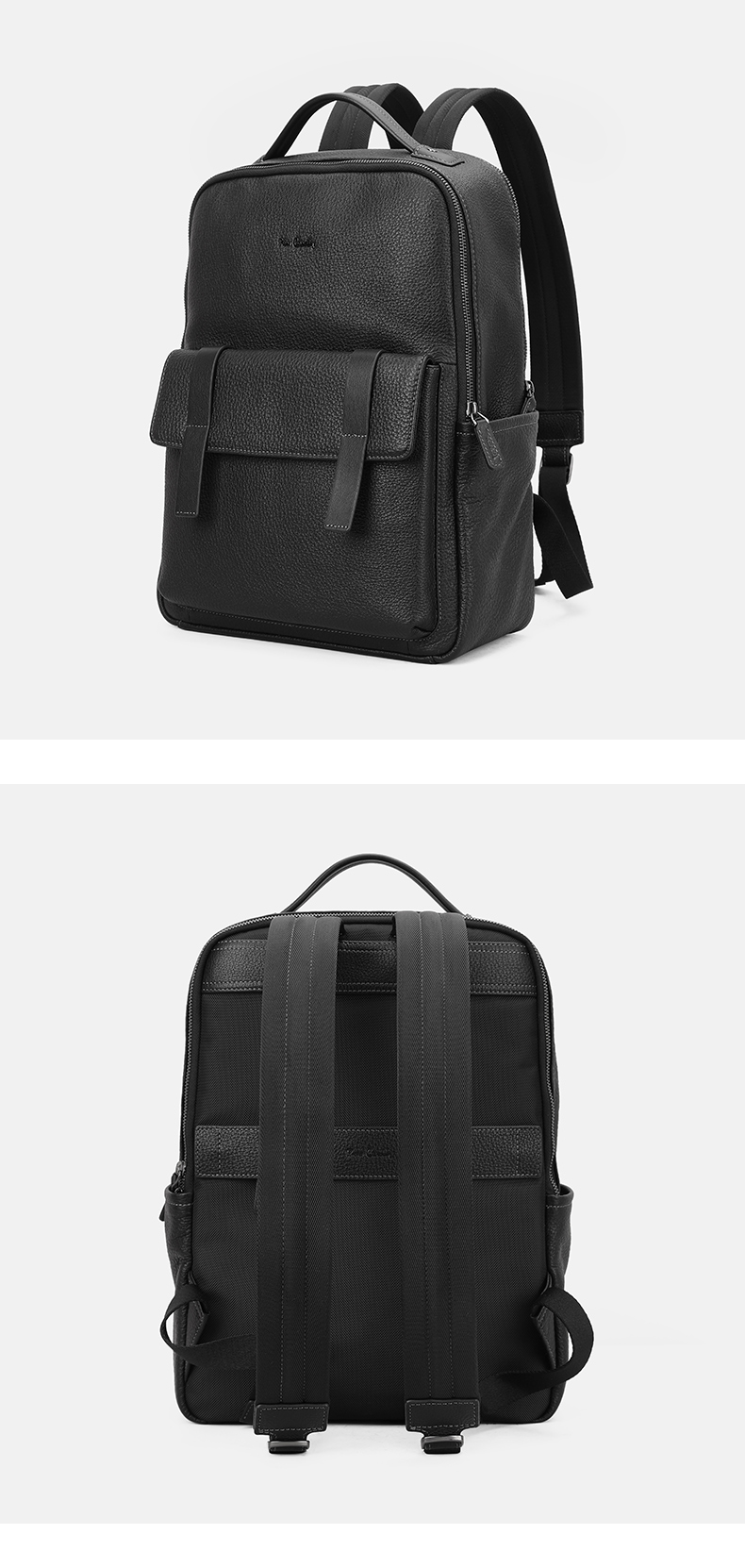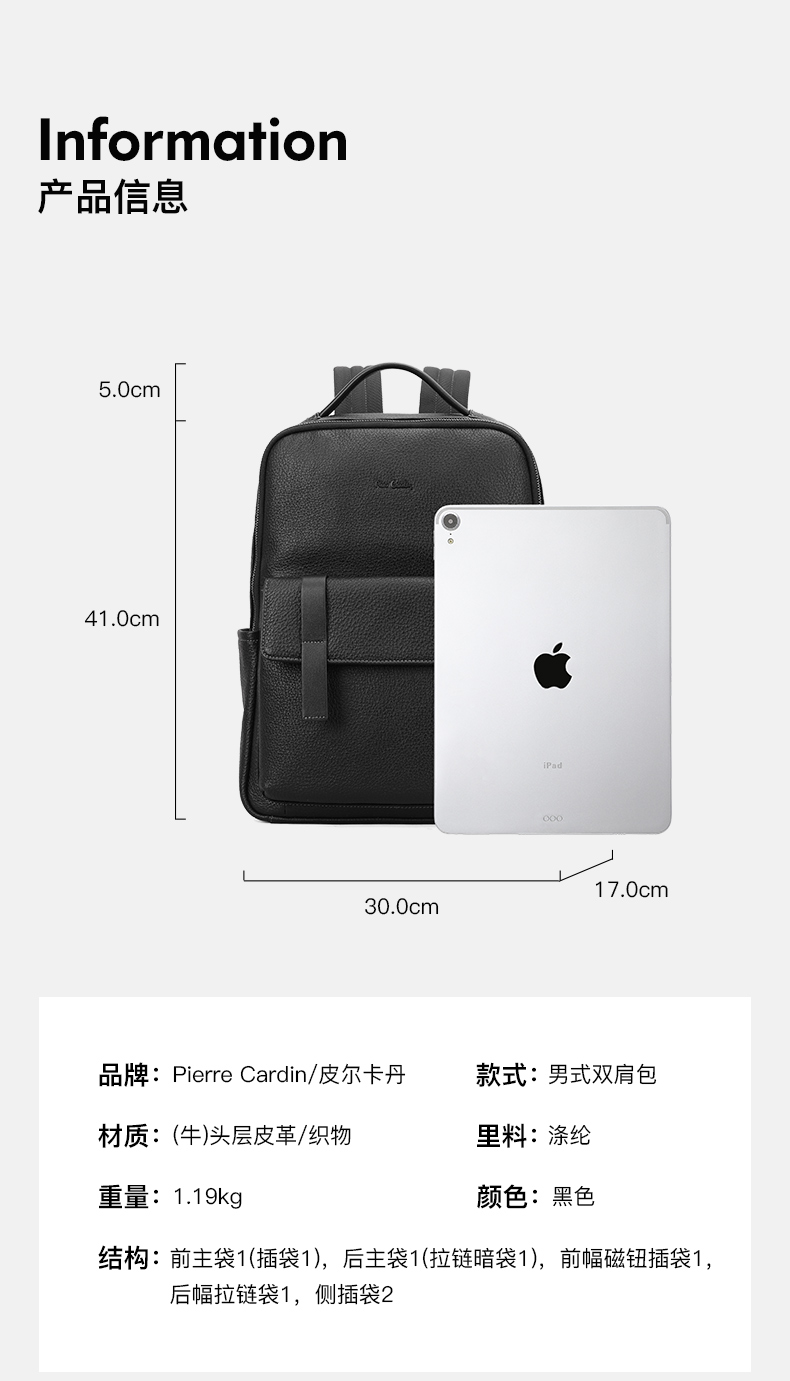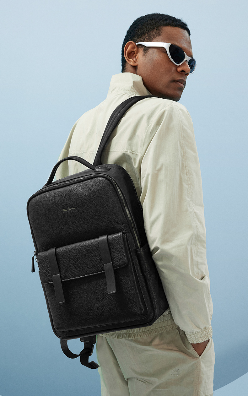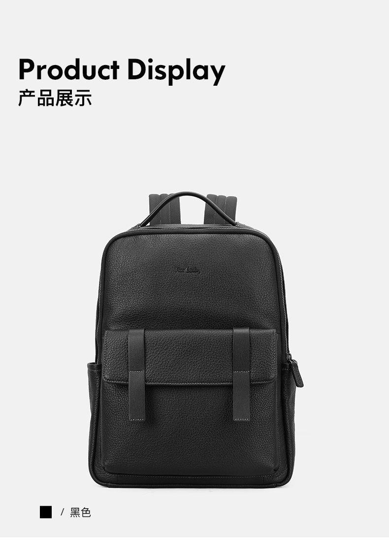 皮尔卡丹男士牛皮双肩包商务