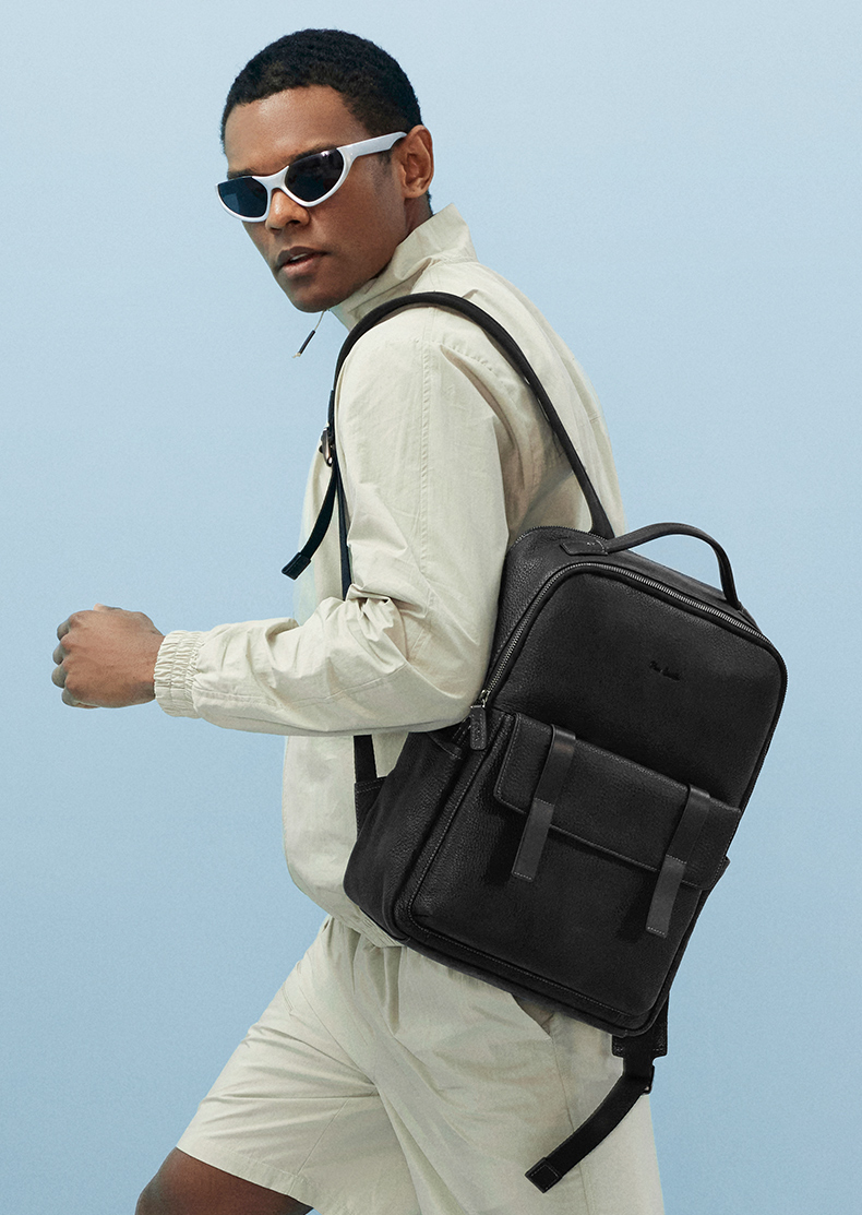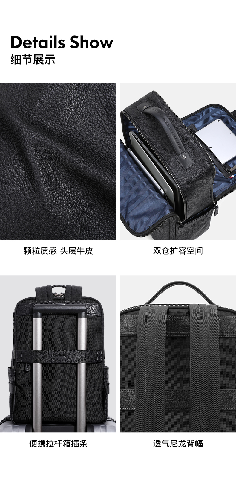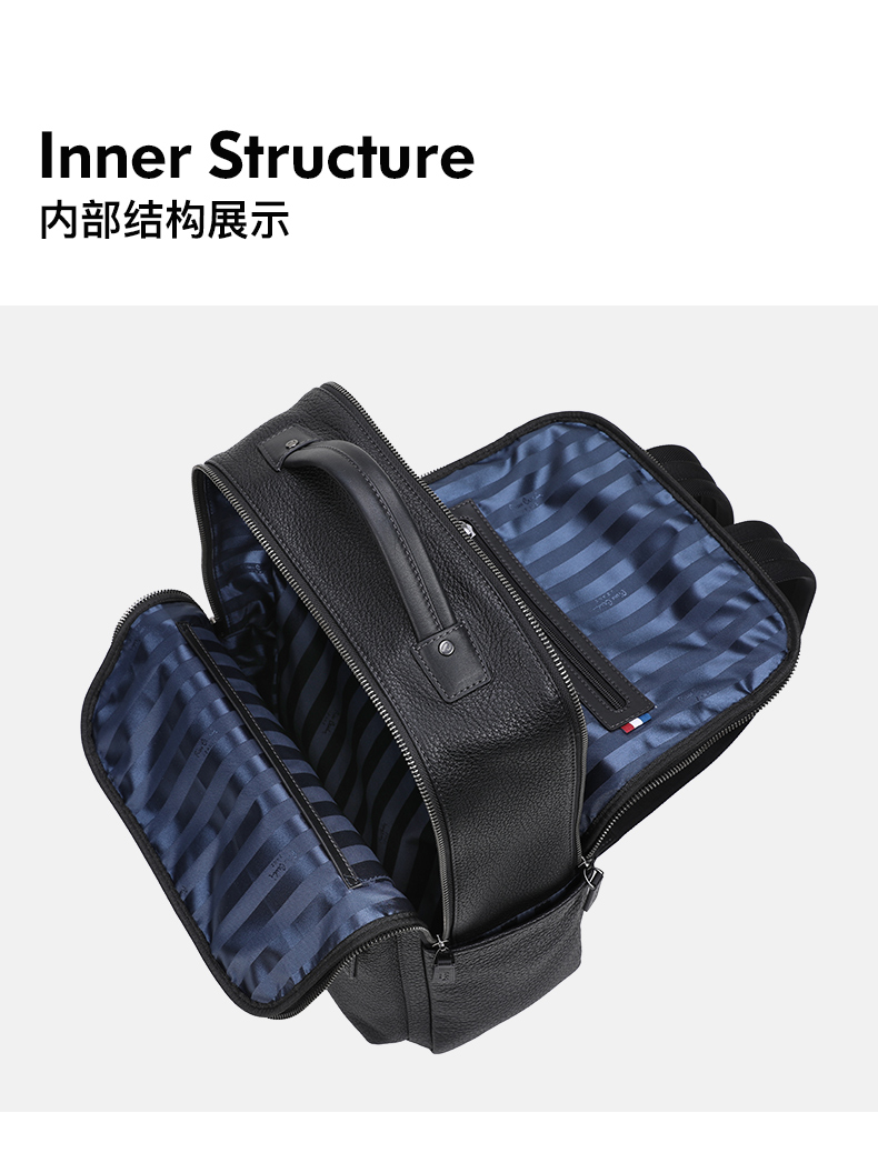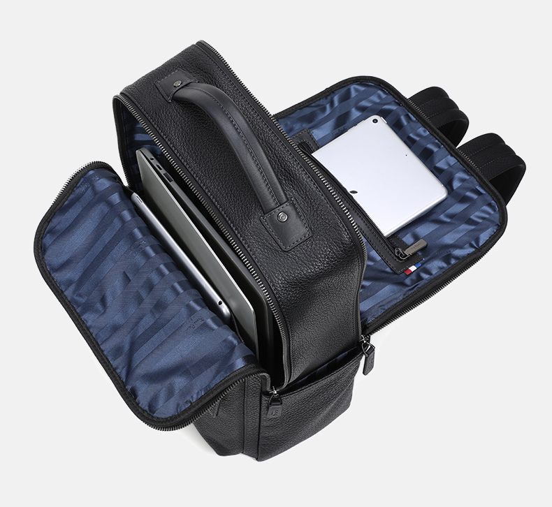 皮尔卡丹男士牛皮双肩包商务