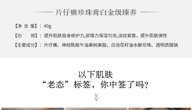 衿贵鲜活成分 焕发年轻光彩 片仔癀珍珠膏白金级臻养 40g/瓶