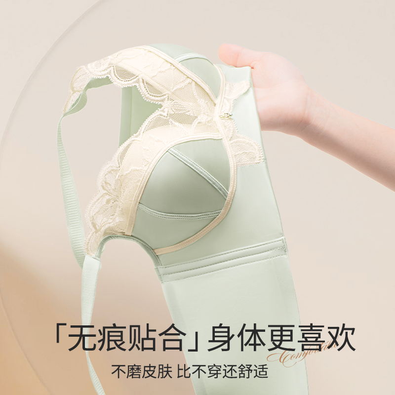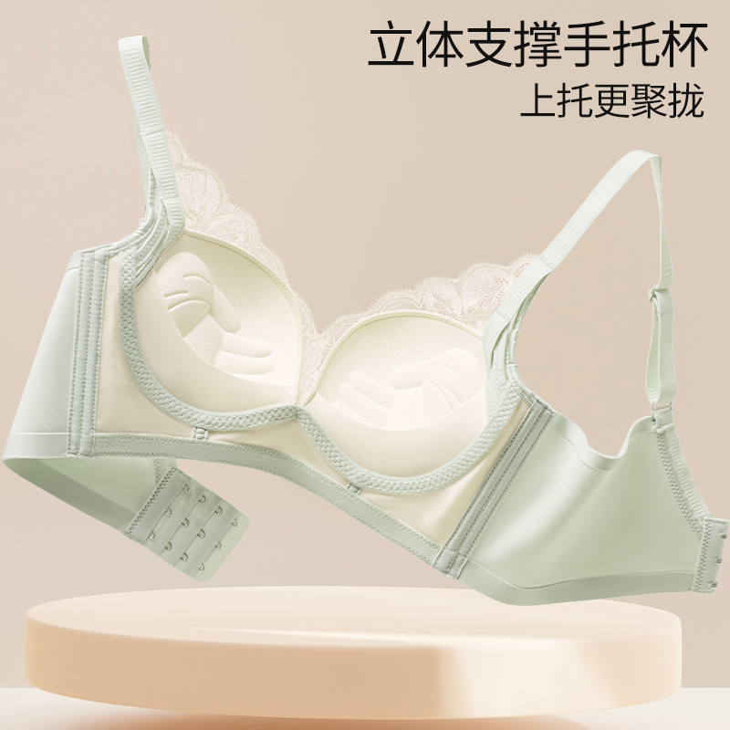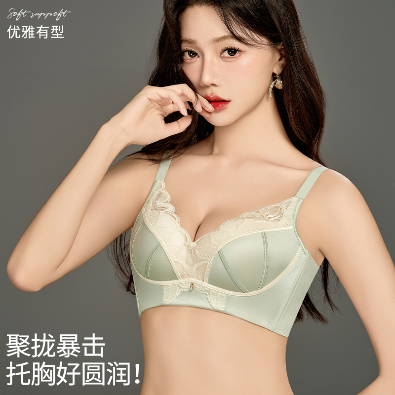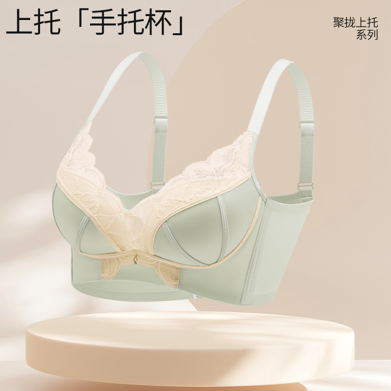 性感蕾丝轻奢缎面掌托式聚拢杯小胸显大无痕侧收塑型文胸6388