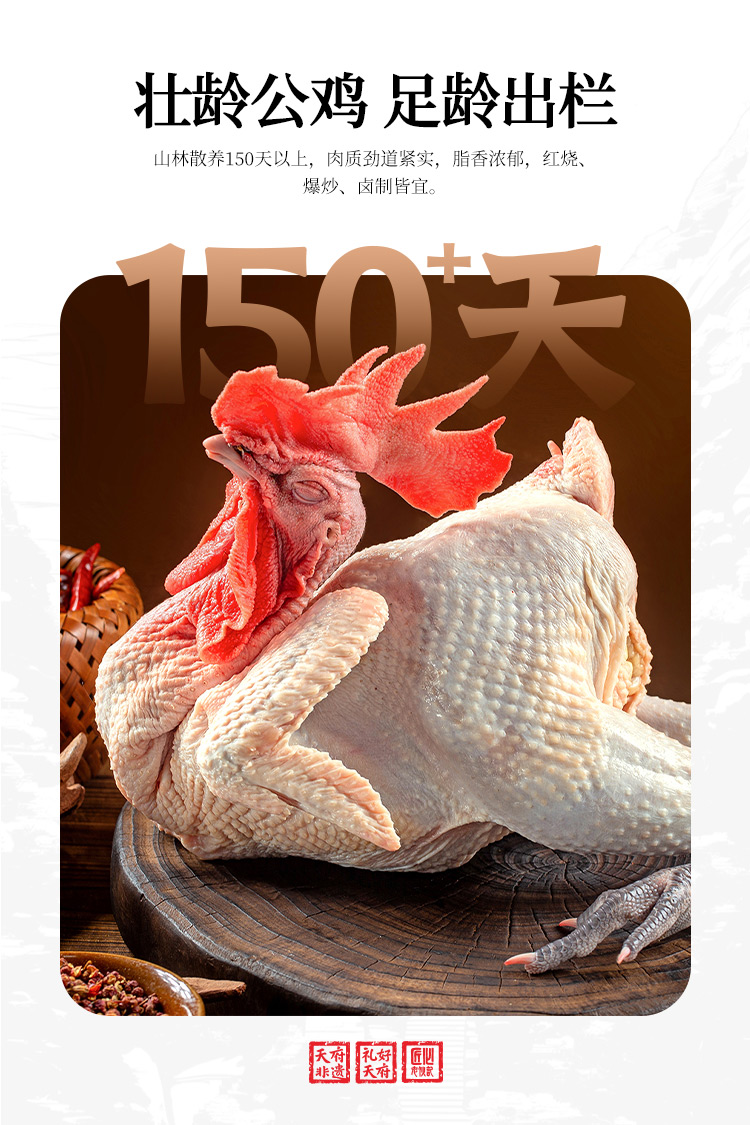 ①剑门关土鸡:公鸡1只装(150天以上);
