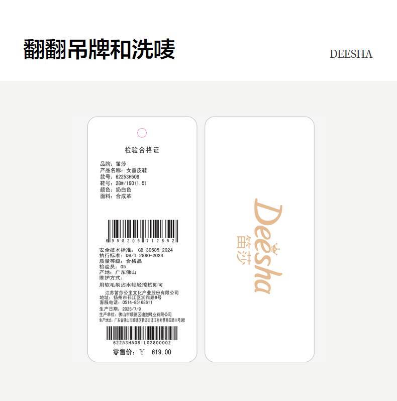 笛莎Deesha 女童童鞋2025秋新款浅口低帮皮鞋