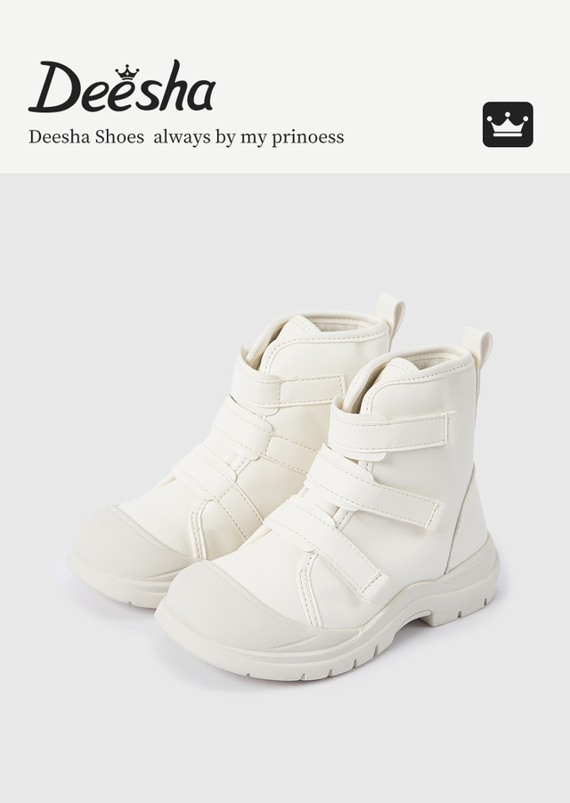 笛莎Deesha 女童童鞋2025冬季新款短筒加绒皮靴