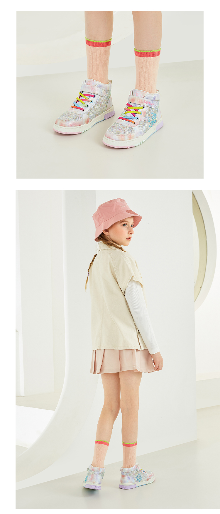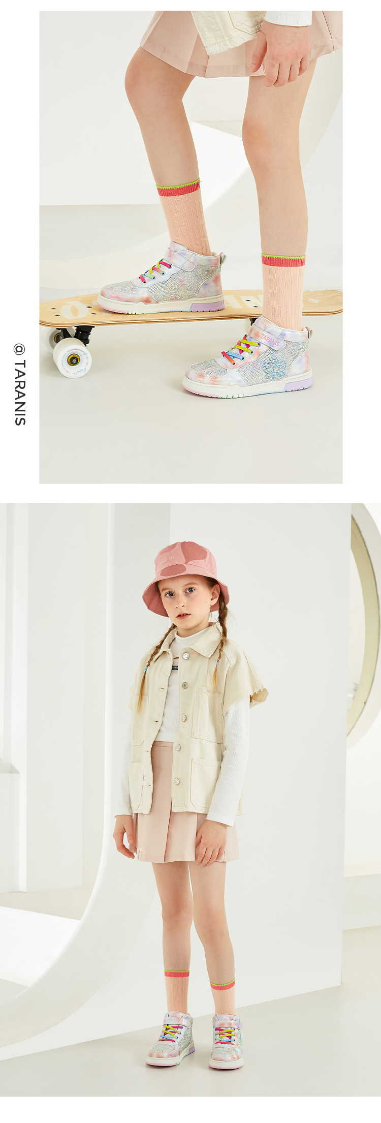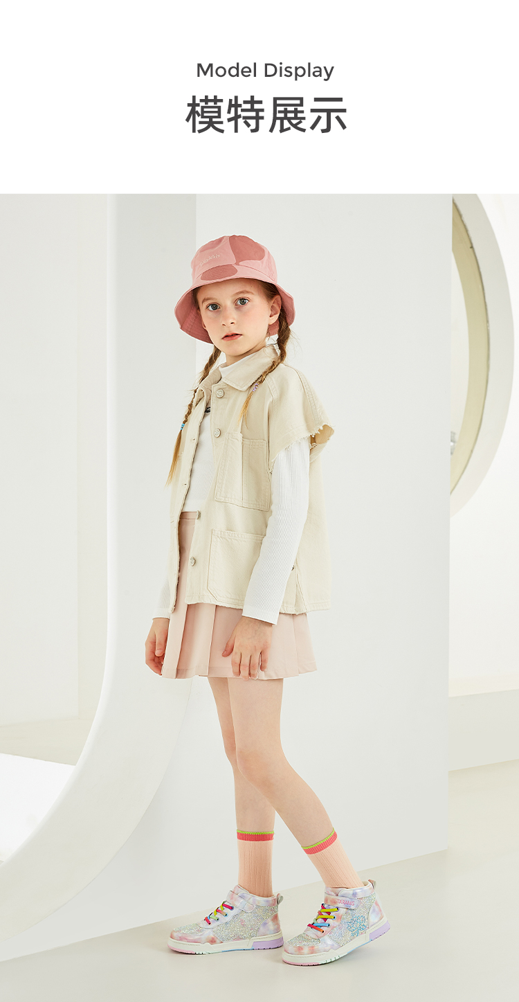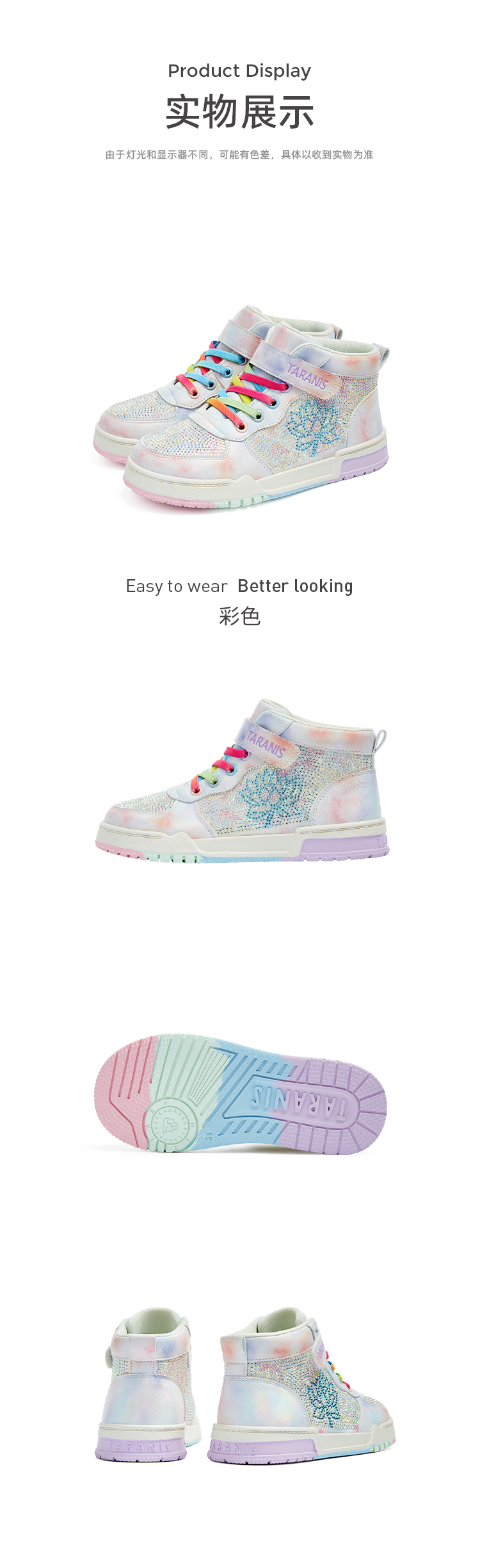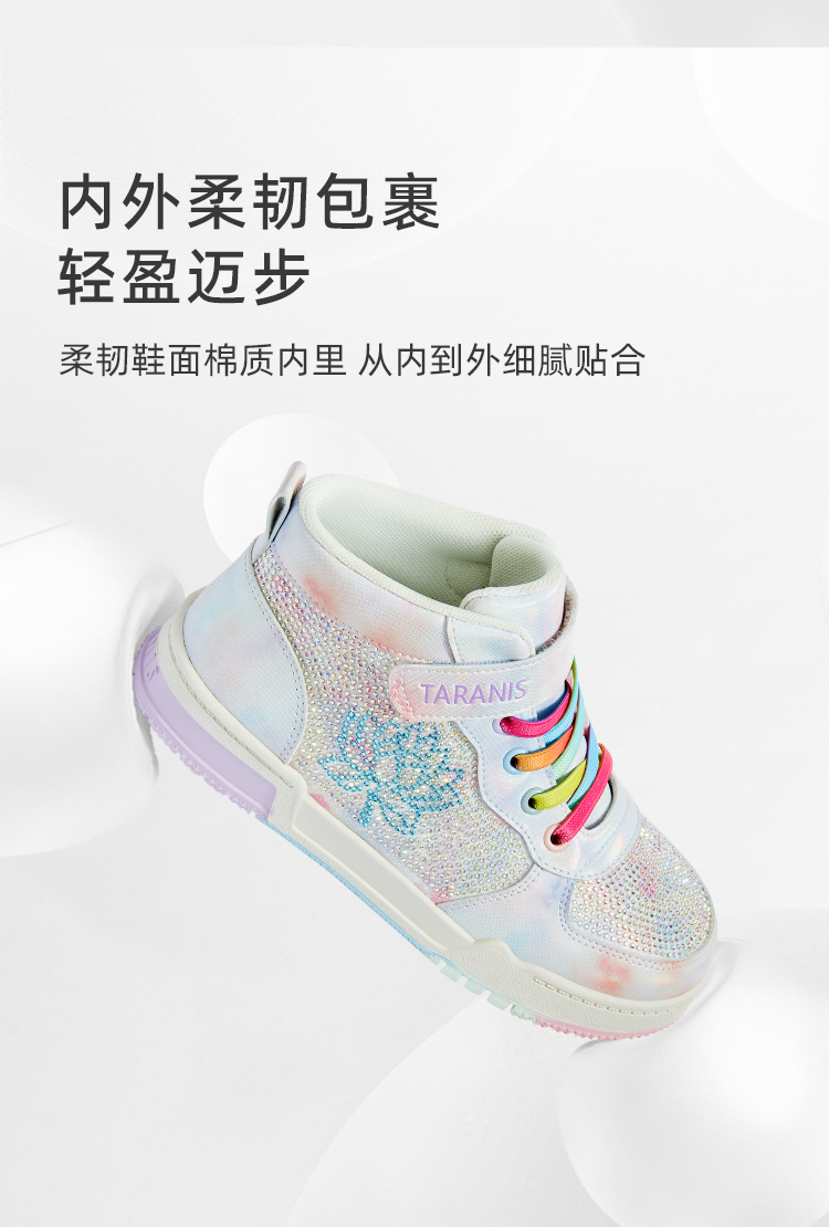 泰兰尼斯秋季中大童时尚闪亮烫钻女童板鞋T02D3C3190