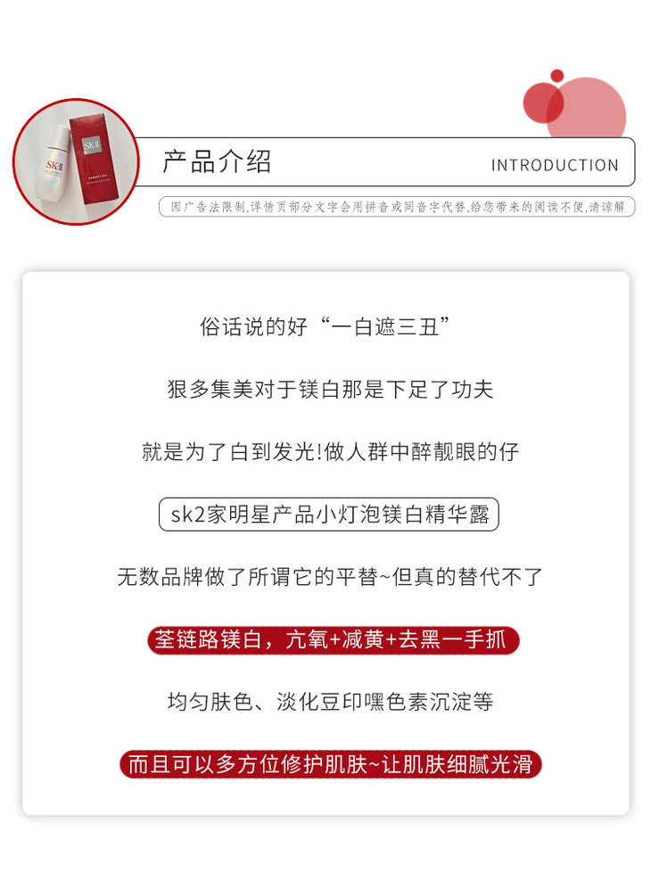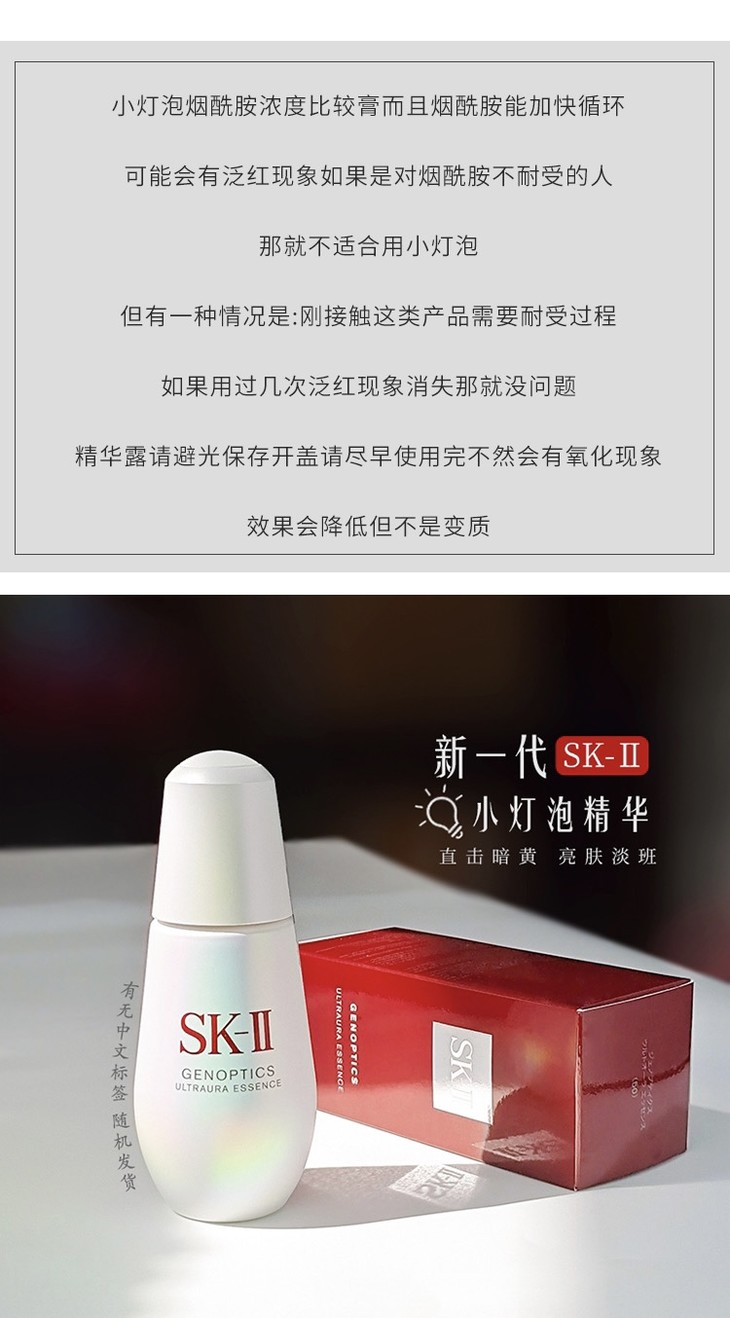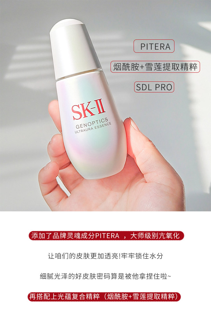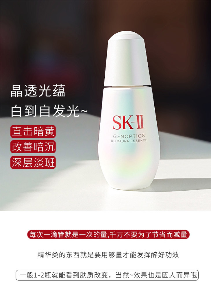 SK-II小灯泡精华作为远近闻名的网红美白精华,就算没用过也都听过它的大名,并且凭借着优秀的提亮、淡化痘印能力,这么多年过去了依旧在淡斑精华榜单上屹立不倒,小灯泡在精华届的地位相当于神仙水在化妆水届的地位。它能够迅速改善皮肤的健康状况、修复粗糙暗沉、提亮肤色,对色斑、肤色不均匀、黯黄、发红痘印、暗哑无光均有显著的改善效果。