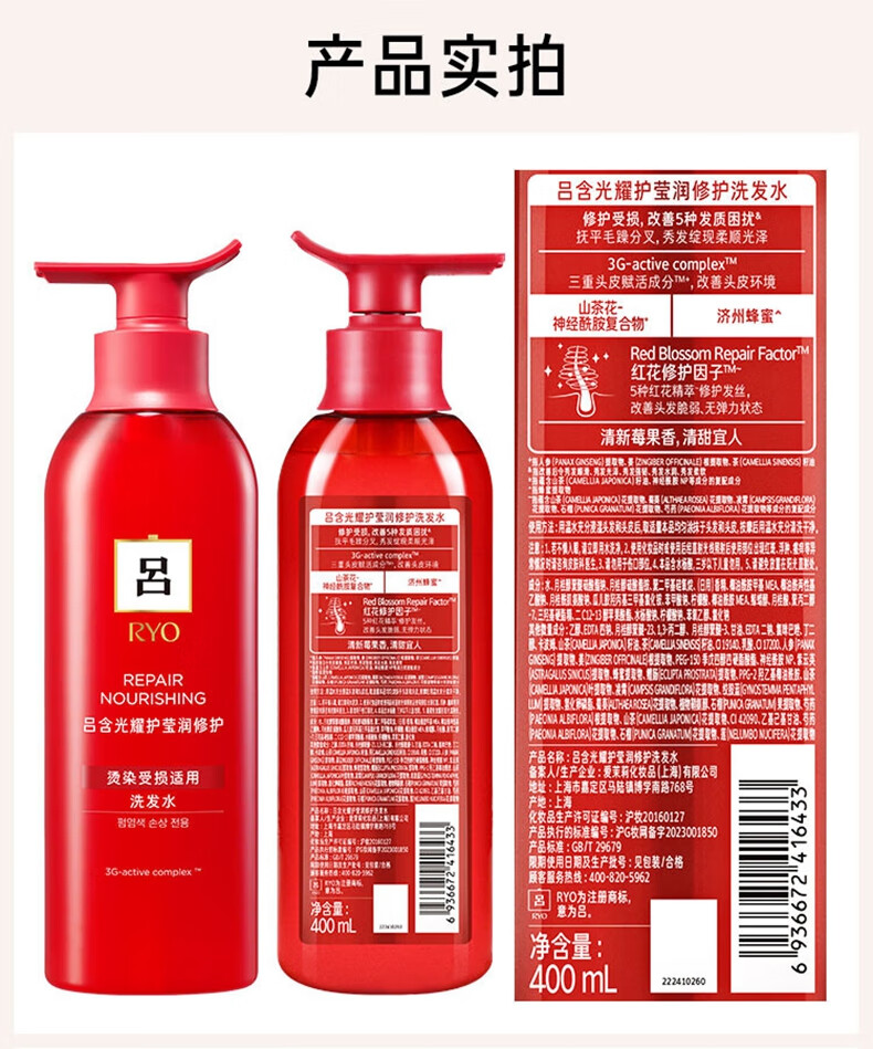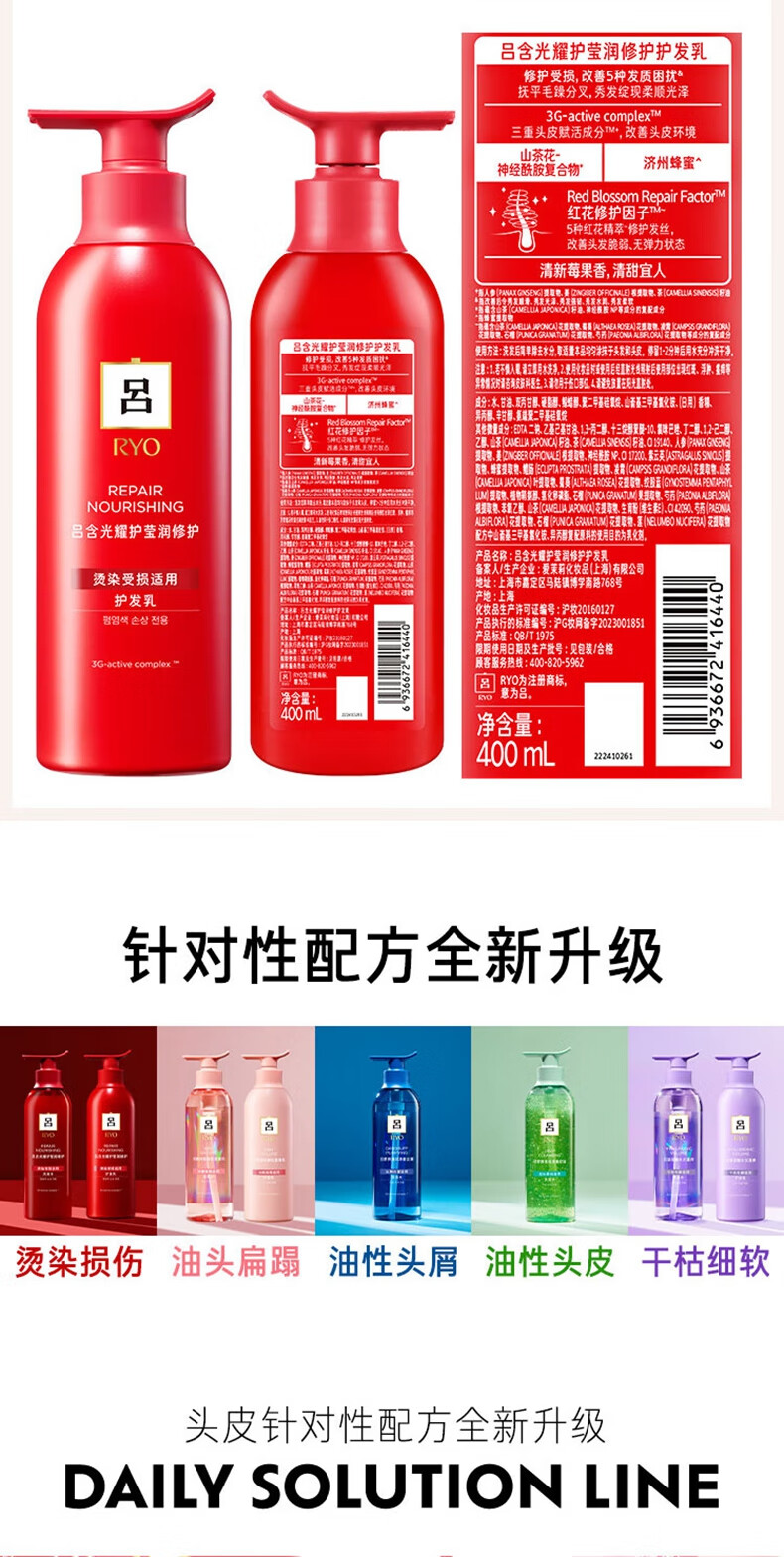 韩国吕含光耀护营润修护红吕特惠装洗发水400ml+护发素400ml/117579 草药精华 修复损伤