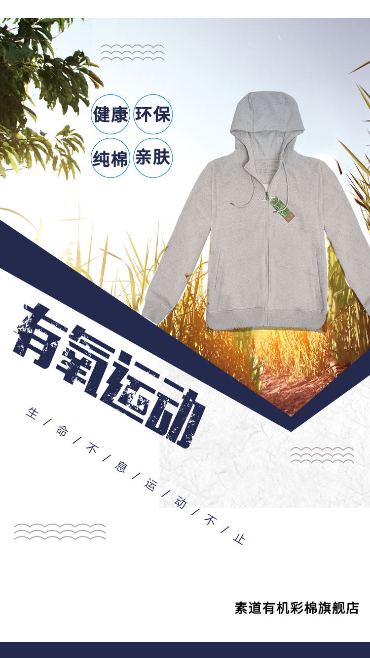 有机彩棉连帽卫衣 【跑步健身人群】包邮