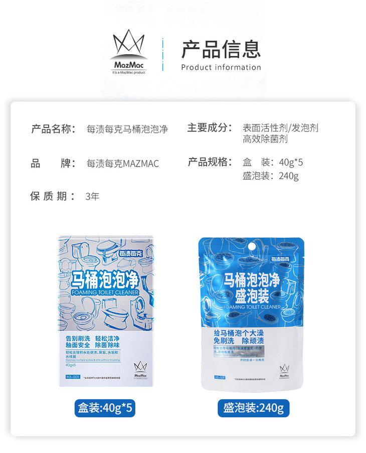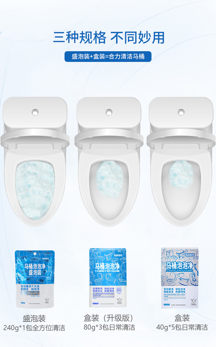 【十年尿垢一泡净】每渍每克马桶泡泡净 快速发泡 无需刷洗 瓦解顽渍 呵护马桶釉面 无刺鼻气味 让马桶清洁轻松便捷 日用装 40g*5包/盒 盛泡装240g/袋