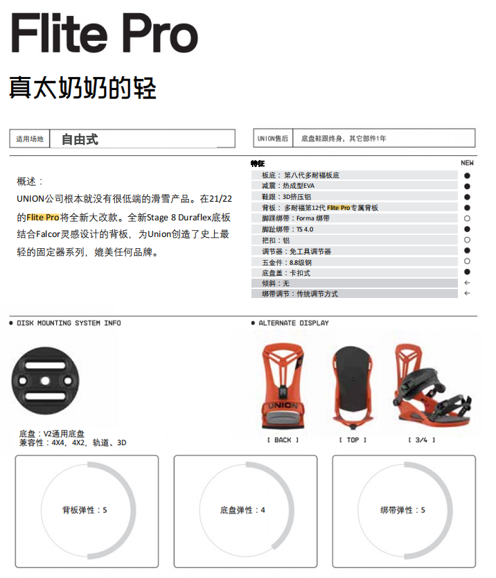 Union 21-22 新款 Flite Pro 男款固定器 蓝色