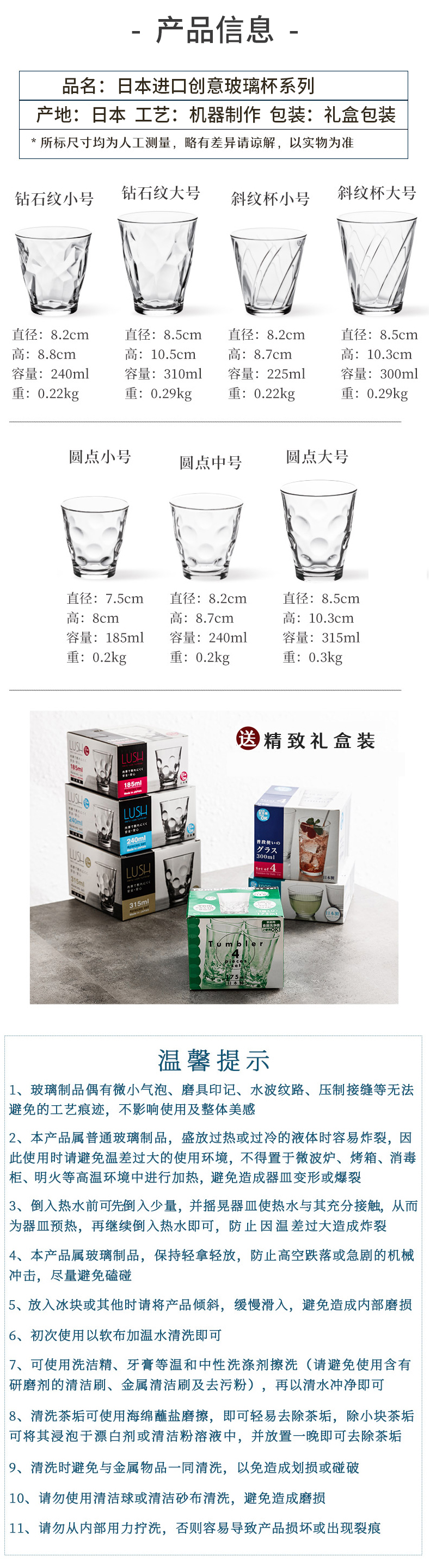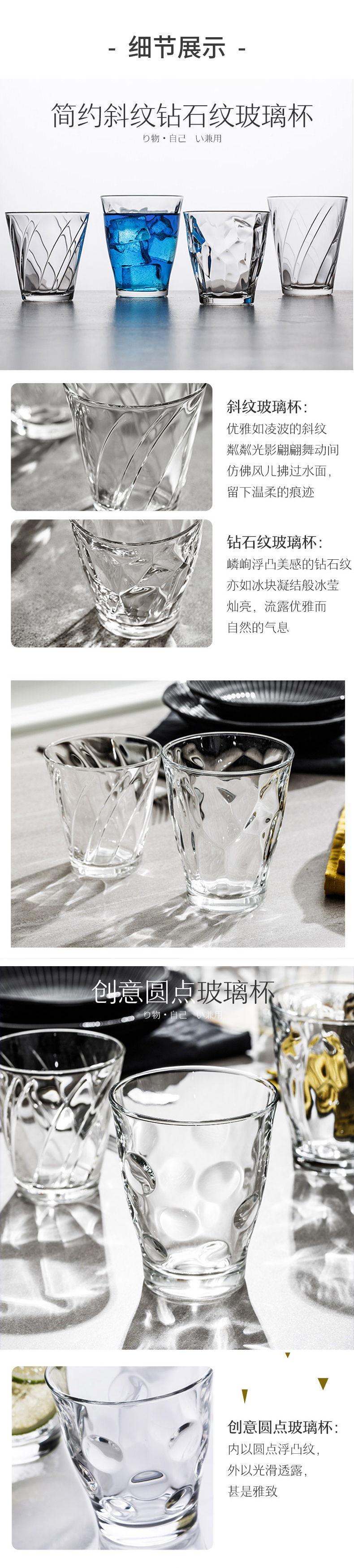 EROSHEBO艾罗赫柏日本进口创意纹玻璃杯家用果汁杯牛奶杯泡茶杯子水杯
