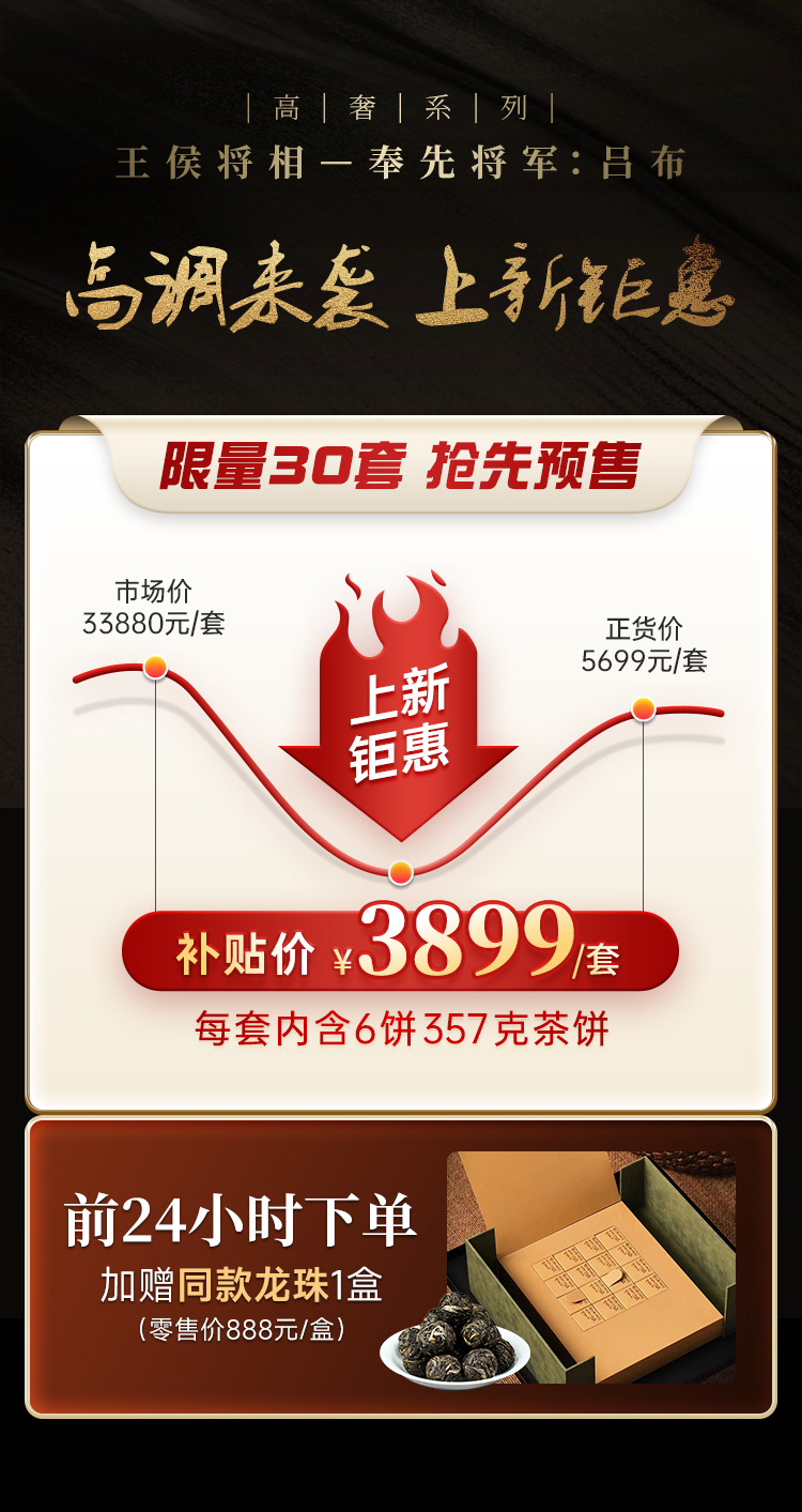【王侯将相-奉先将军:吕布】2025年升级版傲世来袭 一芽一叶成就一片茶饼 比冰岛老寨单株更奢侈更豪华!一套内含6饼,拍5套发6套
