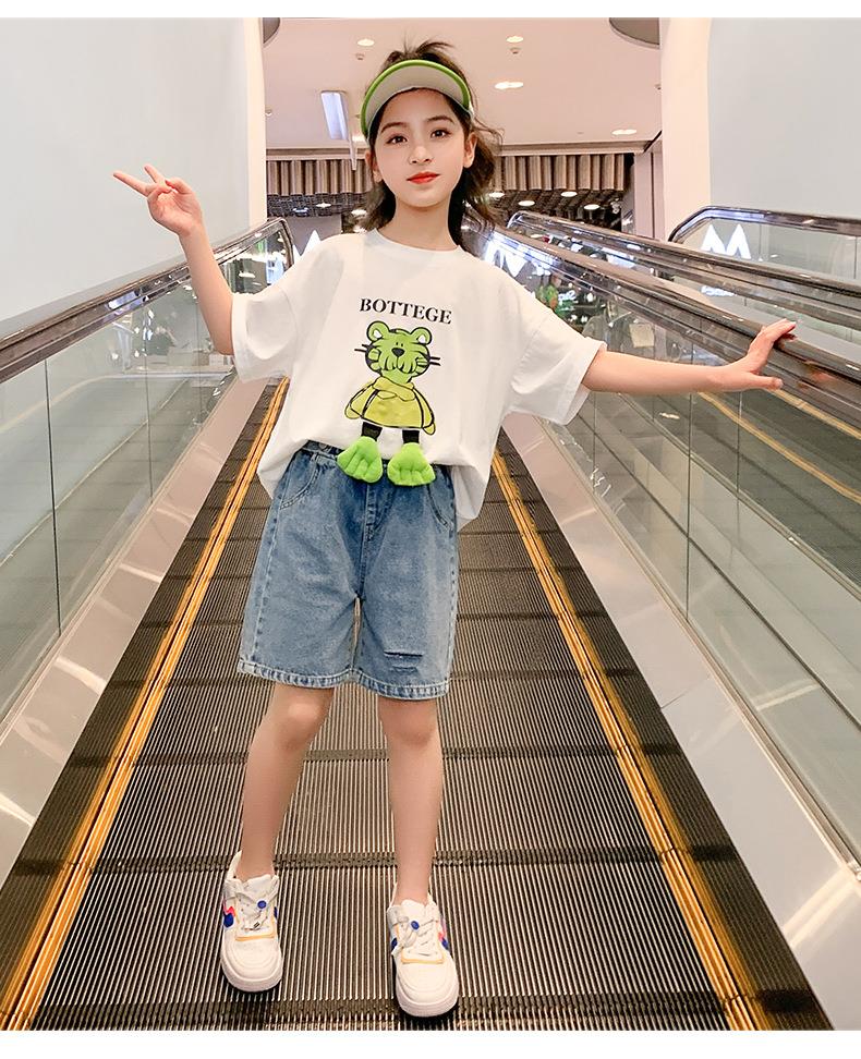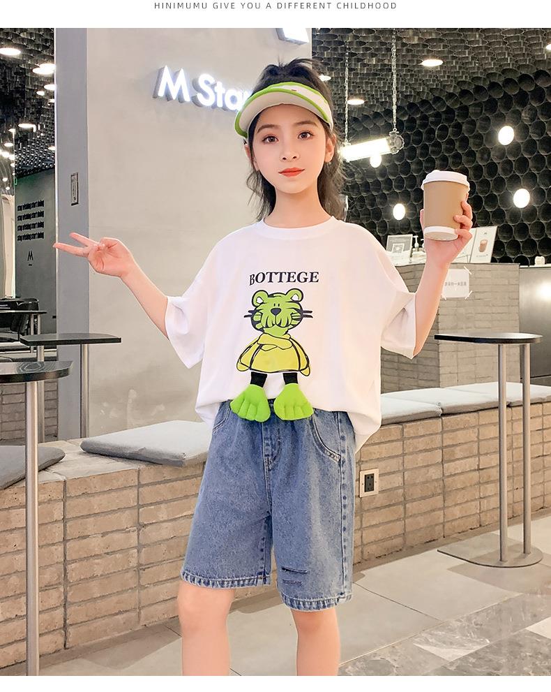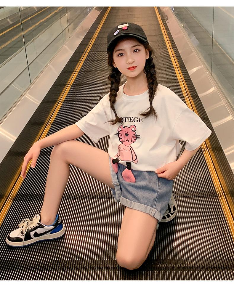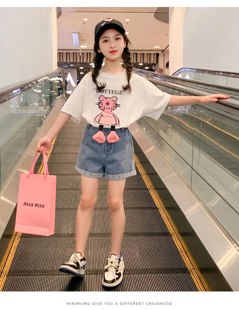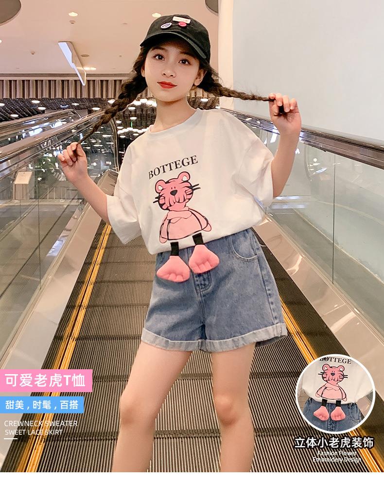 女童短袖t恤夏季纯棉2023新款洋气童装大童女孩儿童白色上衣夏装