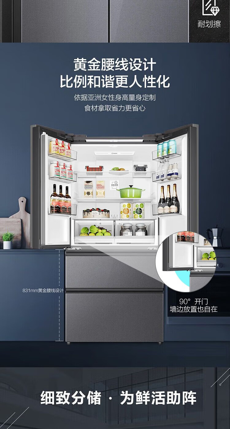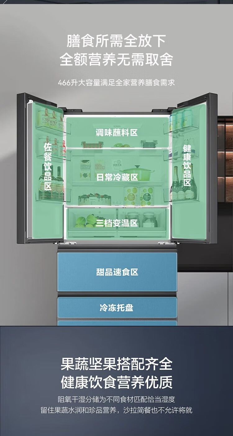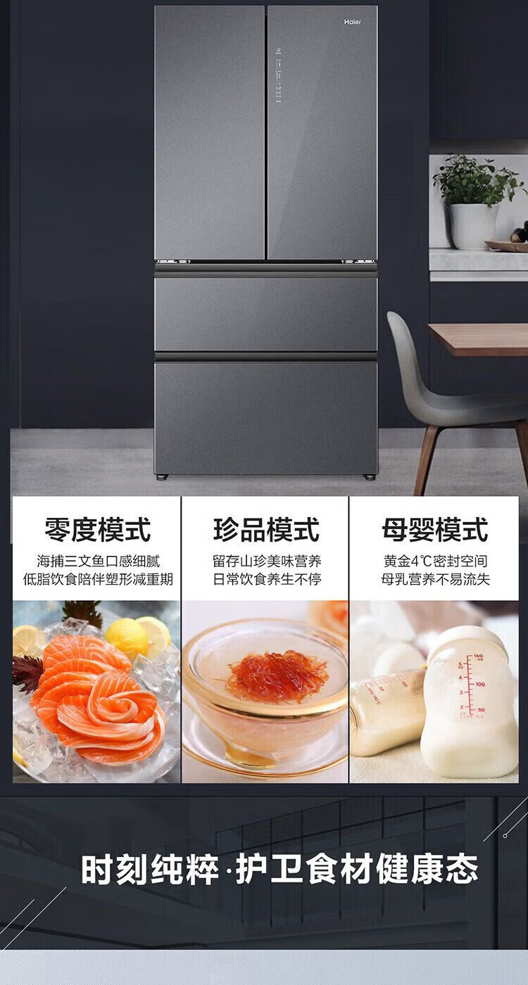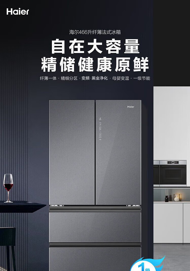 海尔(Haier)冰箱多门家用360°风冷无霜变频黑金净化466升大容量电冰箱BCD-466WGHFDEDS1