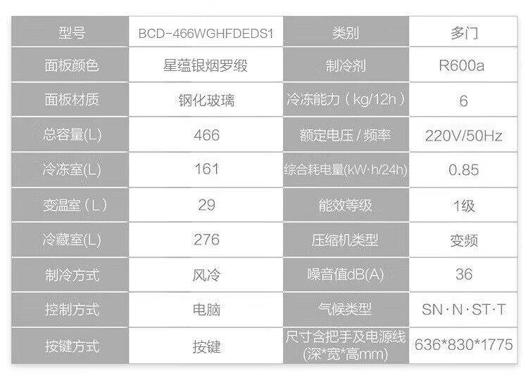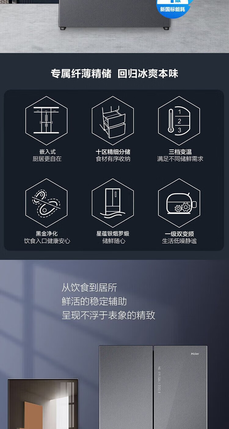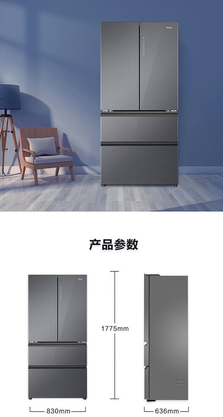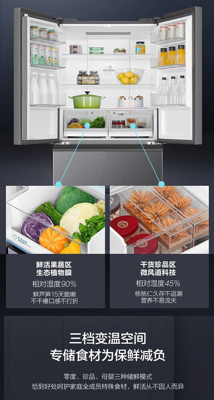 海尔(Haier)冰箱多门家用360°风冷无霜变频黑金净化466升大容量电冰箱BCD-466WGHFDEDS1