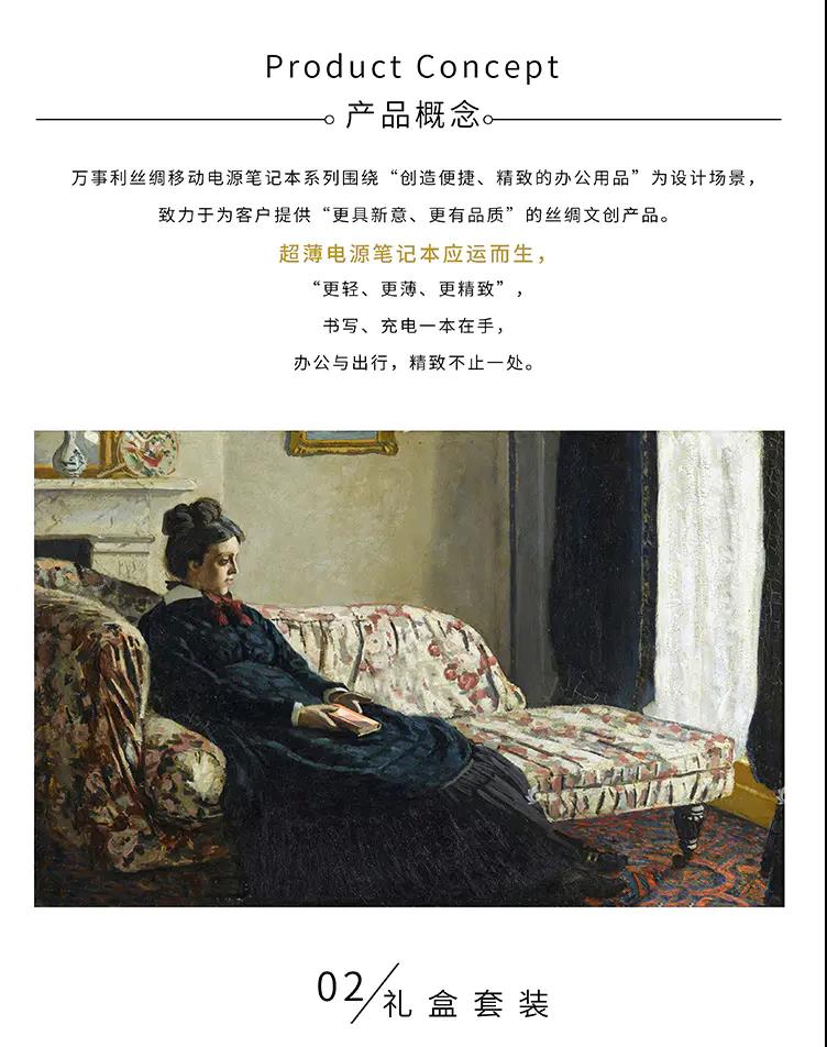 万事利-莫奈印象 双面印花中方巾/充电笔记本 100%桑蚕丝