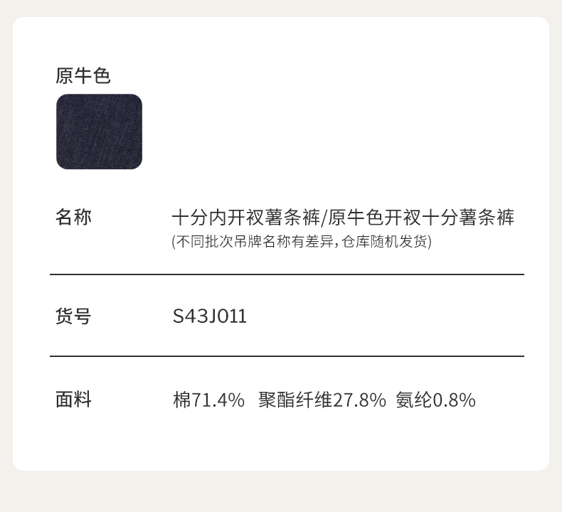【经典色薯条裤】simplepieces 春季款SPS牛仔女中高腰微弹直筒裤