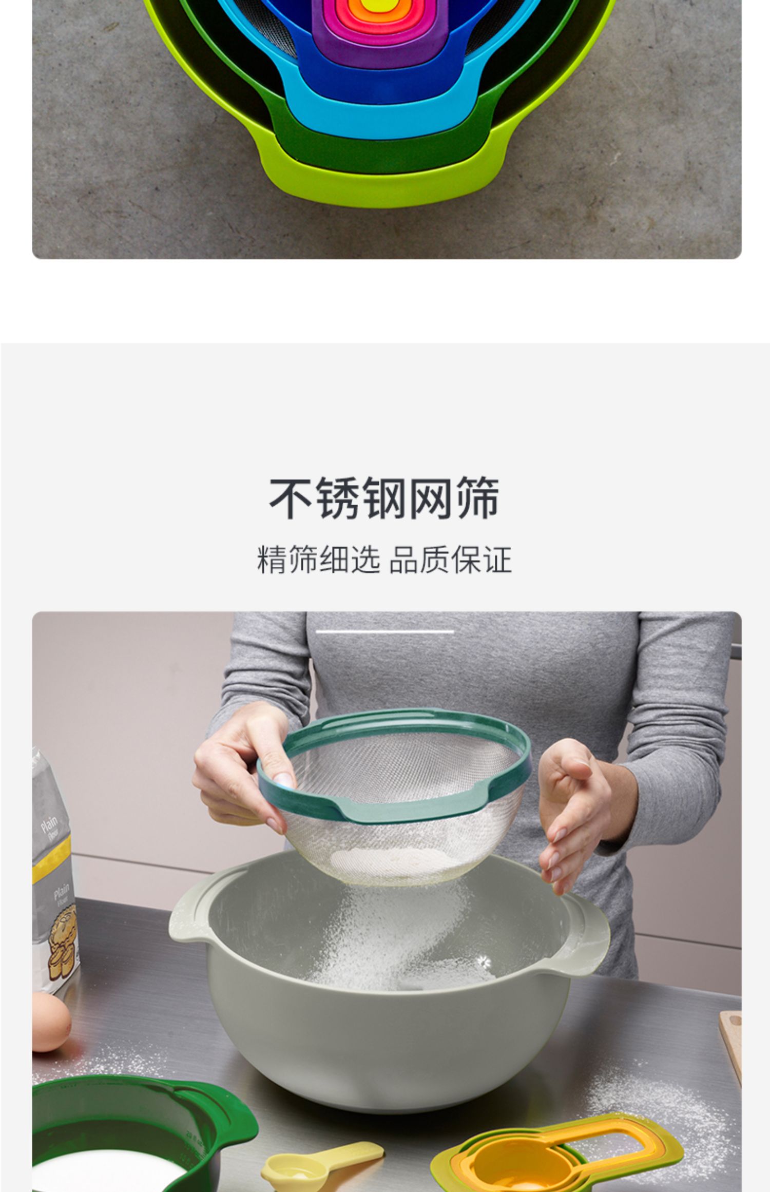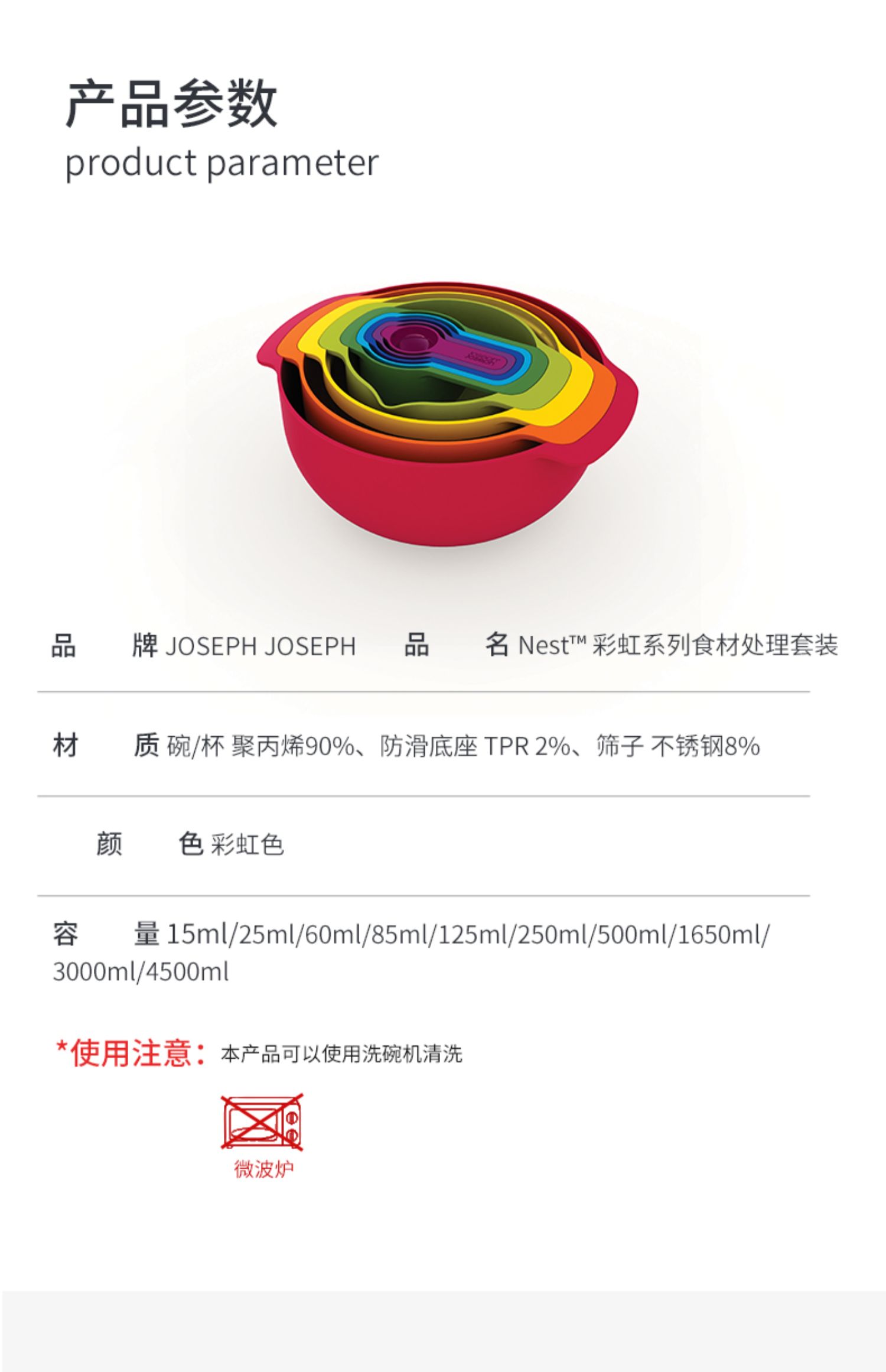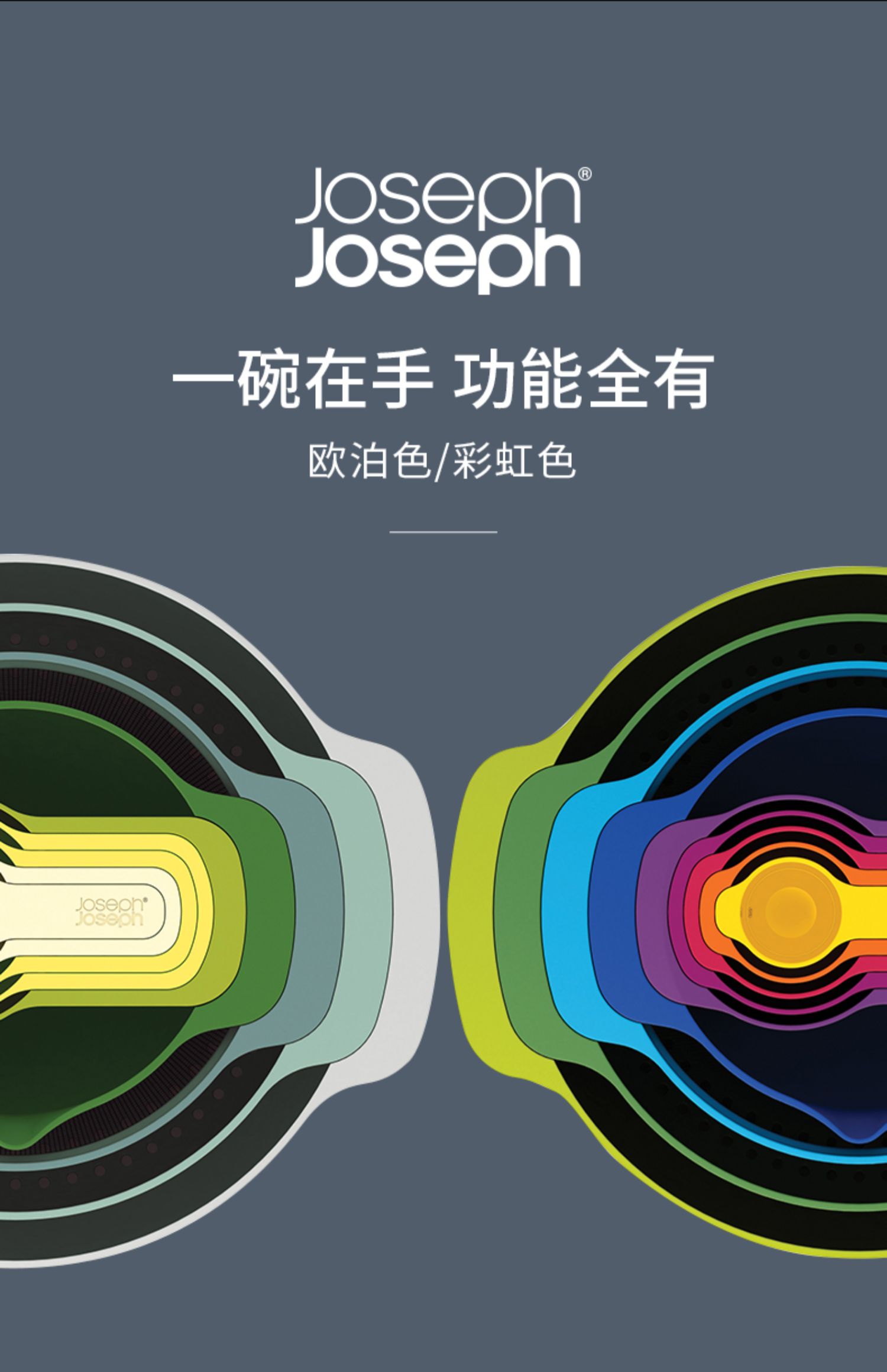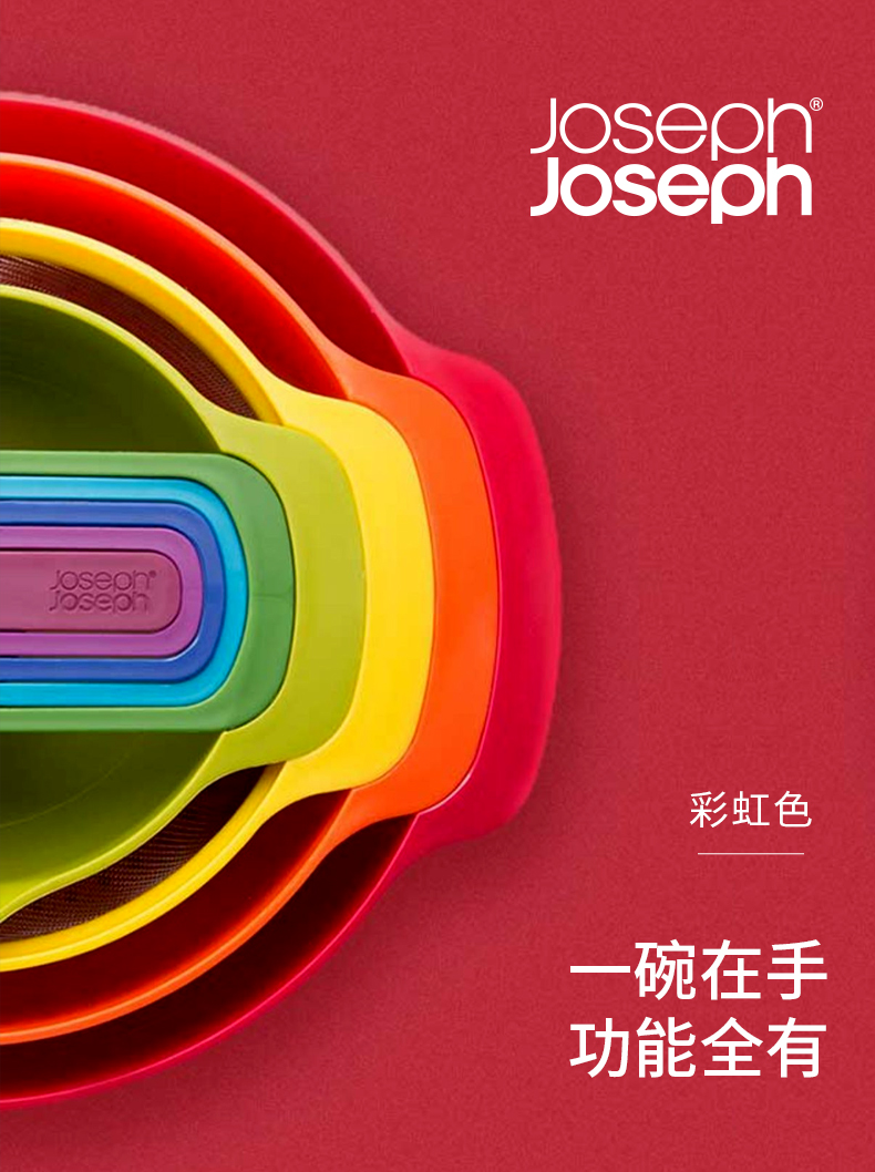 英国Joseph Joseph 彩虹套碗盆9件套烘焙碗 沥水洗菜篮 乔迁礼物