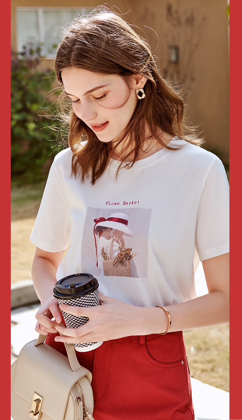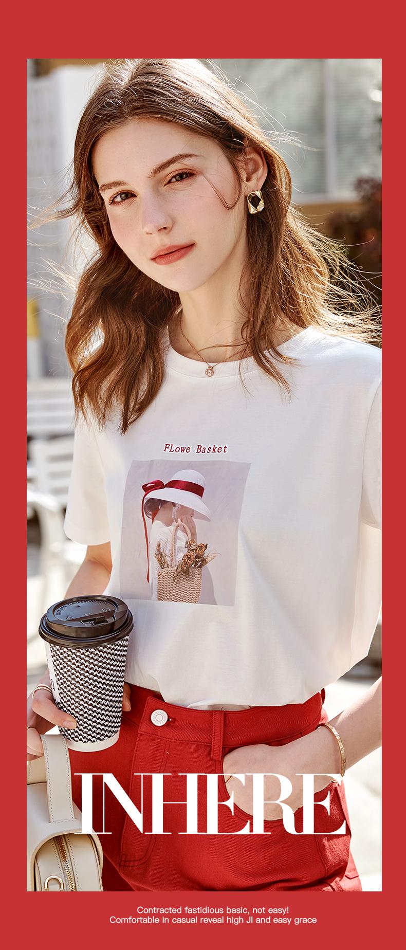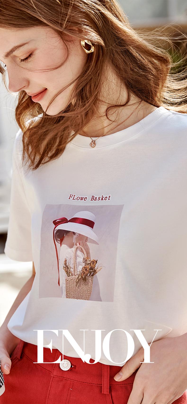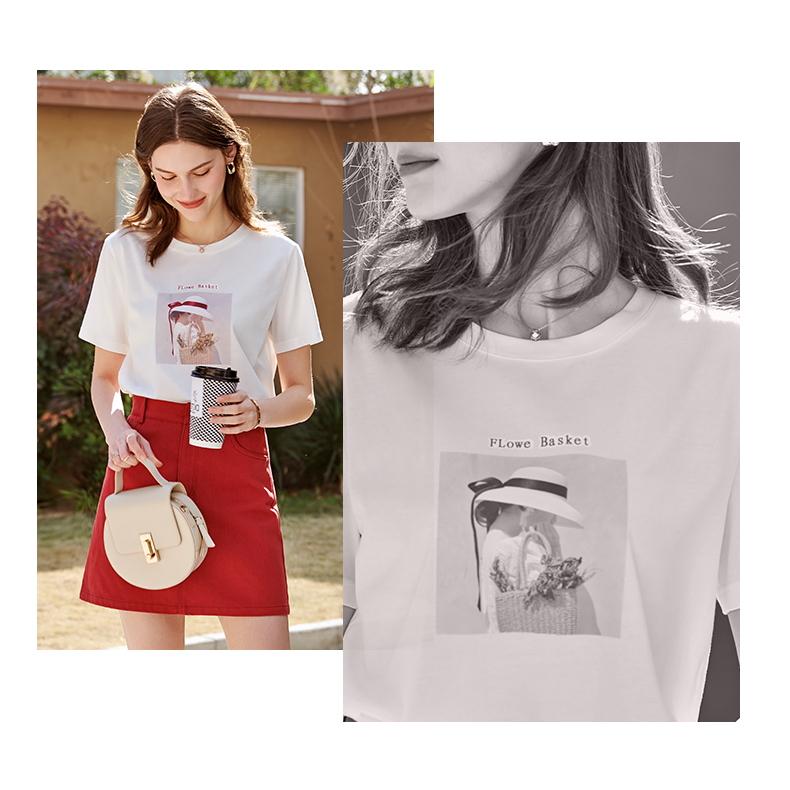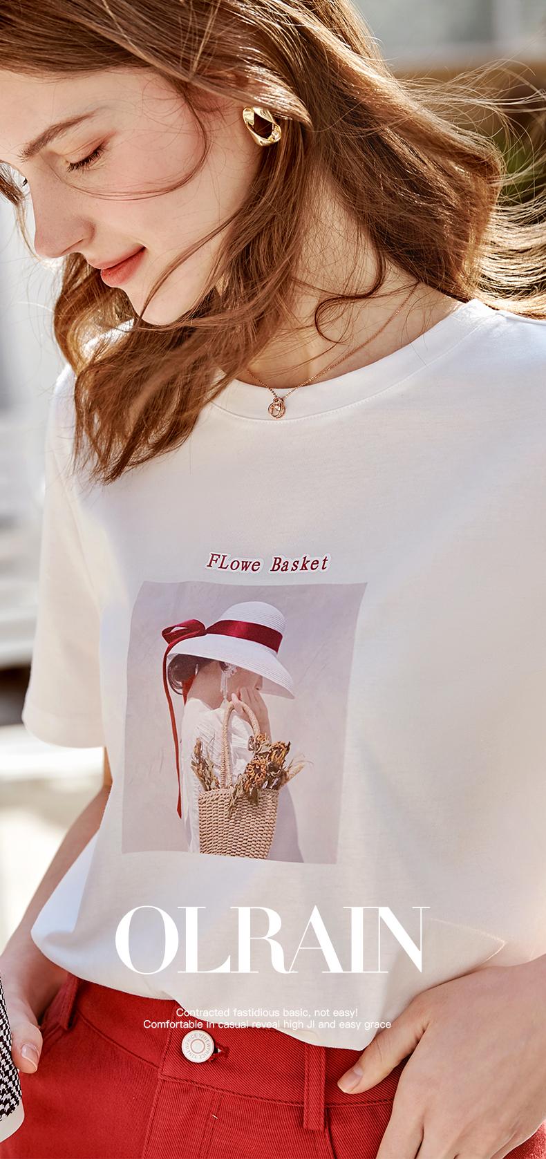 欧芮儿白色短袖T恤女2021春夏新款圆领个性印花宽松休闲内搭上衣