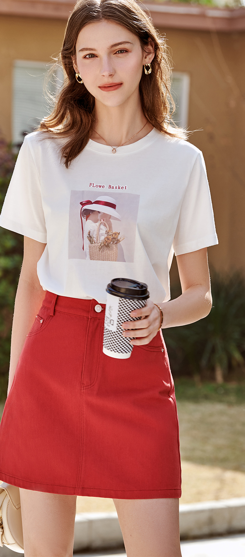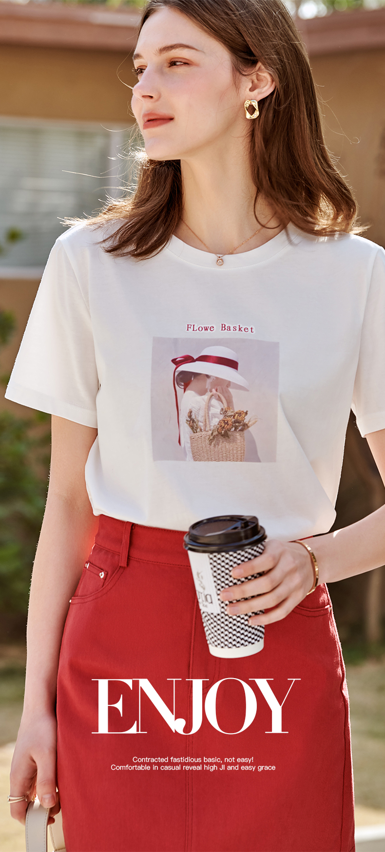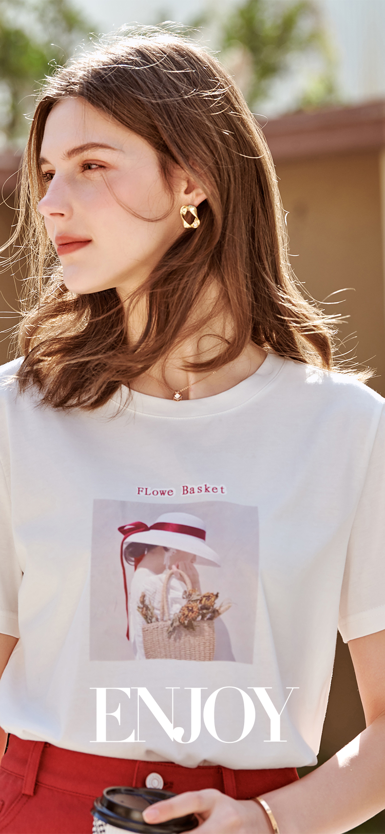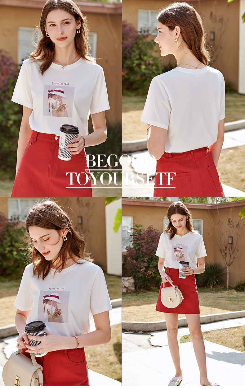 欧芮儿白色短袖T恤女2021春夏新款圆领个性印花宽松休闲内搭上衣