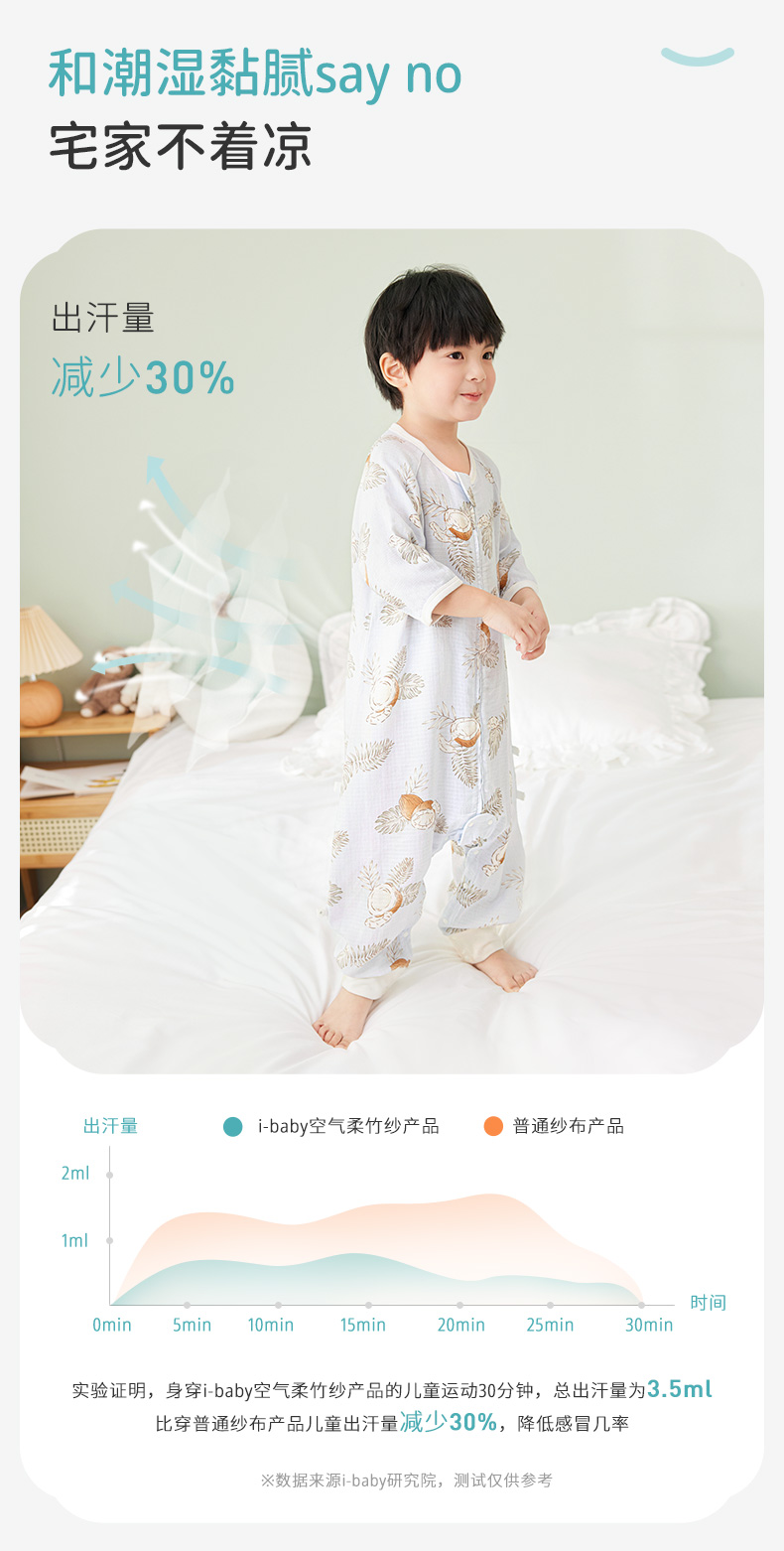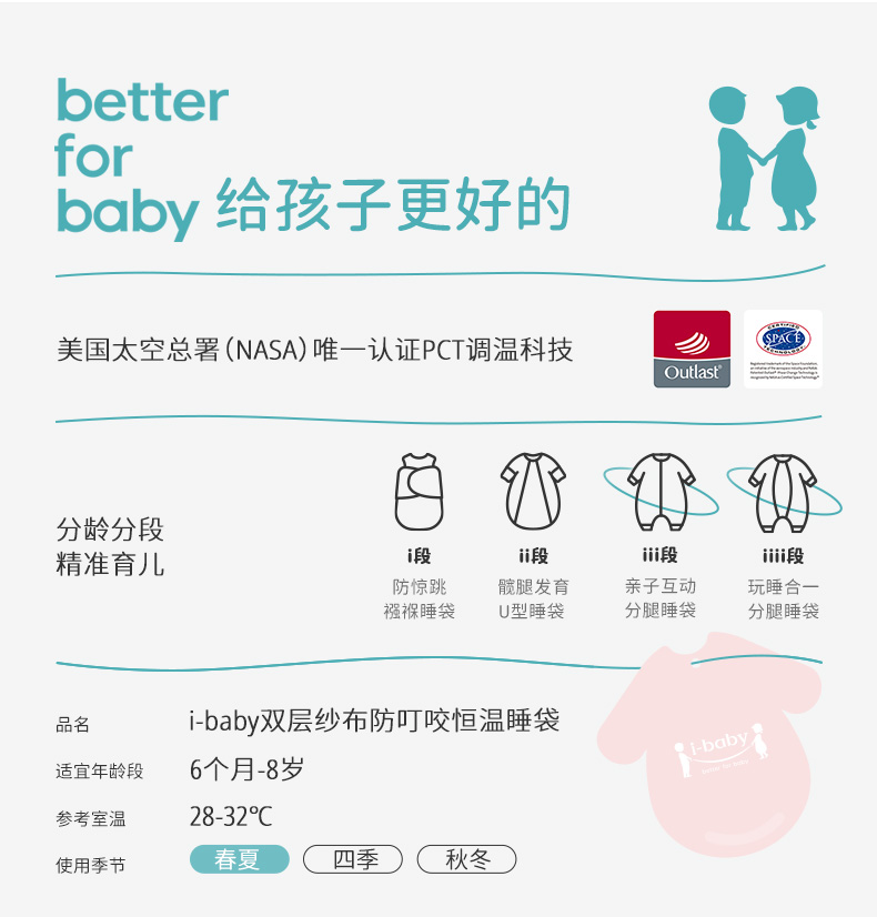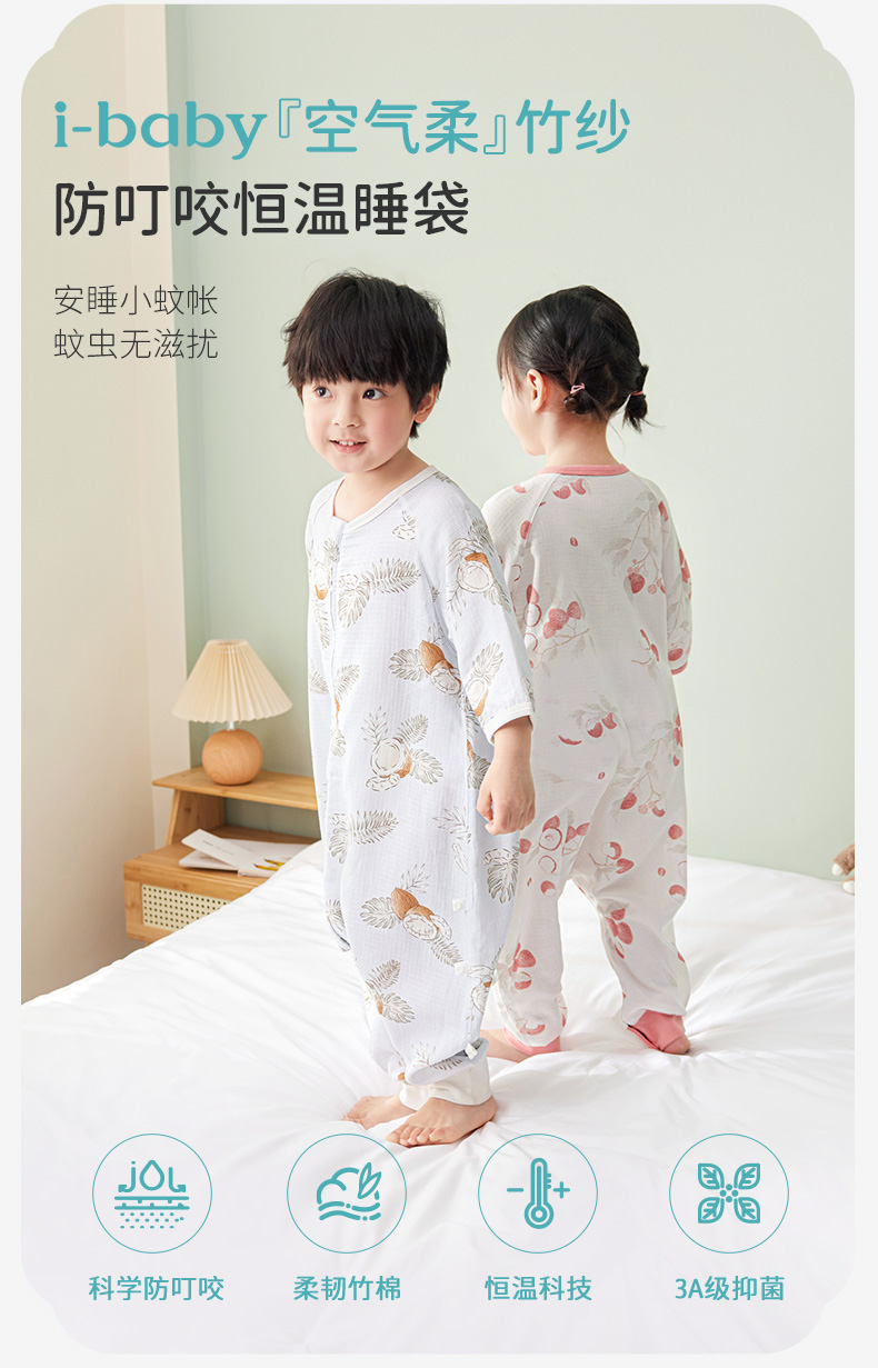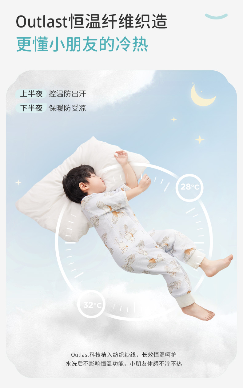 i-baby/英伦宝贝 outlast诗画长安系列春夏双层纱布防叮咬恒温分腿睡袋宝宝防踢被春夏睡衣儿童分腿睡袋