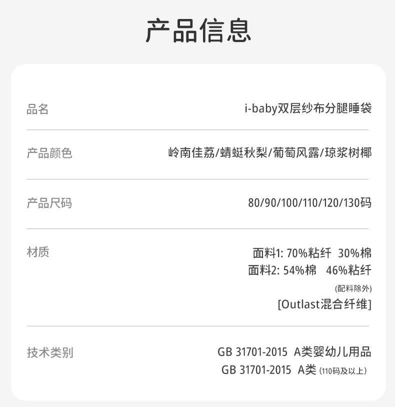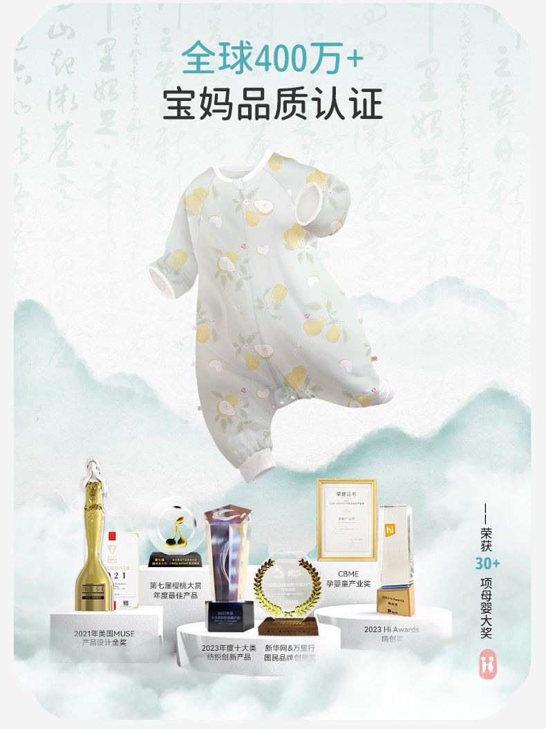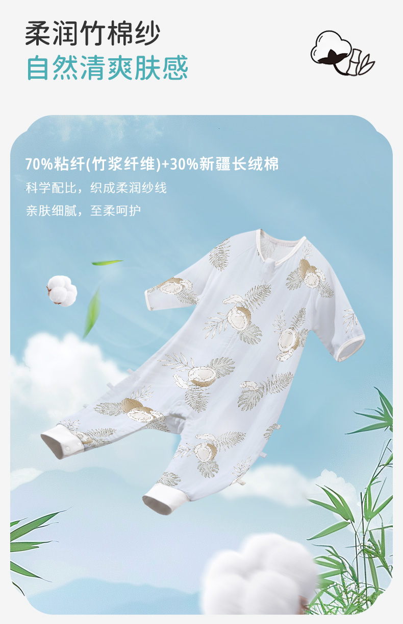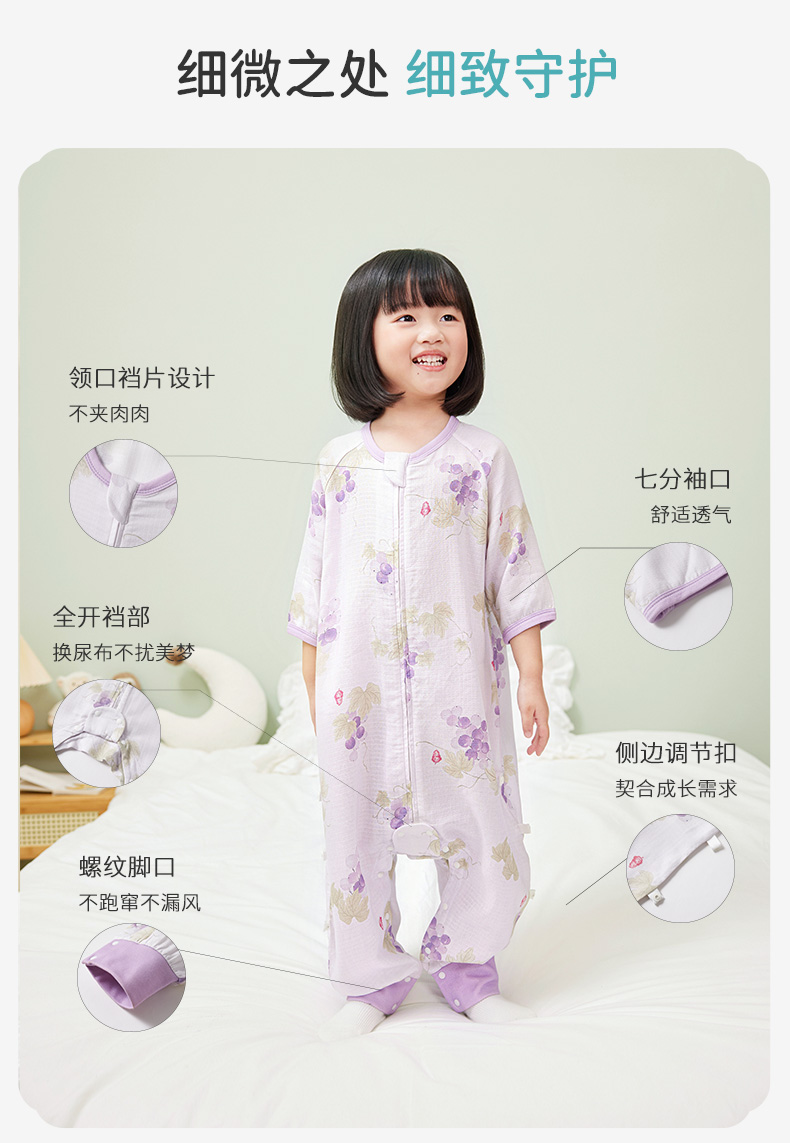 i-baby/英伦宝贝 outlast诗画长安系列春夏双层纱布防叮咬恒温分腿睡袋宝宝防踢被春夏睡衣儿童分腿睡袋