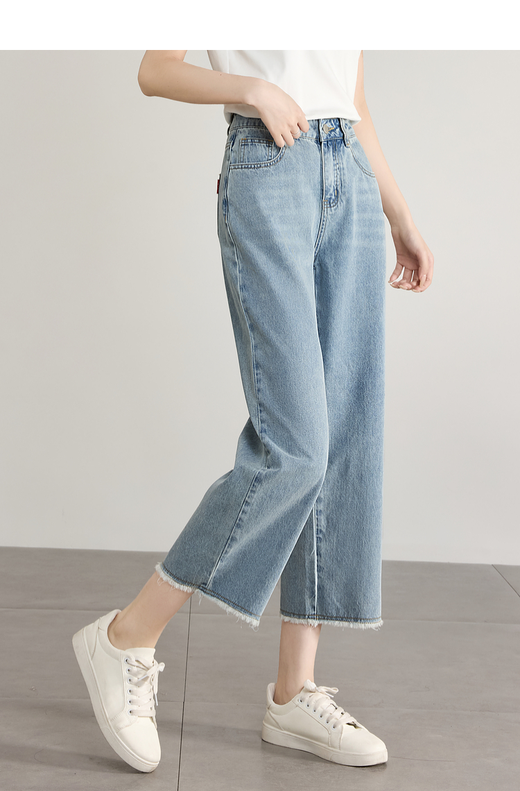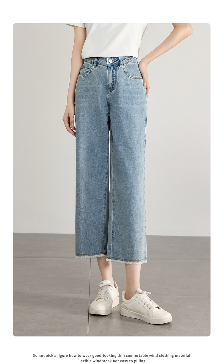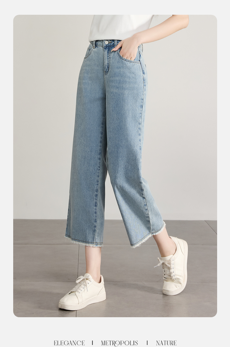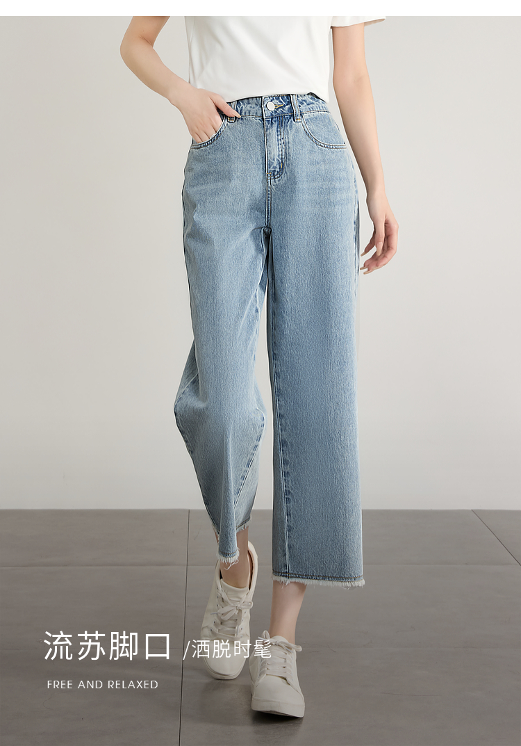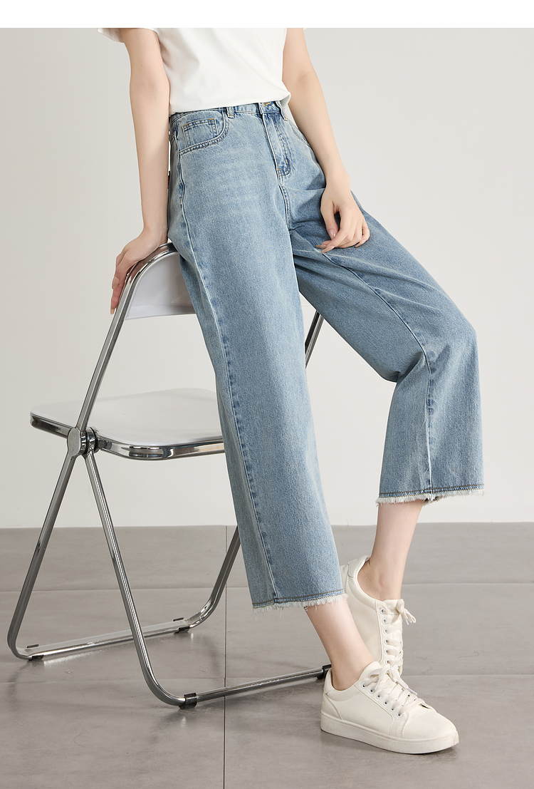 【专属特价】熙世界八分阔腿牛仔裤夏2025新款薄款时髦复古宽松直筒毛边裤子