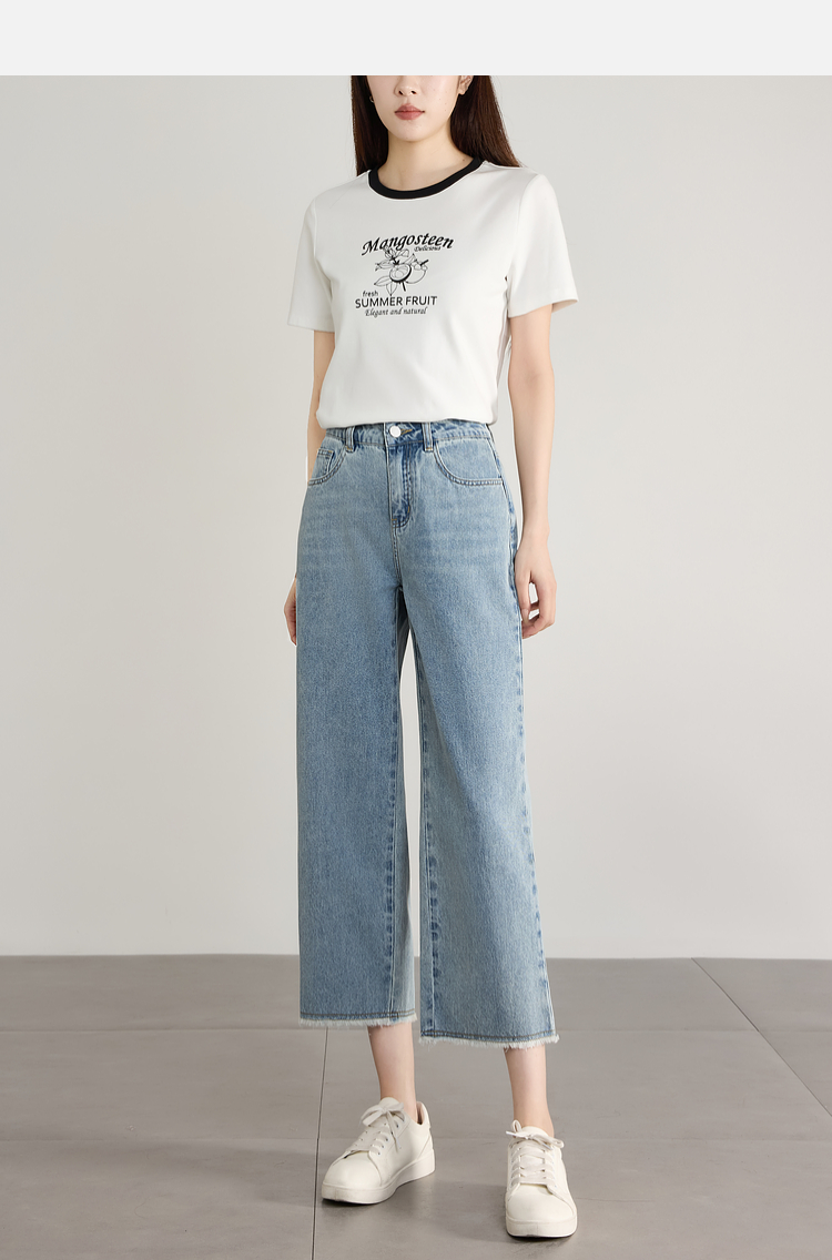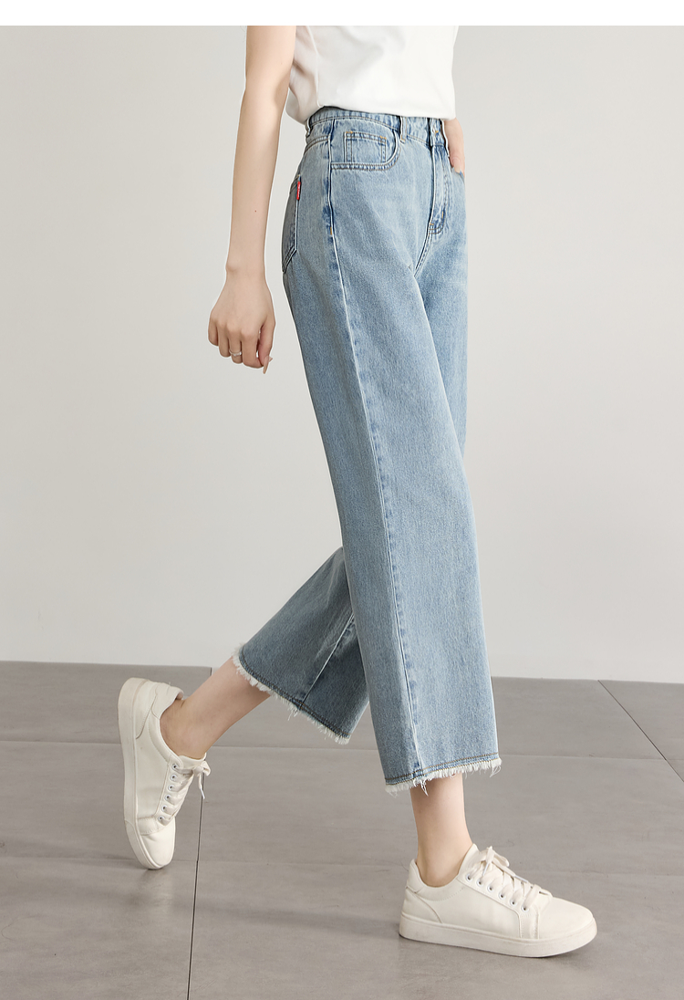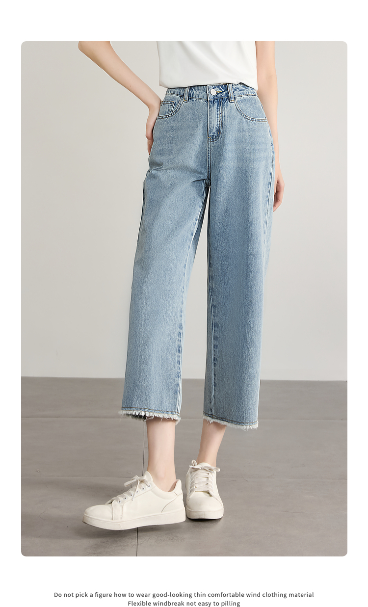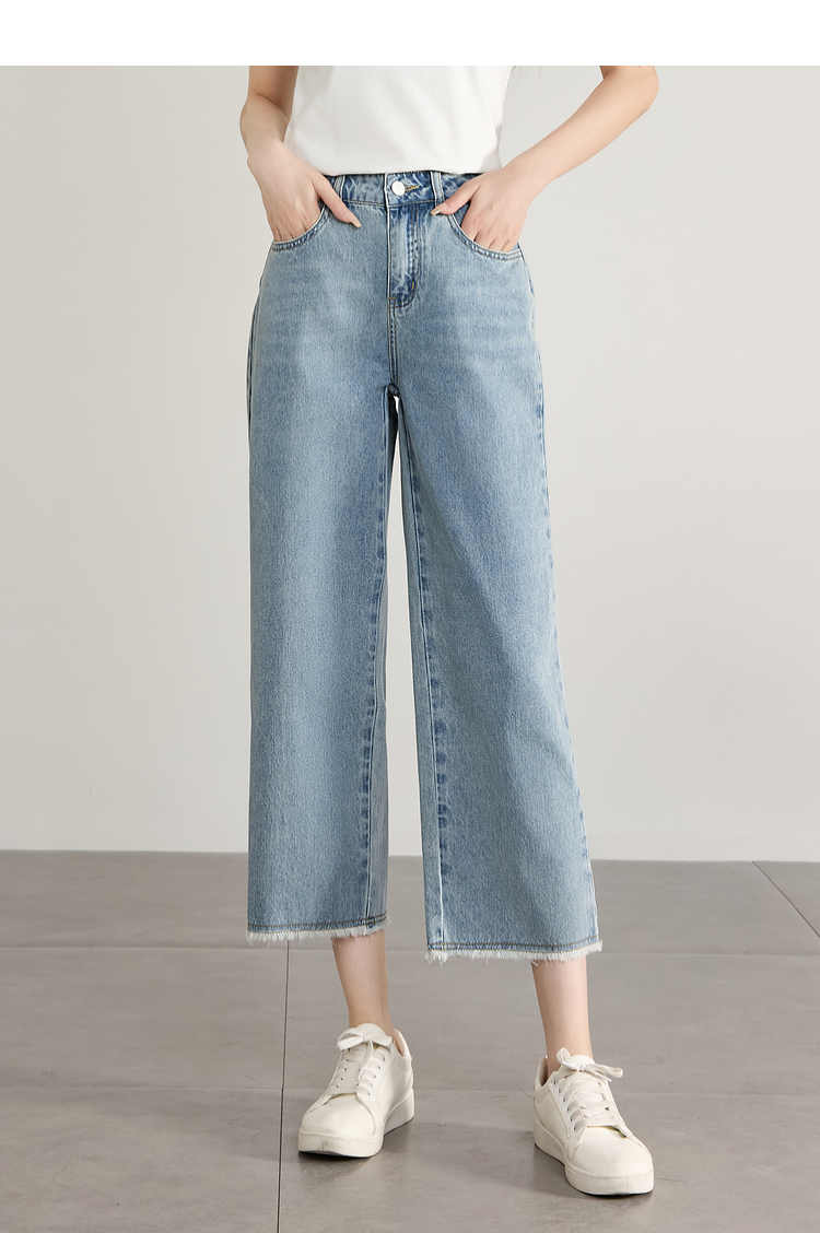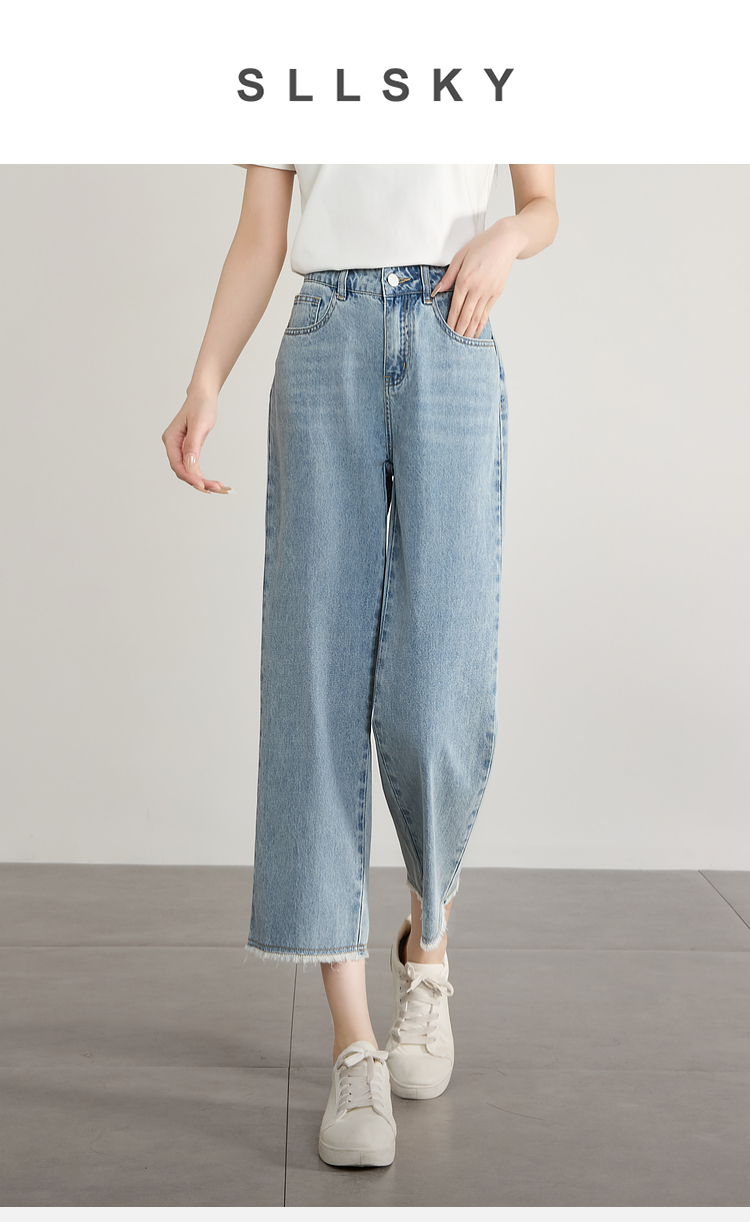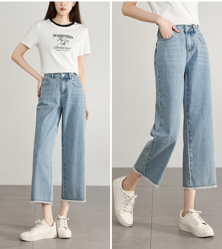 【专属特价】熙世界八分阔腿牛仔裤夏2025新款薄款时髦复古宽松直筒毛边裤子