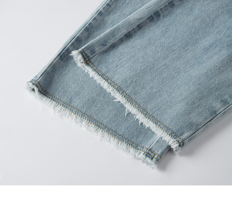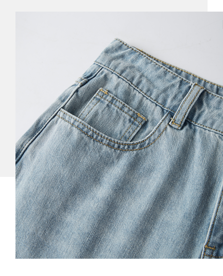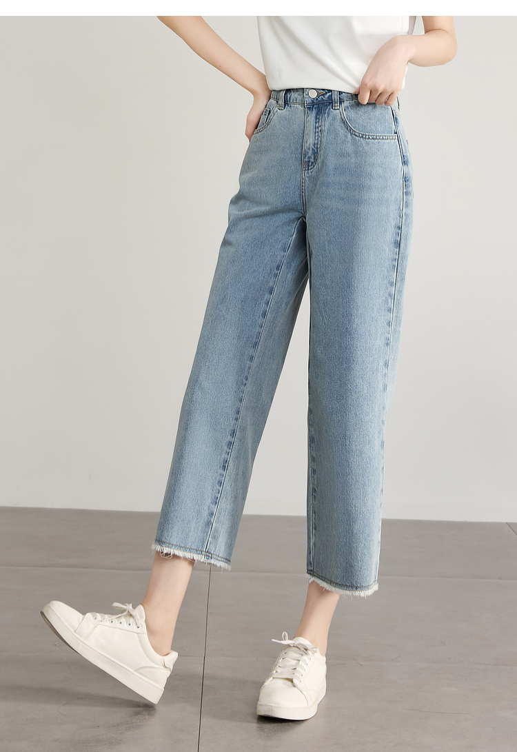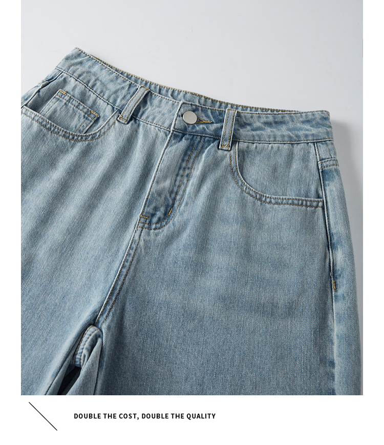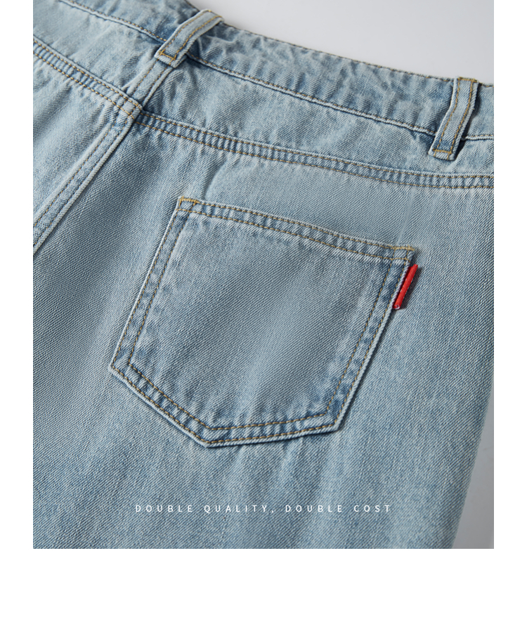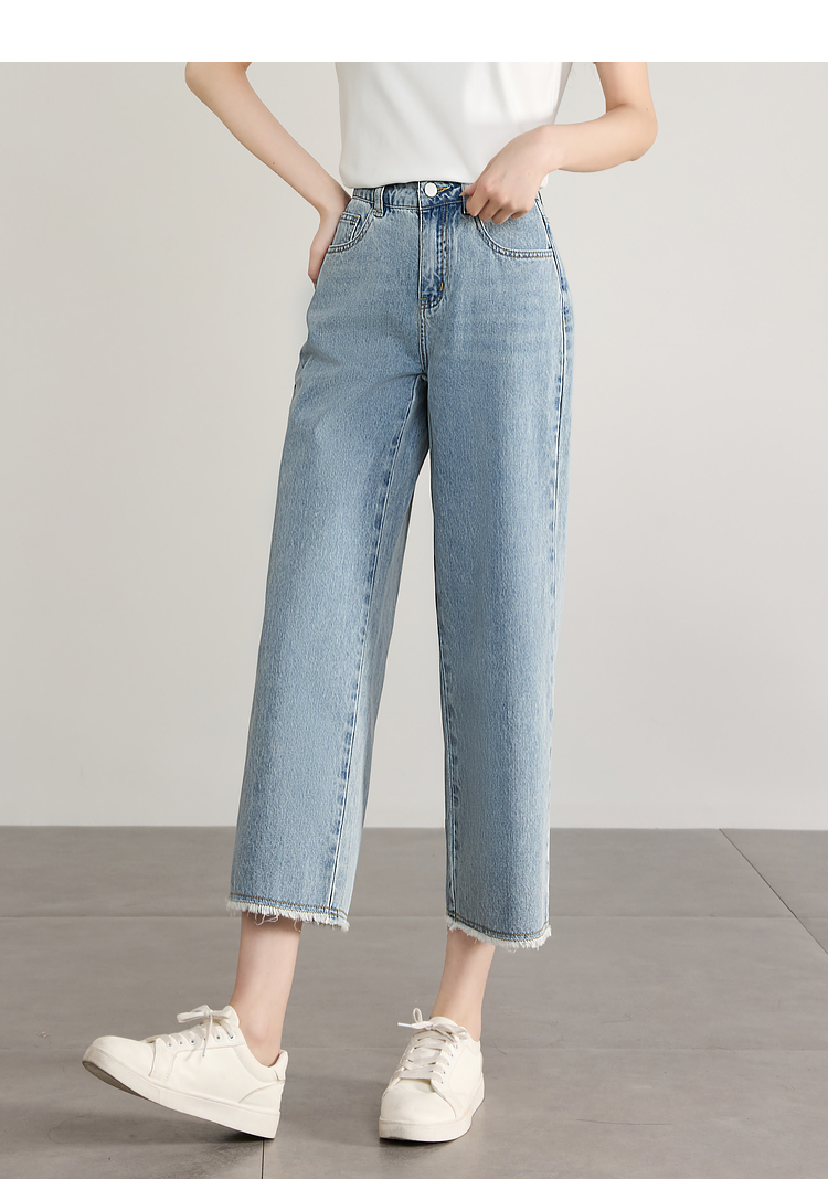 【专属特价】熙世界八分阔腿牛仔裤夏2025新款薄款时髦复古宽松直筒毛边裤子