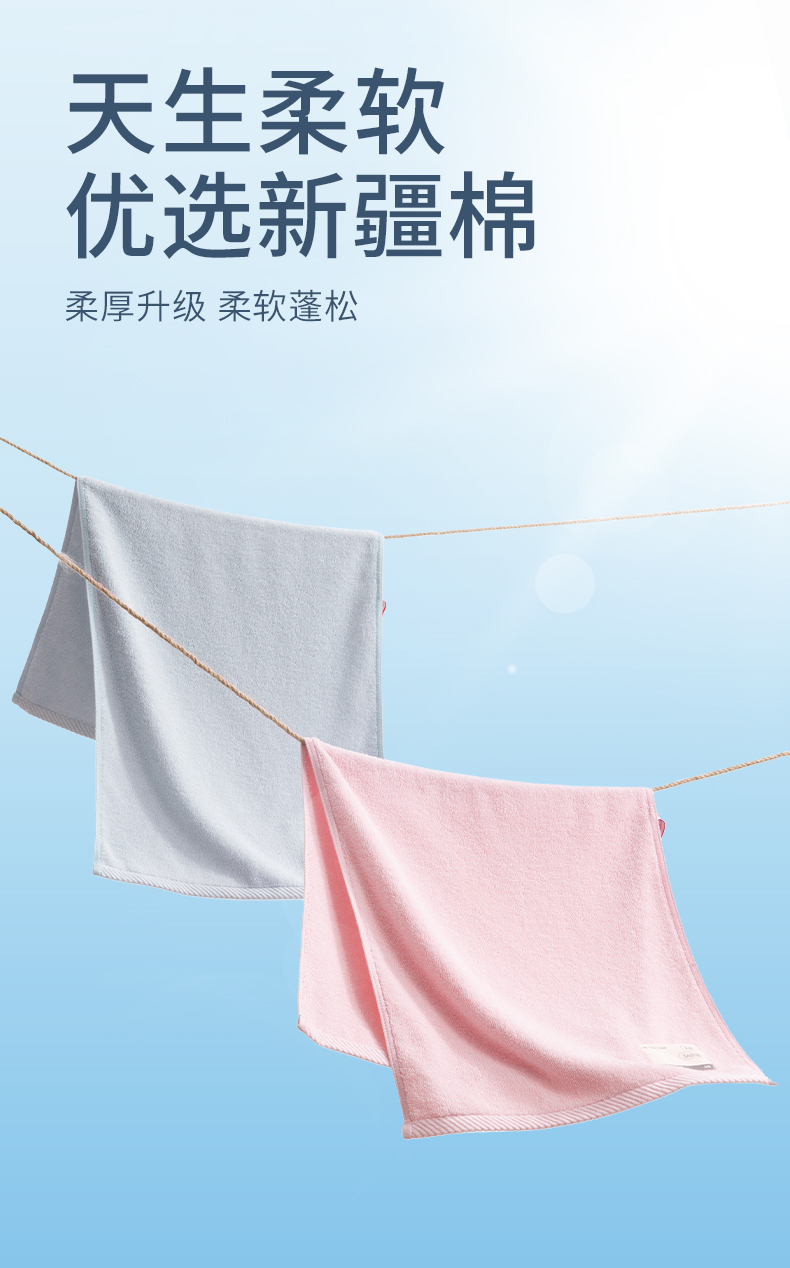 【棉疆溯源】洁丽雅抑菌全棉毛巾柔软吸水不掉毛亲肤成人家用洗脸巾