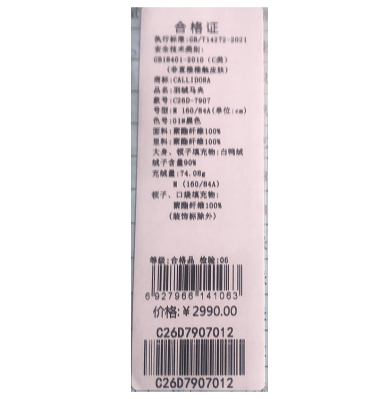 卡莉朵拉羽绒服C26D7907