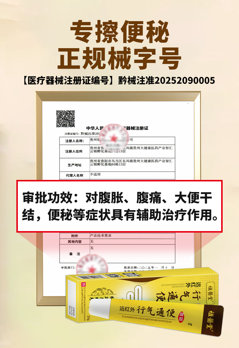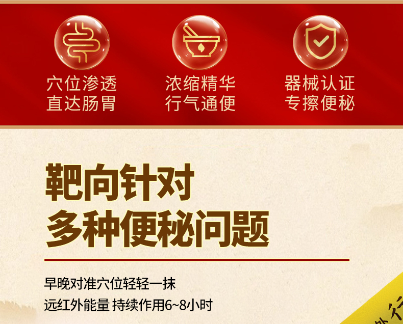 【祖医堂】远红外行气通便凝胶 针对多种便秘问题 早晚一抹 排便顺畅 一身轻松