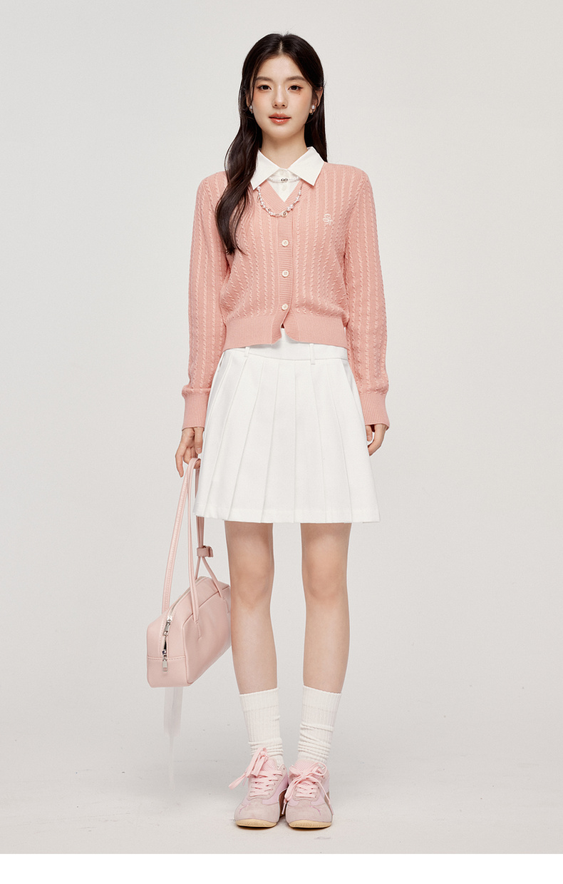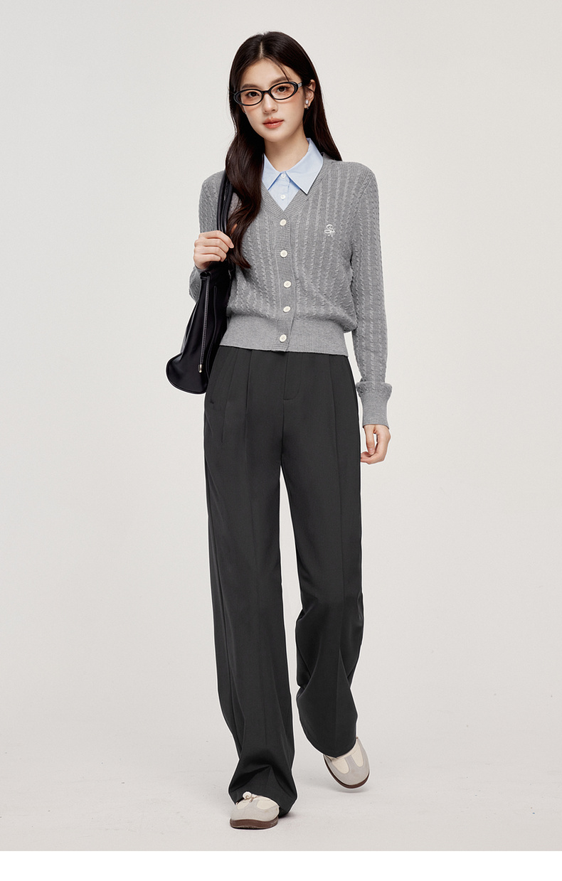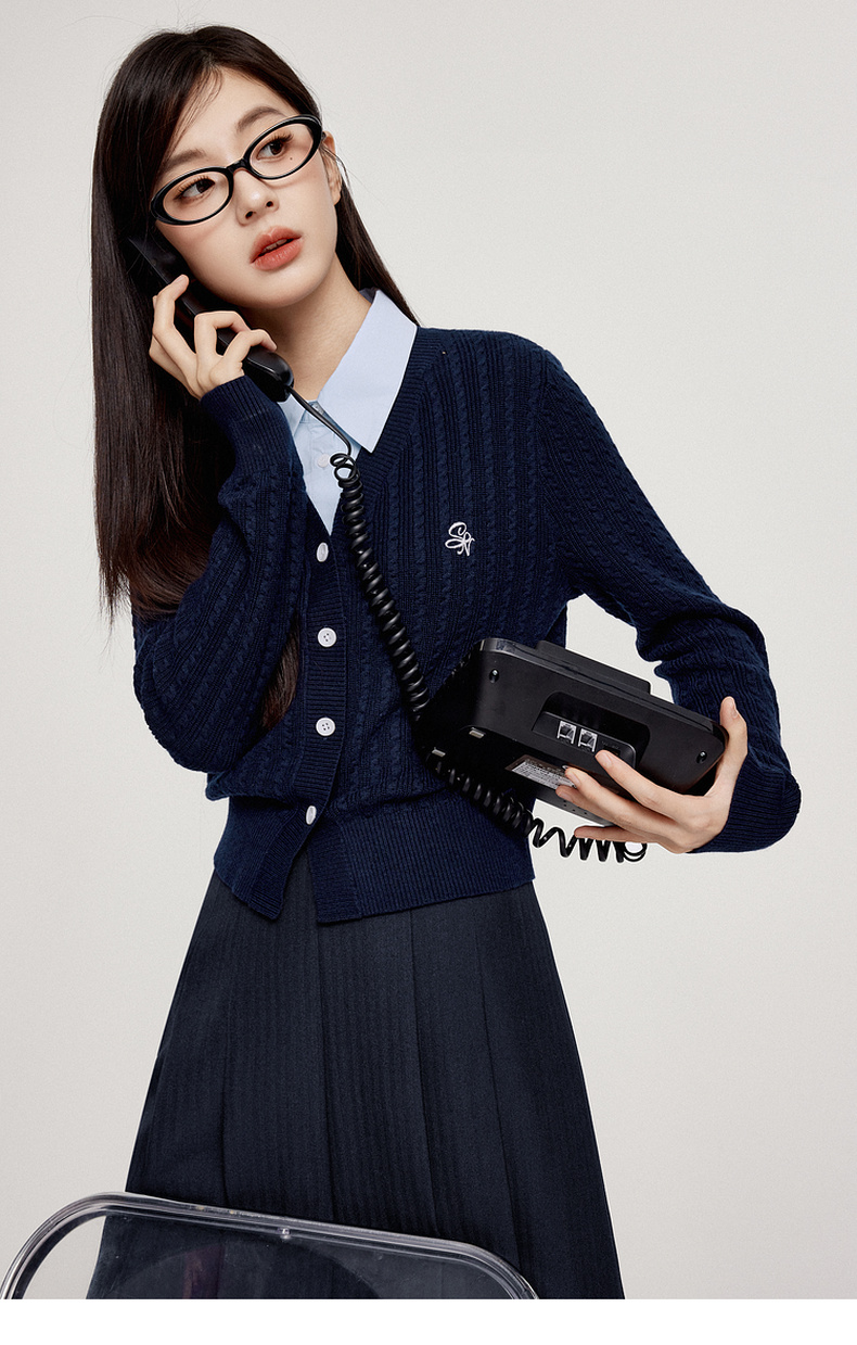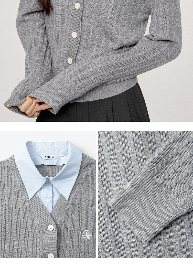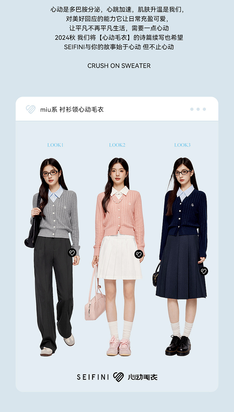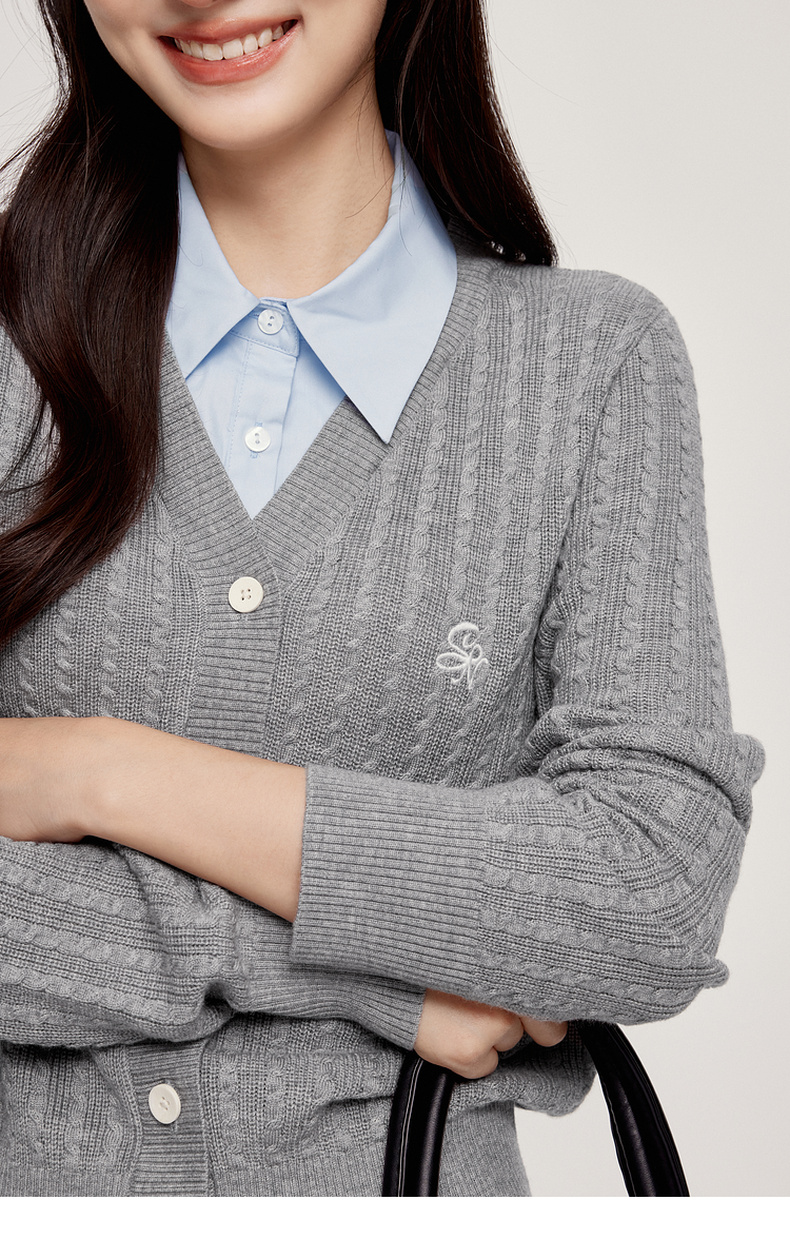 【严选】诗凡黎可脱卸衬衫领绞花针织开衫2024秋新款miu系刺绣假两件上衣7F8330081